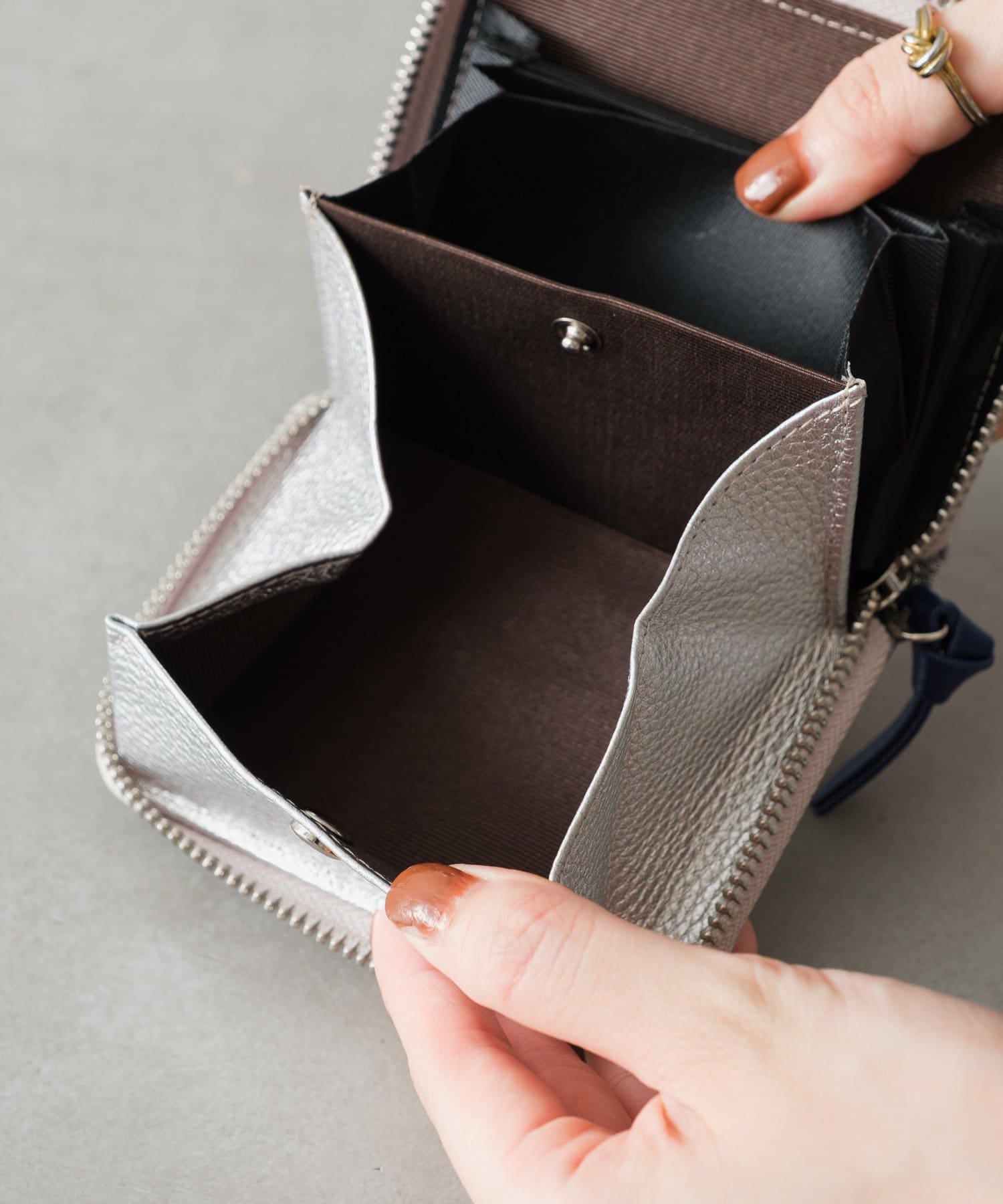 「お札を折りたくない!」というお客様の声から生まれた手のひらサイズのお財布。「使いやすさ」を1番に考え抜いた、随所にこだわりの詰まったミニ財布です。