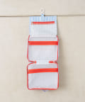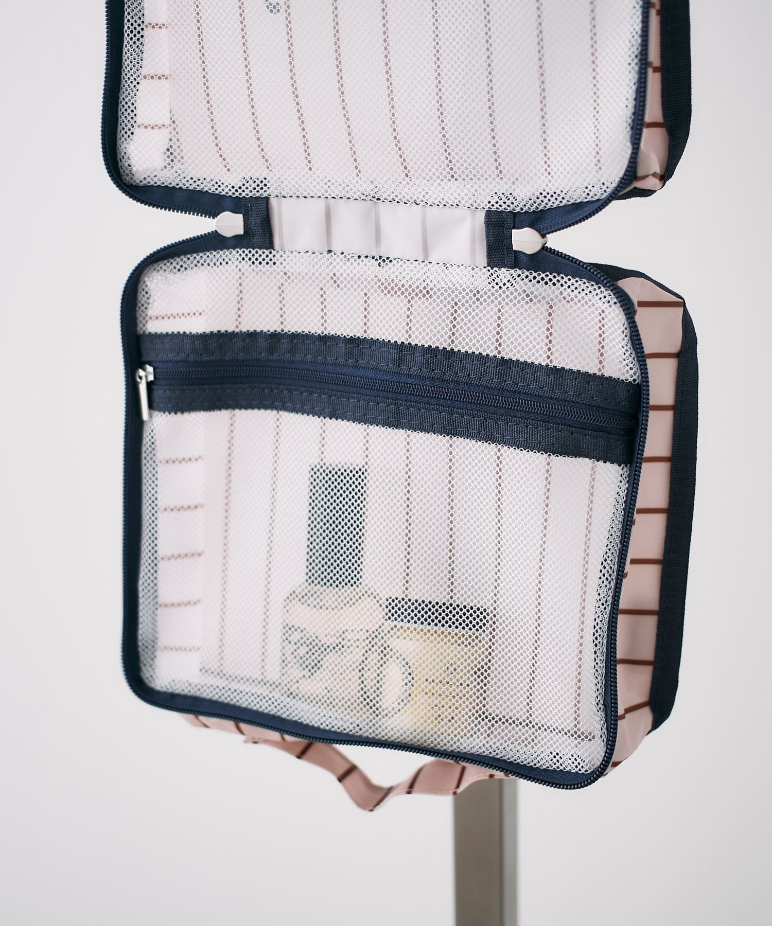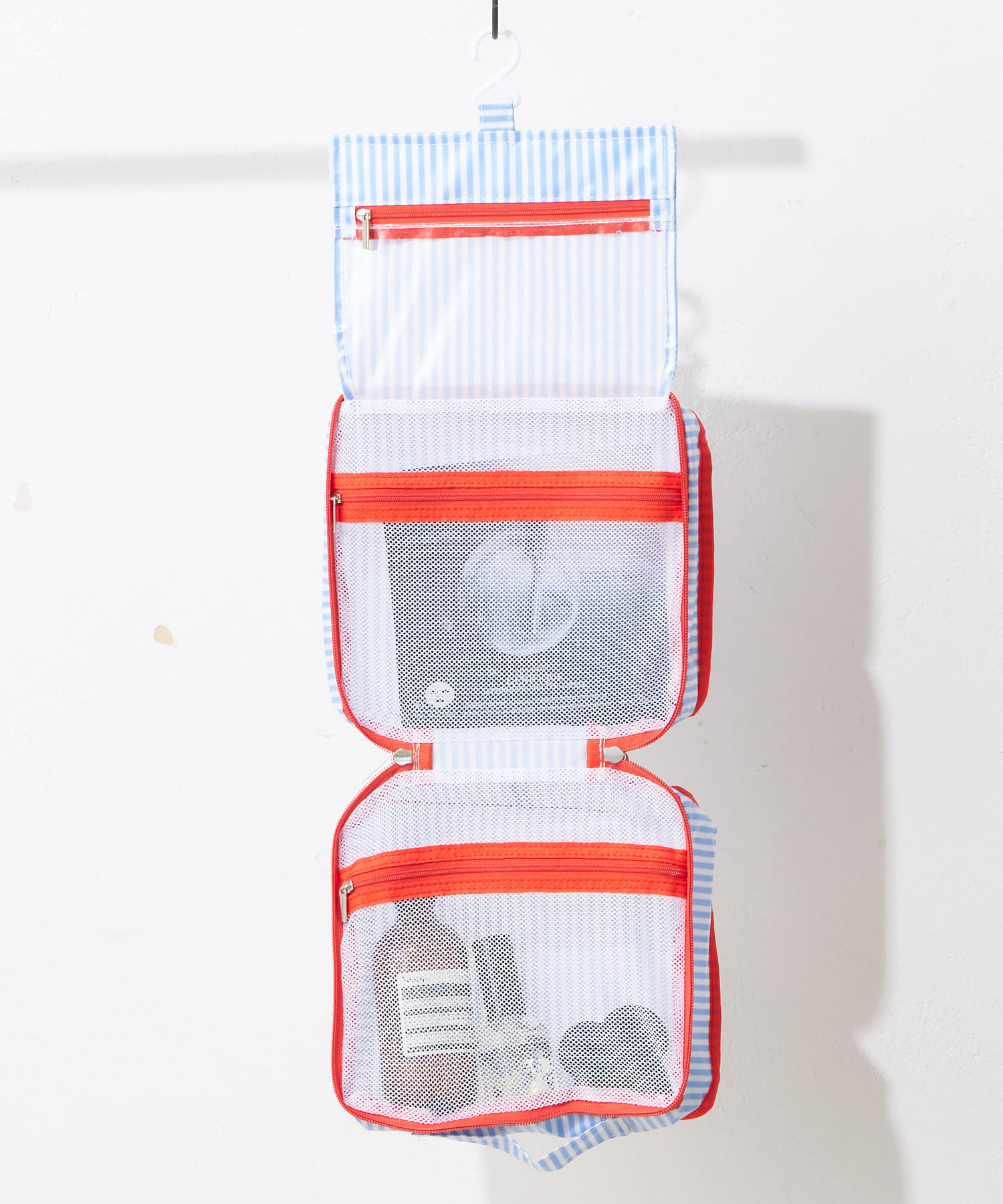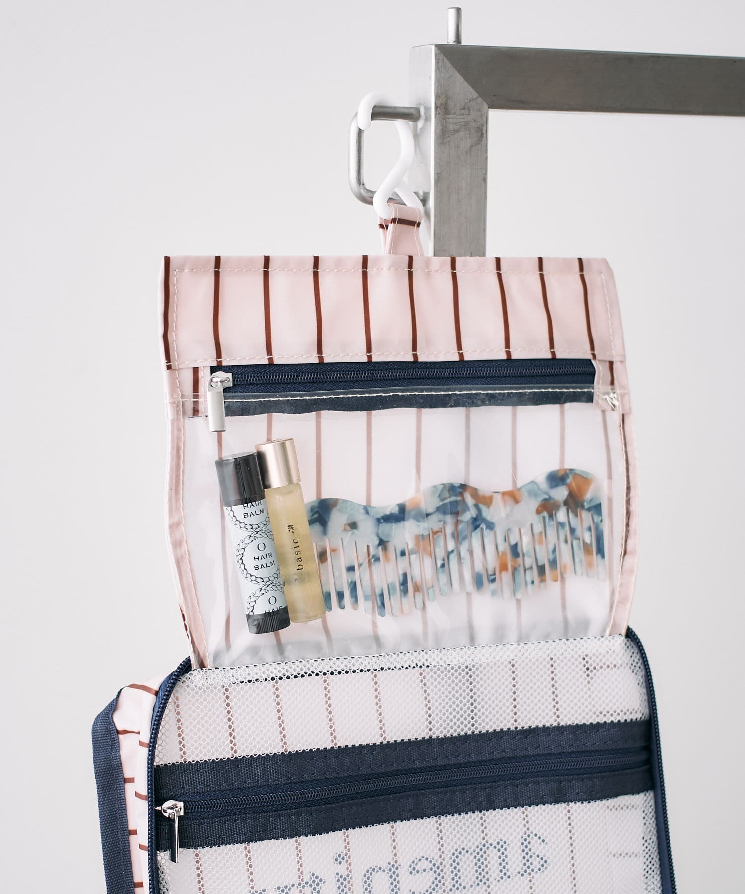 機能性にもこだわりました。ケースを広げると、フックがついているので、スキンケアグッズを入れたままバスルームや洗面所に吊るして使えます。