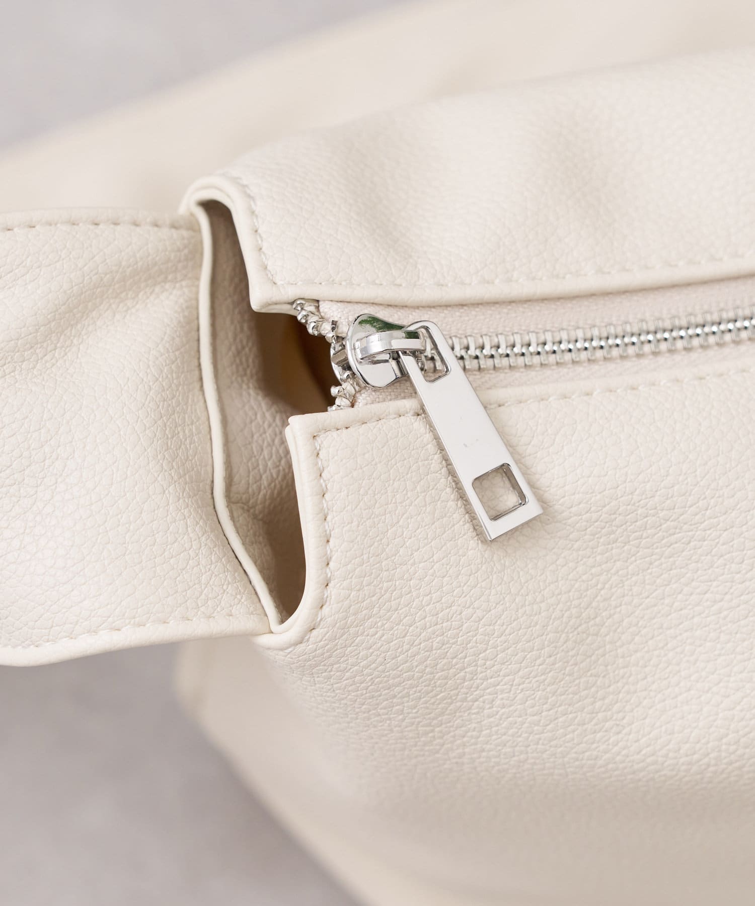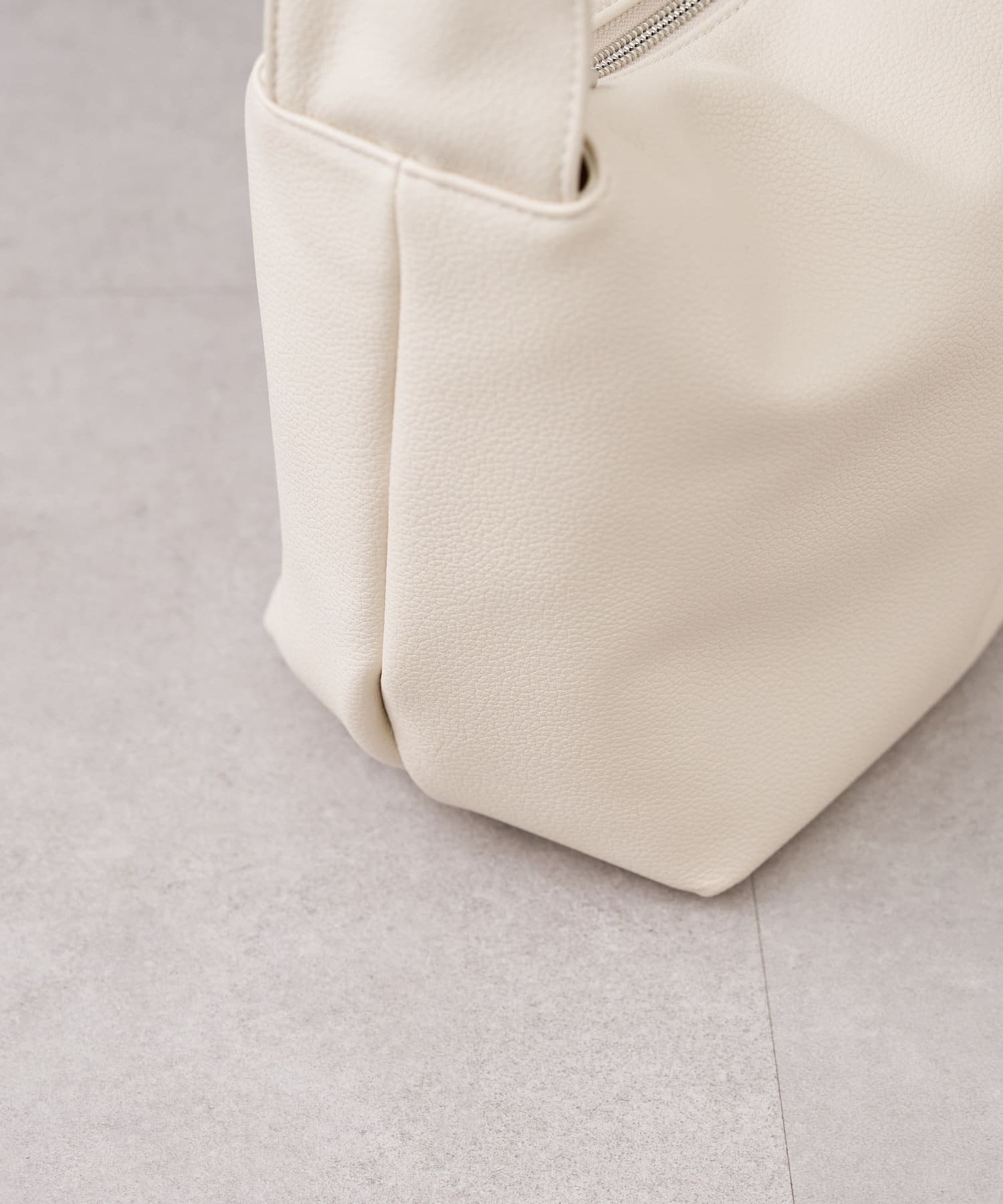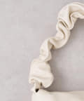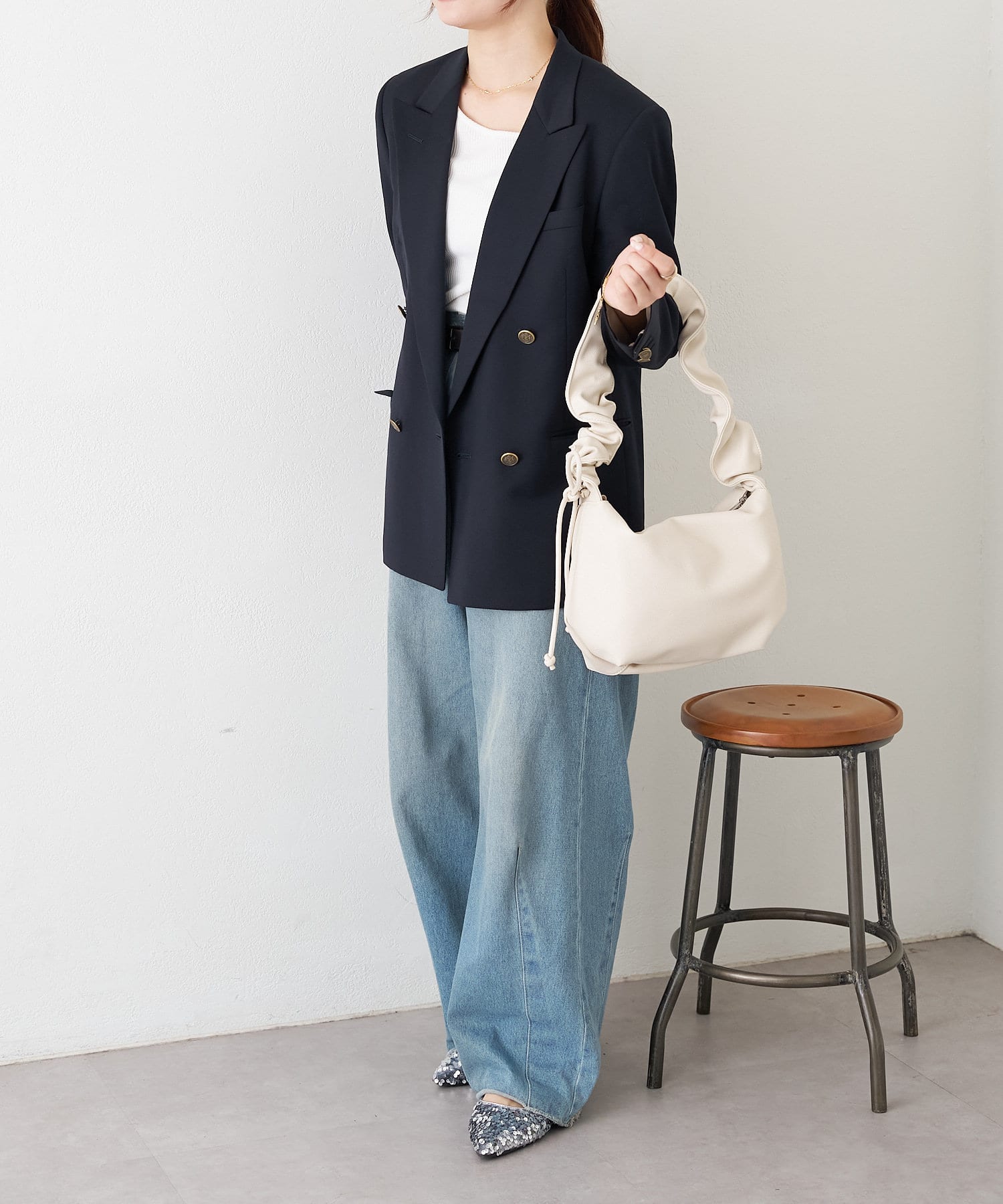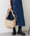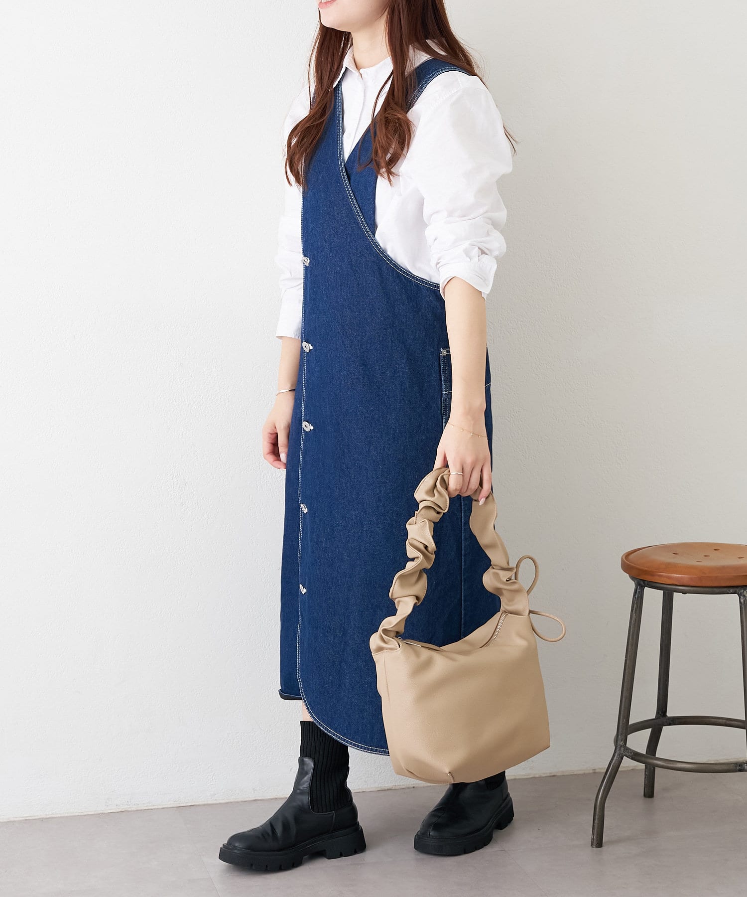 自分の好みの長さ・くしゅっと感でスタイリングを楽しめる、シャーリングミニバッグ。ハンドルを短くすれば、ハンドバッグや肩掛けのショルダーとして、ハンドルを伸ばすとボディバッグのように斜め掛けにすることも可能。コンパクトな見た目とは裏腹に、500mlのペットボトルやハンカチ、長財布など普段の荷物がしっかり入るサイズ感。マチがあるので、荷物の取り出しも楽々。シュリンク素材のフェイクレザーを使用しており、ソフトで軽量なのもポイント◎カラーはベーシックなブラック、アイボリー、ベージュに加え、冬に持ちたくなるライトブルーもプラスしました。