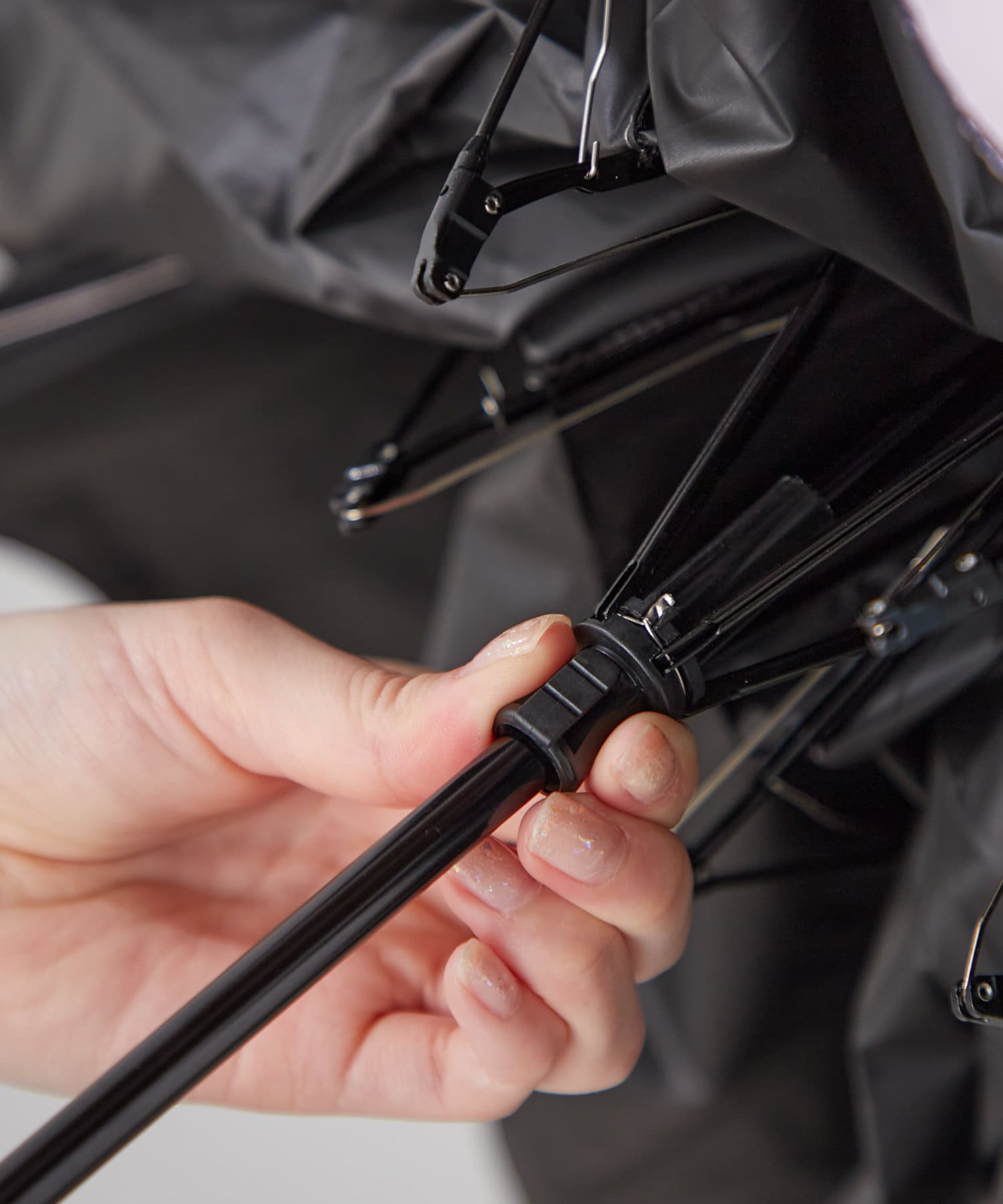 遮光、UVカット率100%の生地を使用し撥水加工付きなので、晴れの日は紫外線、熱中症対策に◎バッグの中に入れておけば急な雨にも対応できます。