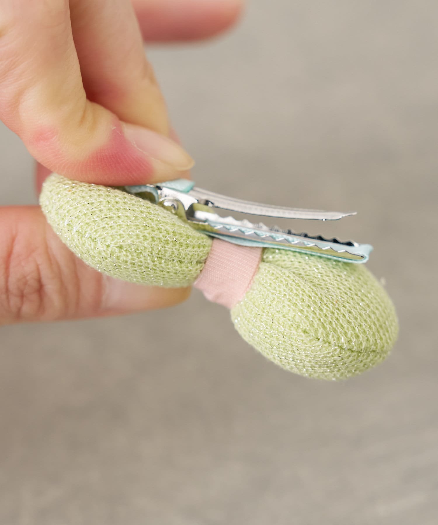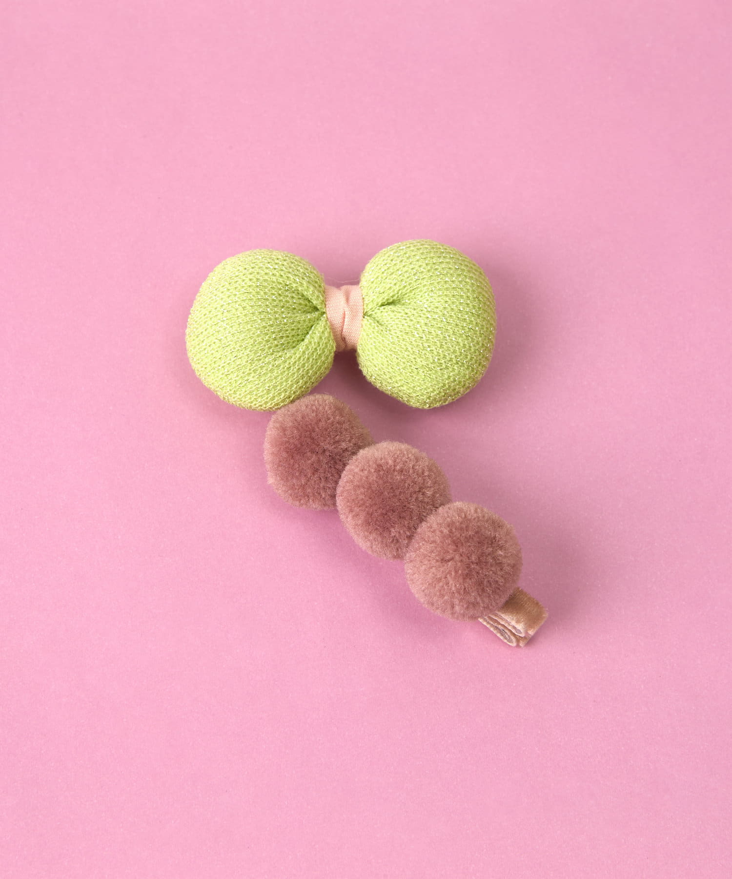 立体的なリボンと、ぽこぽこのヘアピン2本セット。