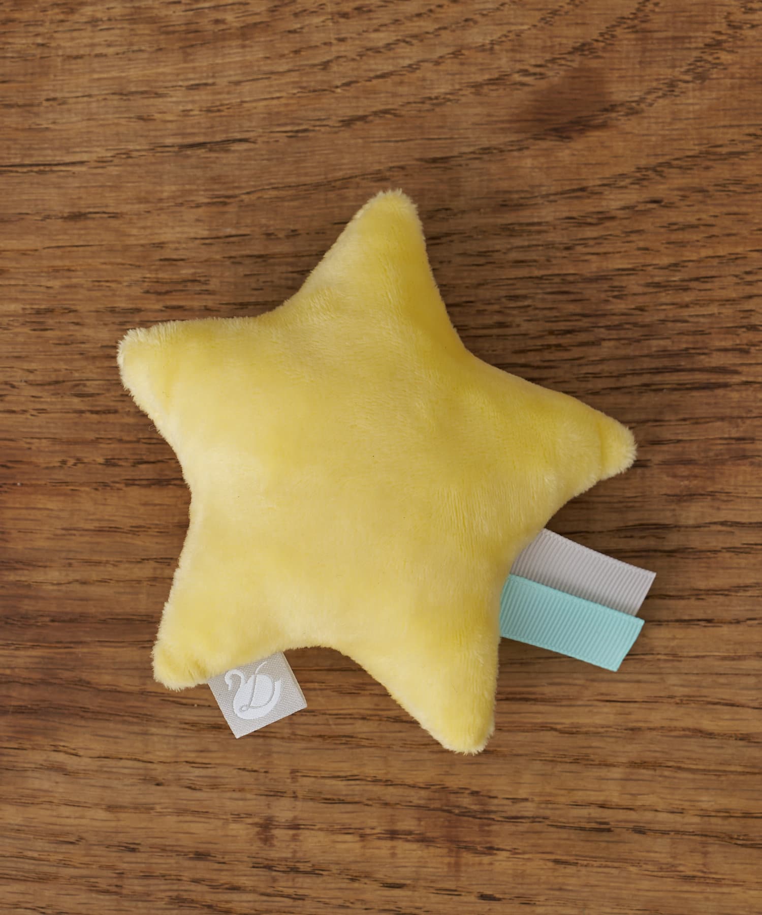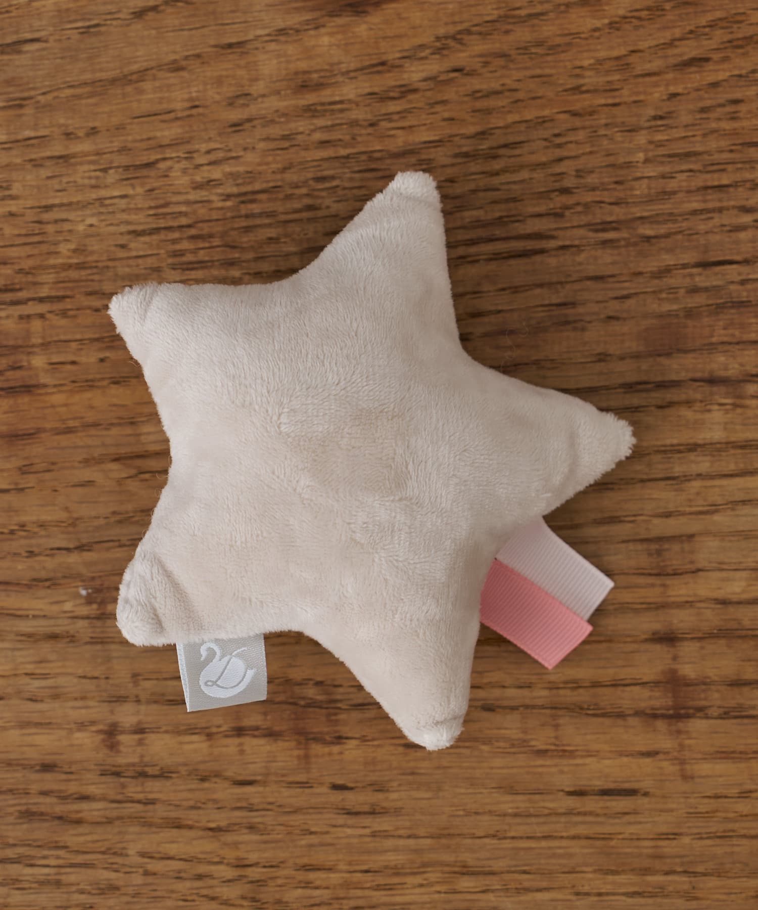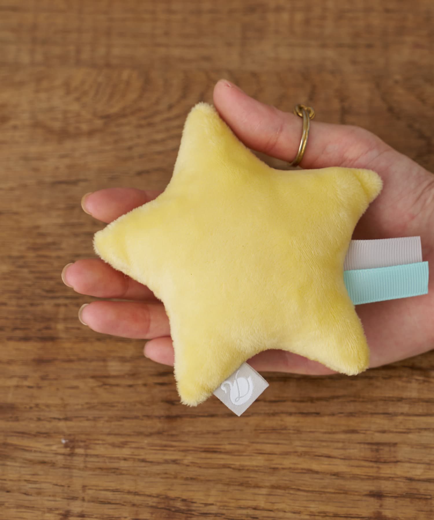 ハンドル付きでねんね期のあかちゃんも持ちやすい、肌ざわりのやさしい星型のラトル。