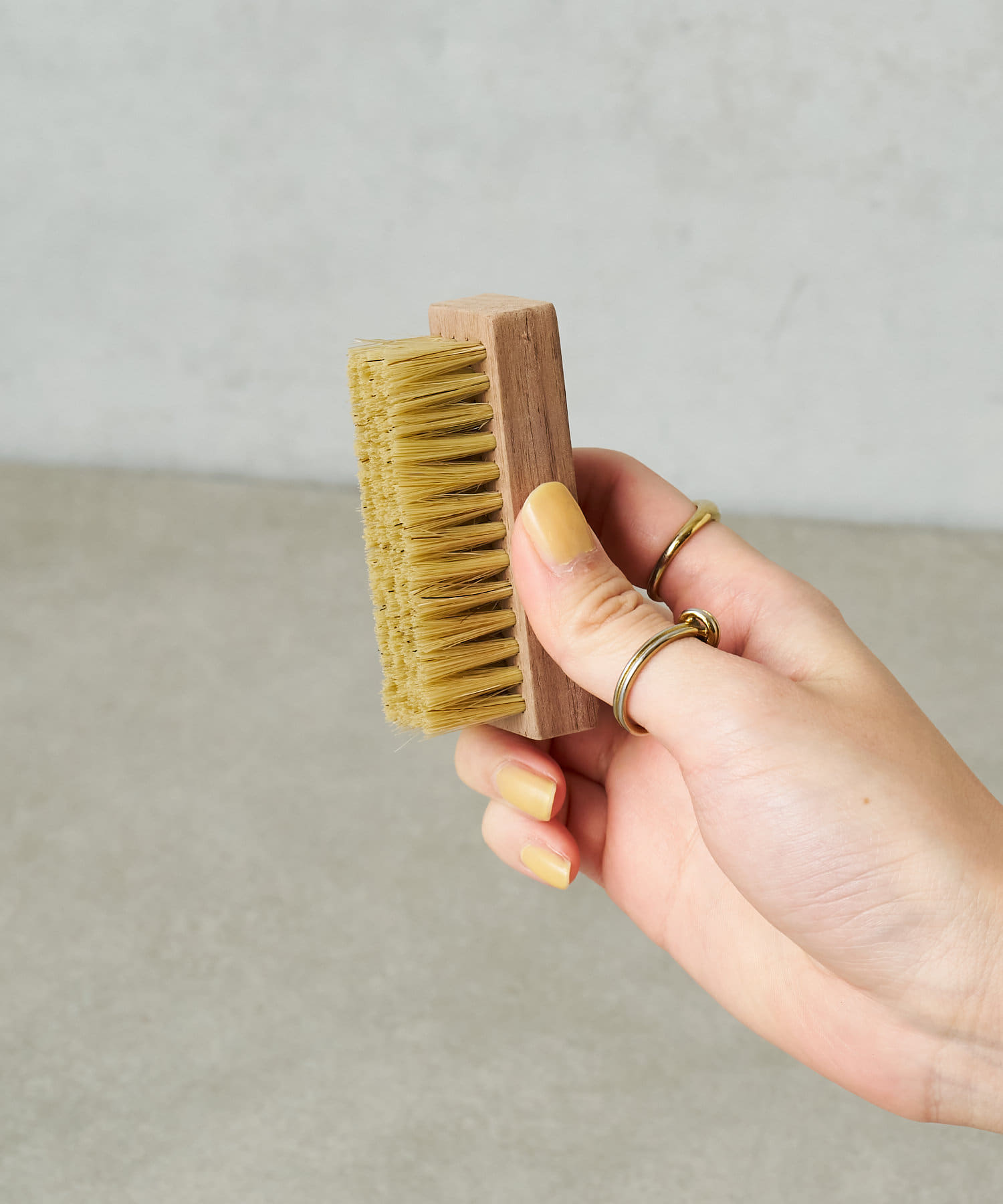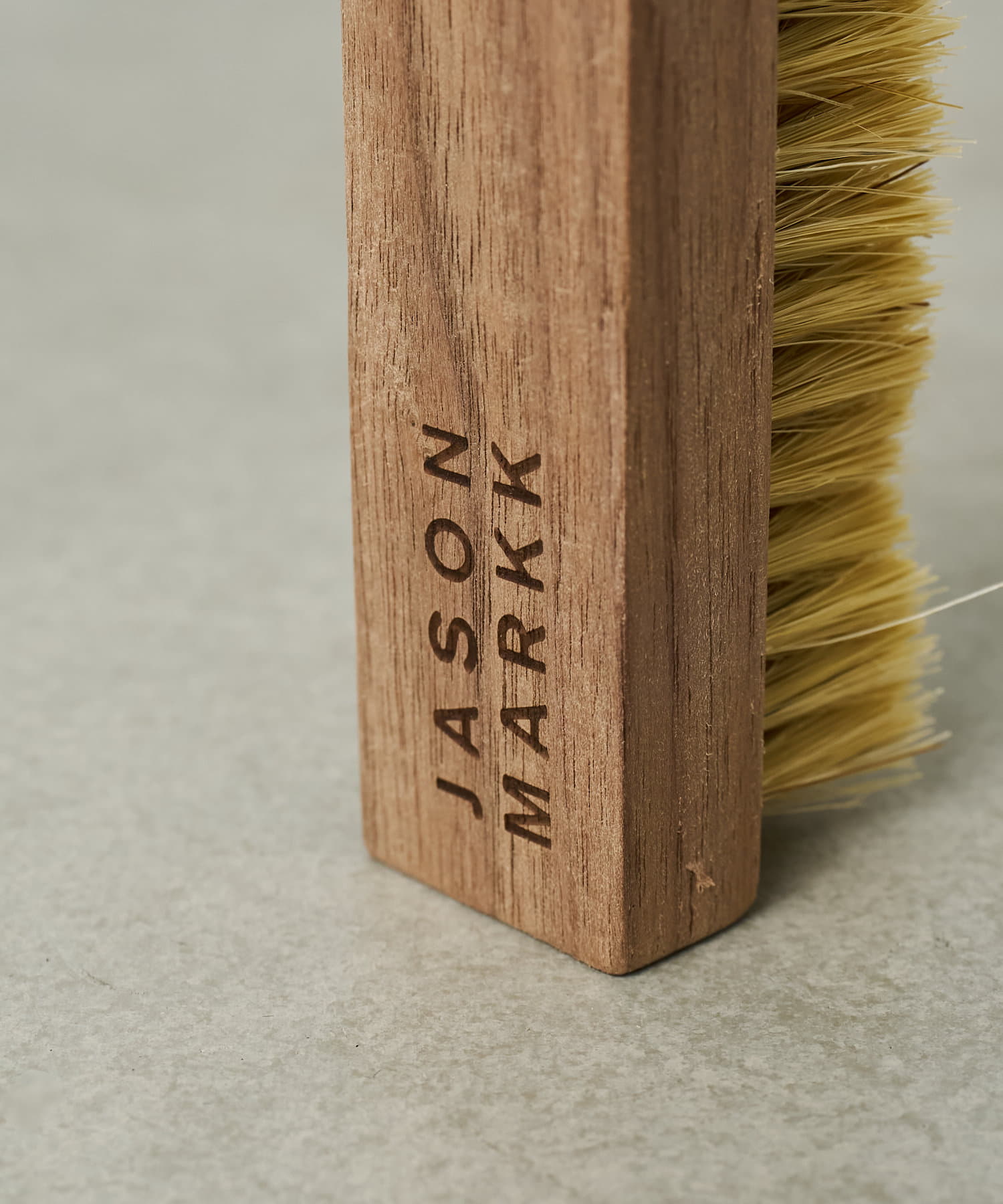 手作りのウォールナット製の持ち手と素材を痛めずやさしくクリーニングできる柔らかい天然豚毛を採用。スウェード、メッシュ、コットン、キャンバス等のデリケート素材のクリーニングに最適です。