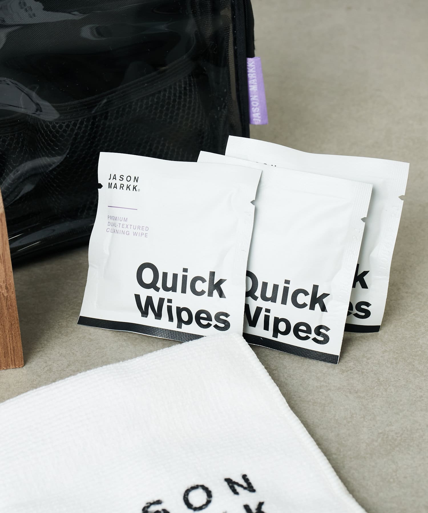 2oz プレミアムディープクリーニングソリューション、ミニプレミアムブラシ、ミニマイクロファイバータオルとクイックワイプが3枚入りのキット。耐久性のあるリップストップナイロンのトラベルケースは、伸縮性のあるメッシュポケット付きです。旅行先や外出先などでに持っていきやすい最適なサイズ感。さらに機内への持ち込みやすさを考慮し、外からでも中身が確認できるクリアウィンドウ採用しました。「JASONMARKK」ブランドを初めて使う方や、スニーカー好きの方へのギフトにもおすすめです。