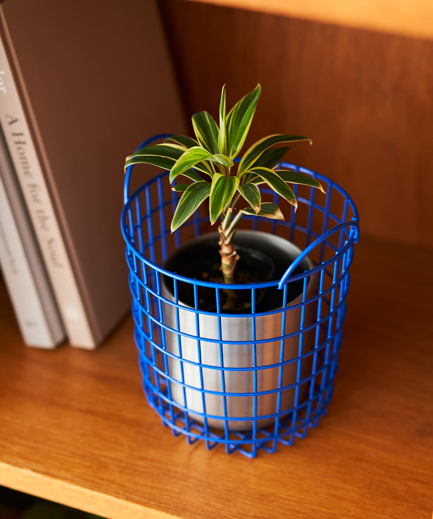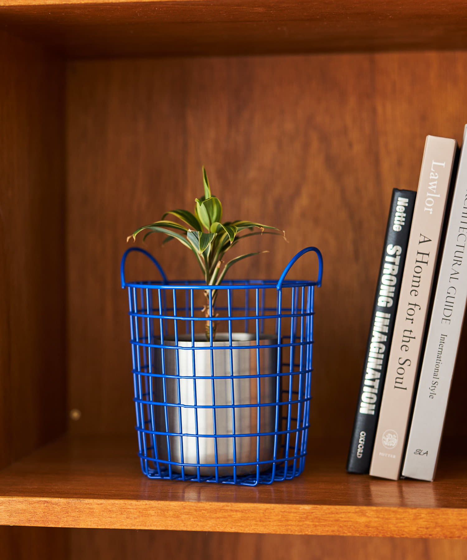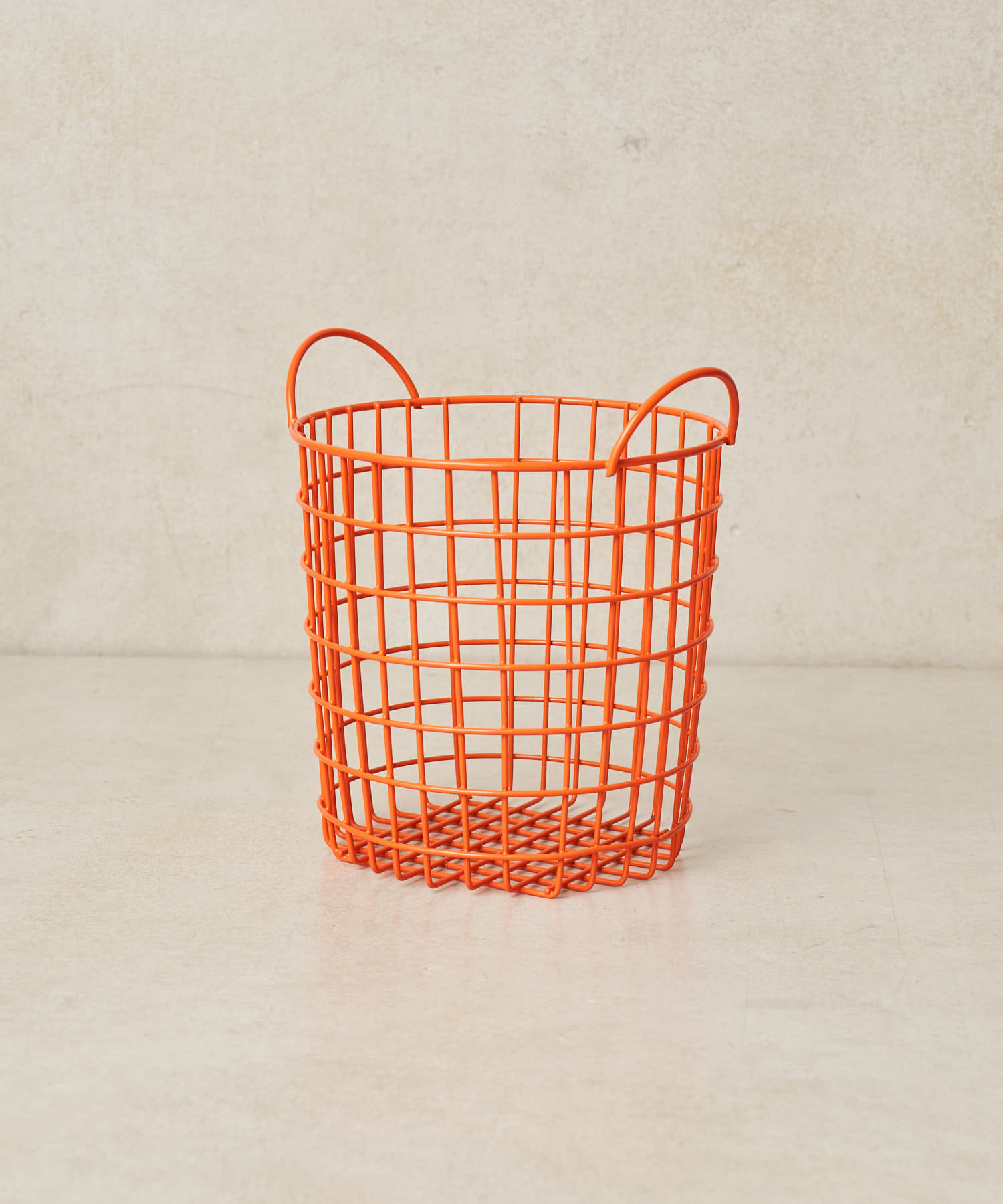 デスクのガジェットケースとして、ハンカチや靴下入れとしてもばっちりな、マルチに使えるワイヤーバスケット。使用しないときは同じサイズ同士でスタッキングして保管できるので場所をとりません。