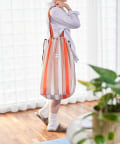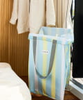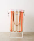 土台となるワイヤー部分とバッグがセットなったランドリーバスケット。組み立ても簡単な仕様になっており、バッグ部分は布団や毛布、洋服類を入れてコインランドリーにも行けるアイテム。汚れがつきにくい素材で、マチも容量もしっかりあるので、大量の食品を買う時にも大活躍。土台部分は折り畳み式なので、使わないときは場所をとらないのもポイント。生活感が出がちなランドリーまわりに一気に洒落感をプラスできるアイテムです。
