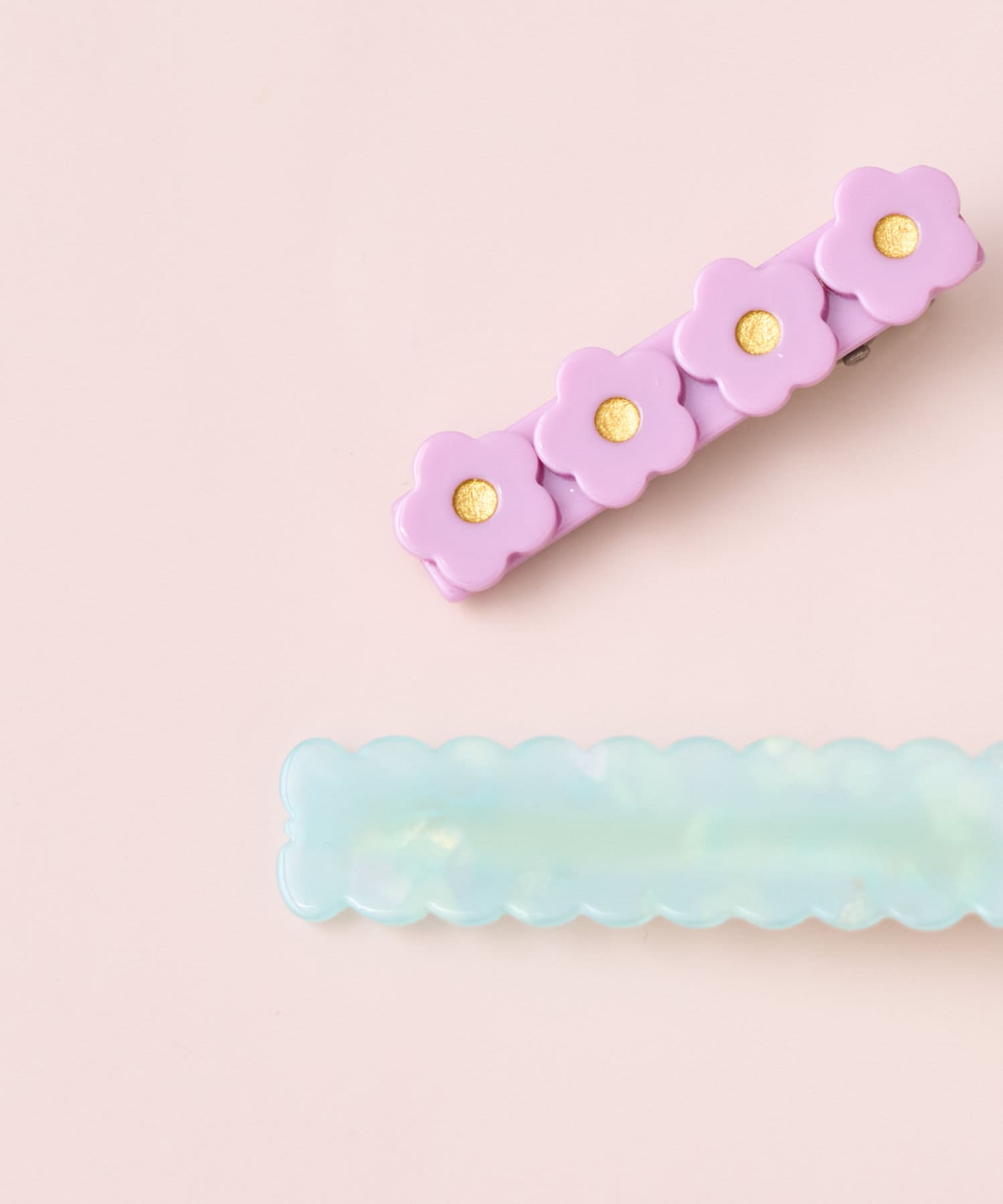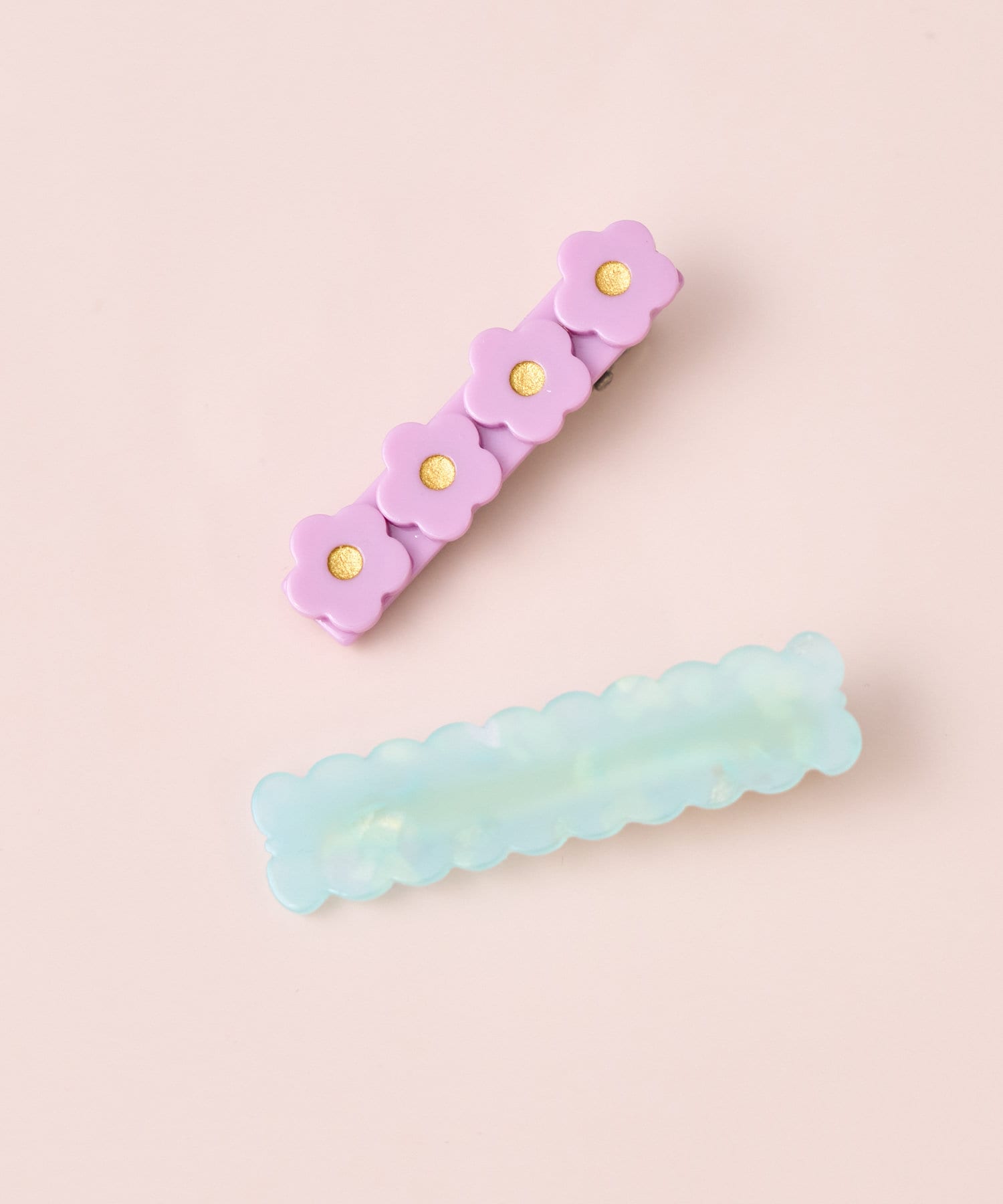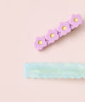フラワーともくもくのデザインがかわいいヘアピン2本セット。