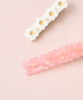 春らしいカラーの2色展開で、簡単につけられるクリップタイプです。