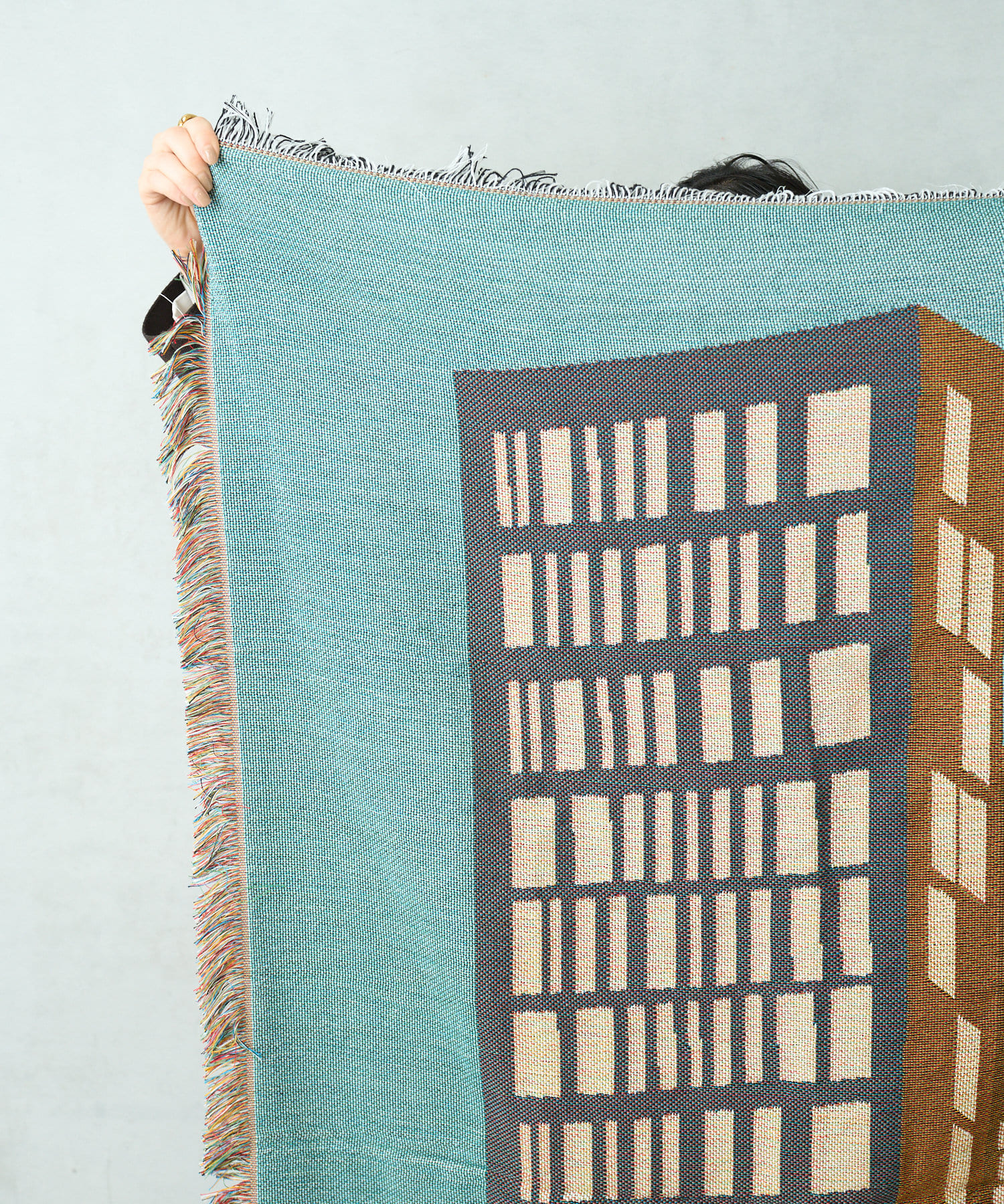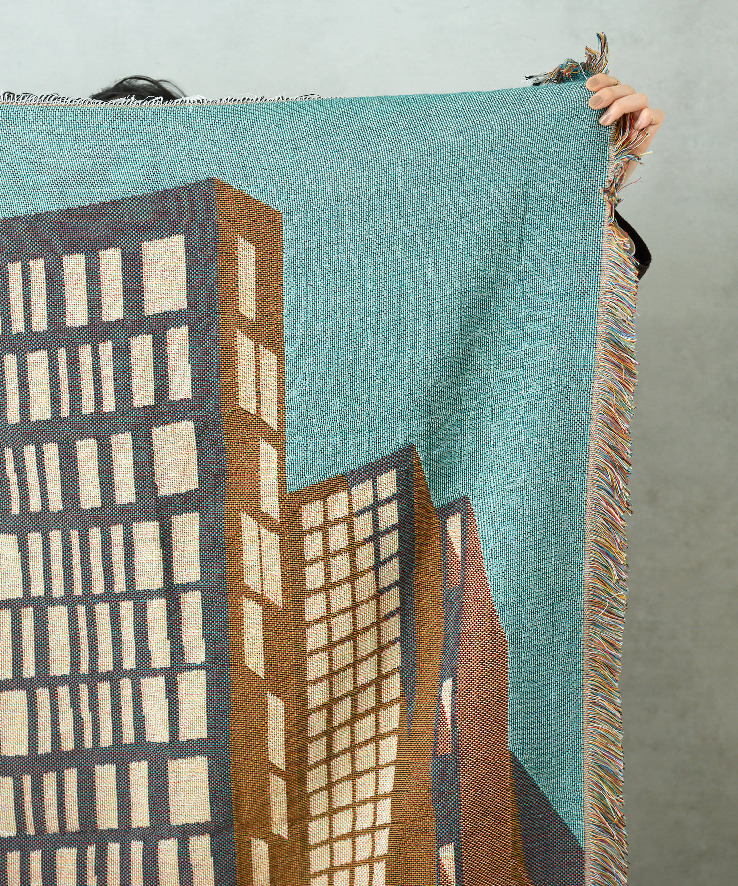 ソファやベッドにさらっとかけたり、ラグとしてや、羽織って使うこともできる万能なスローケット。