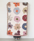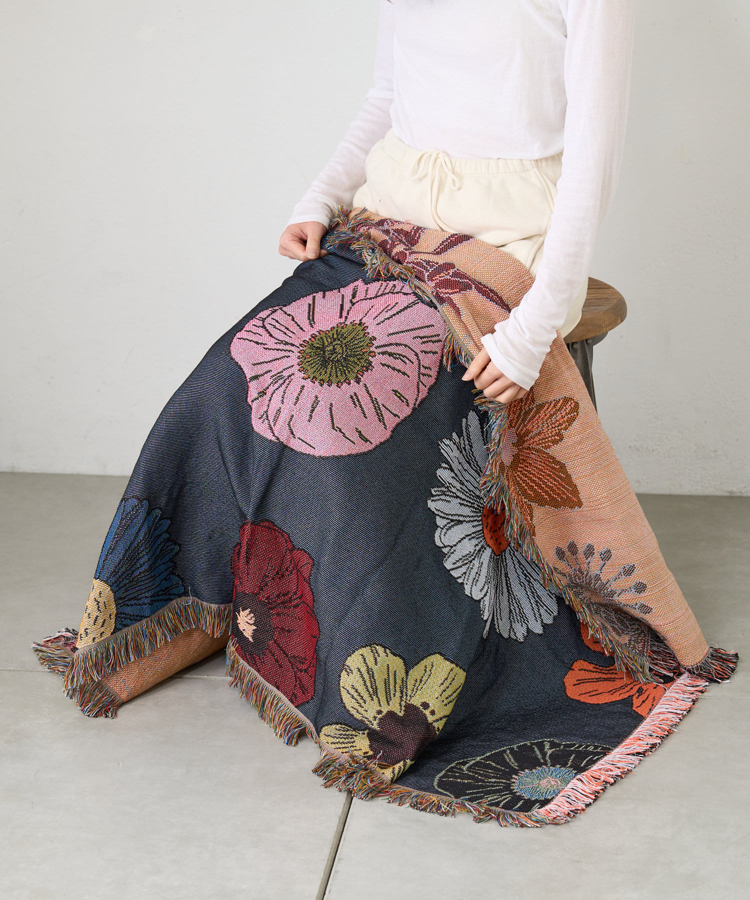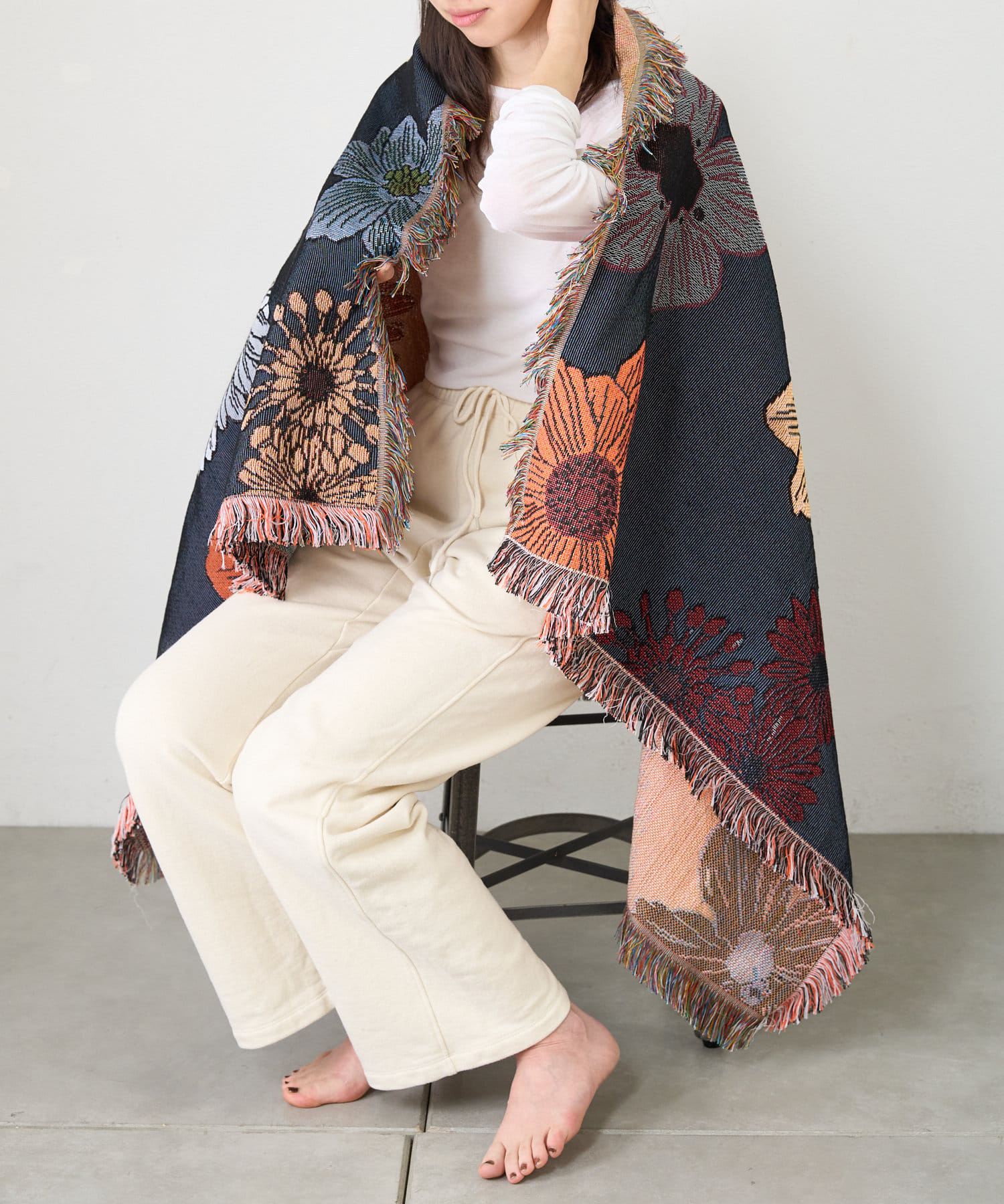 今回も裏表どちらも両A面で使え、お部屋の雰囲気やその日の気分で楽しめます。ソファにかけたり、ベッドに敷いたり、ラグとして使ったりと、様々なシーンで大活躍。長方形なので、羽織るのにもちょうどよい大きさでひざ掛けとしても◎