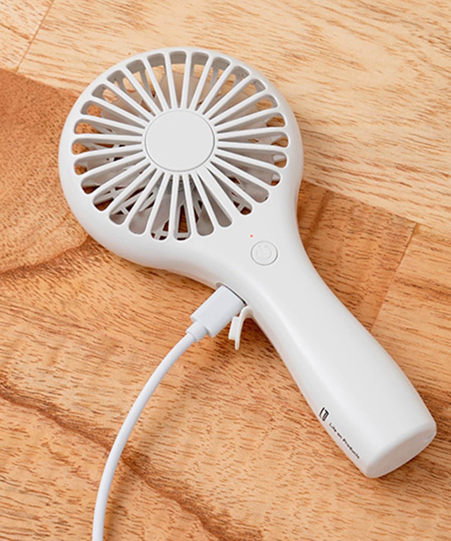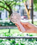 本体の厚さはわずか約2cm、重さは90gと薄くて軽く持ち歩きに便利なハンディファン。