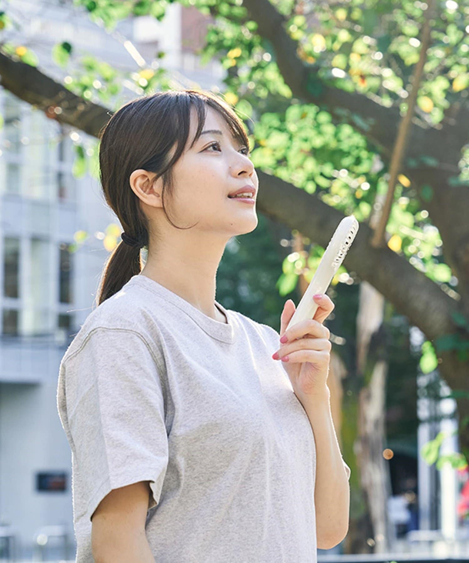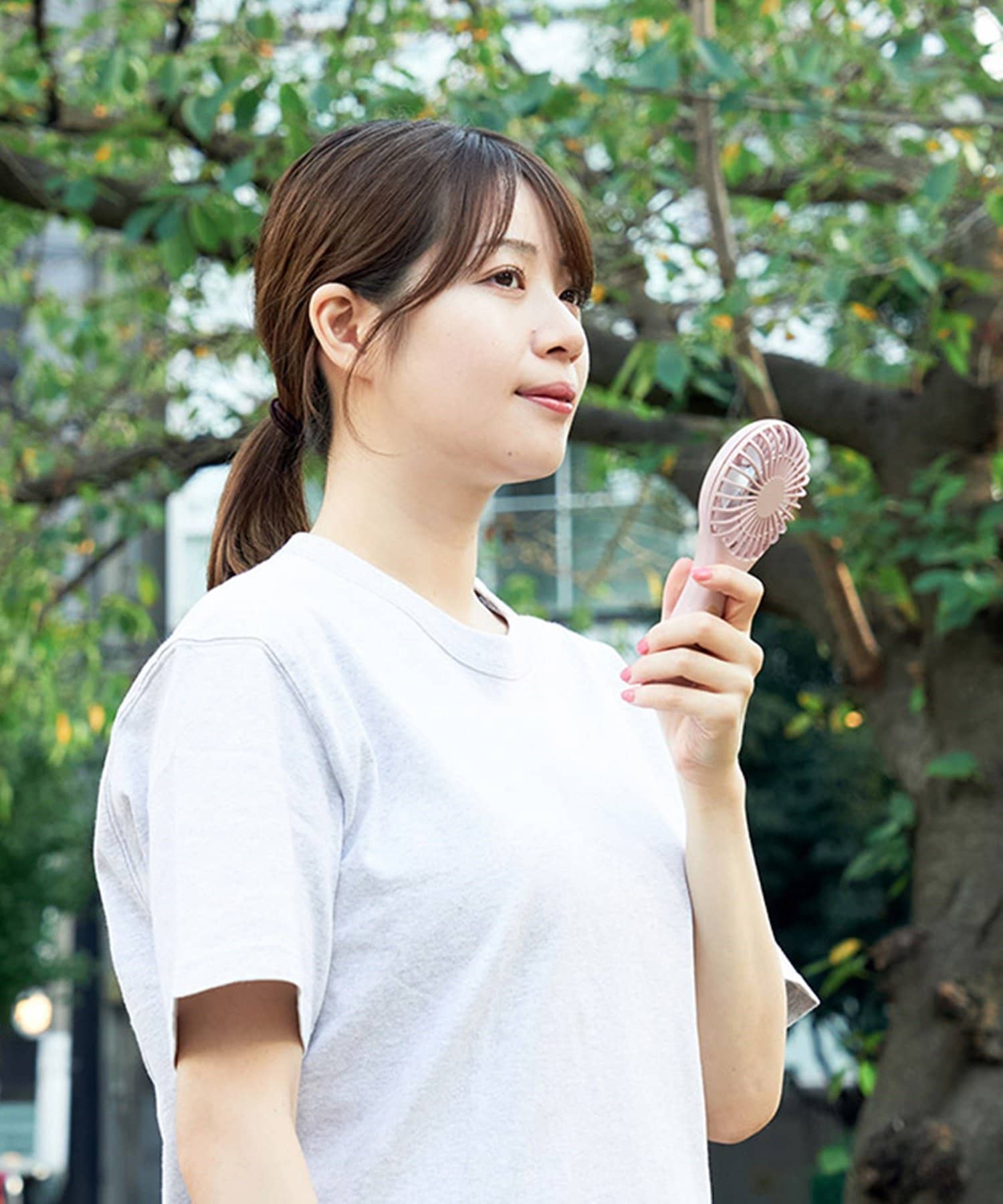 ファン本体の厚みはわずか約2cmの超薄型設計。パンツのポケットにインしてもかさばらず、ミニバッグに入れても邪魔になりません。