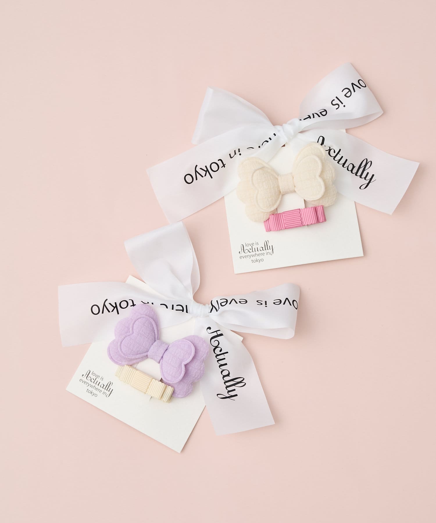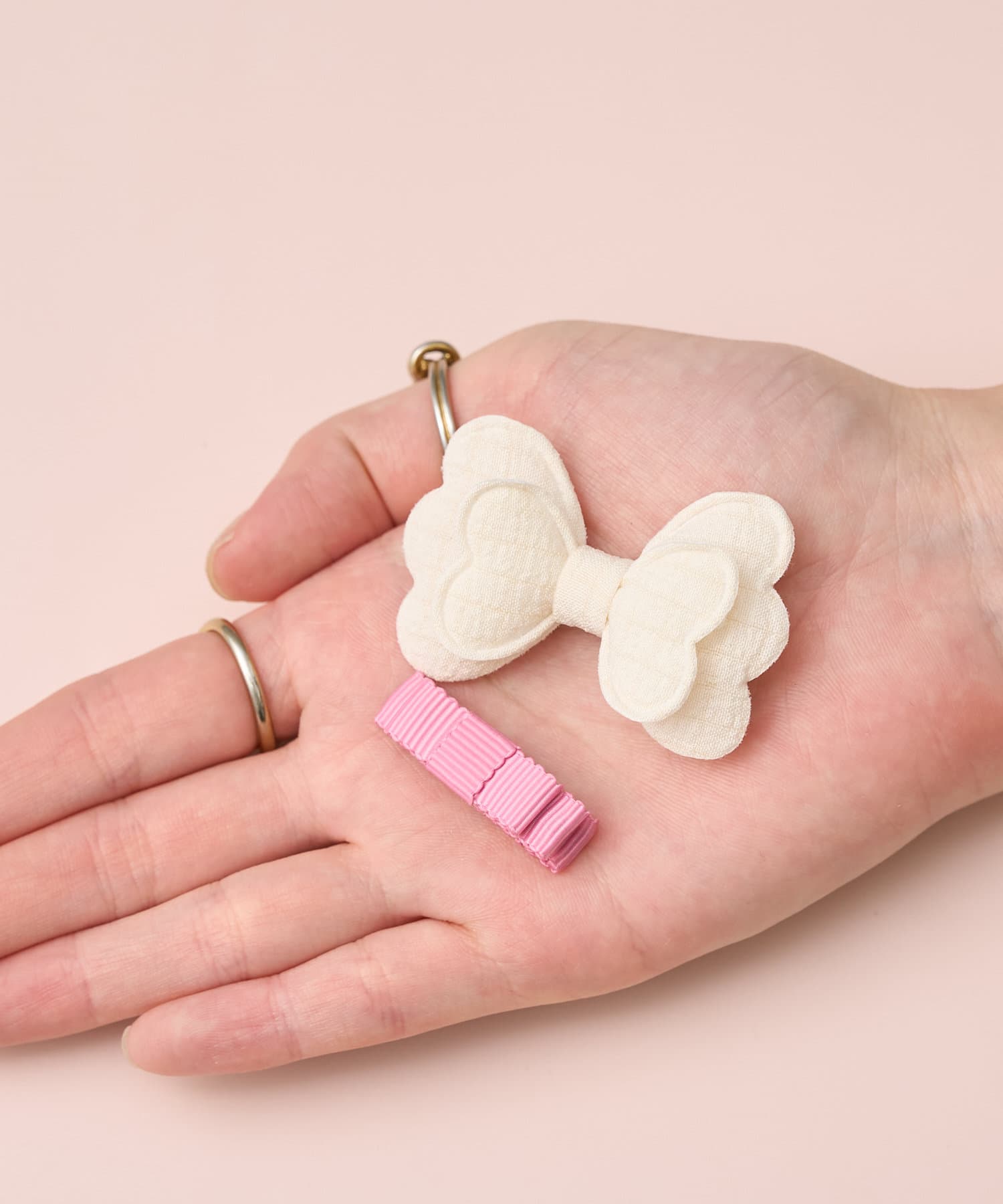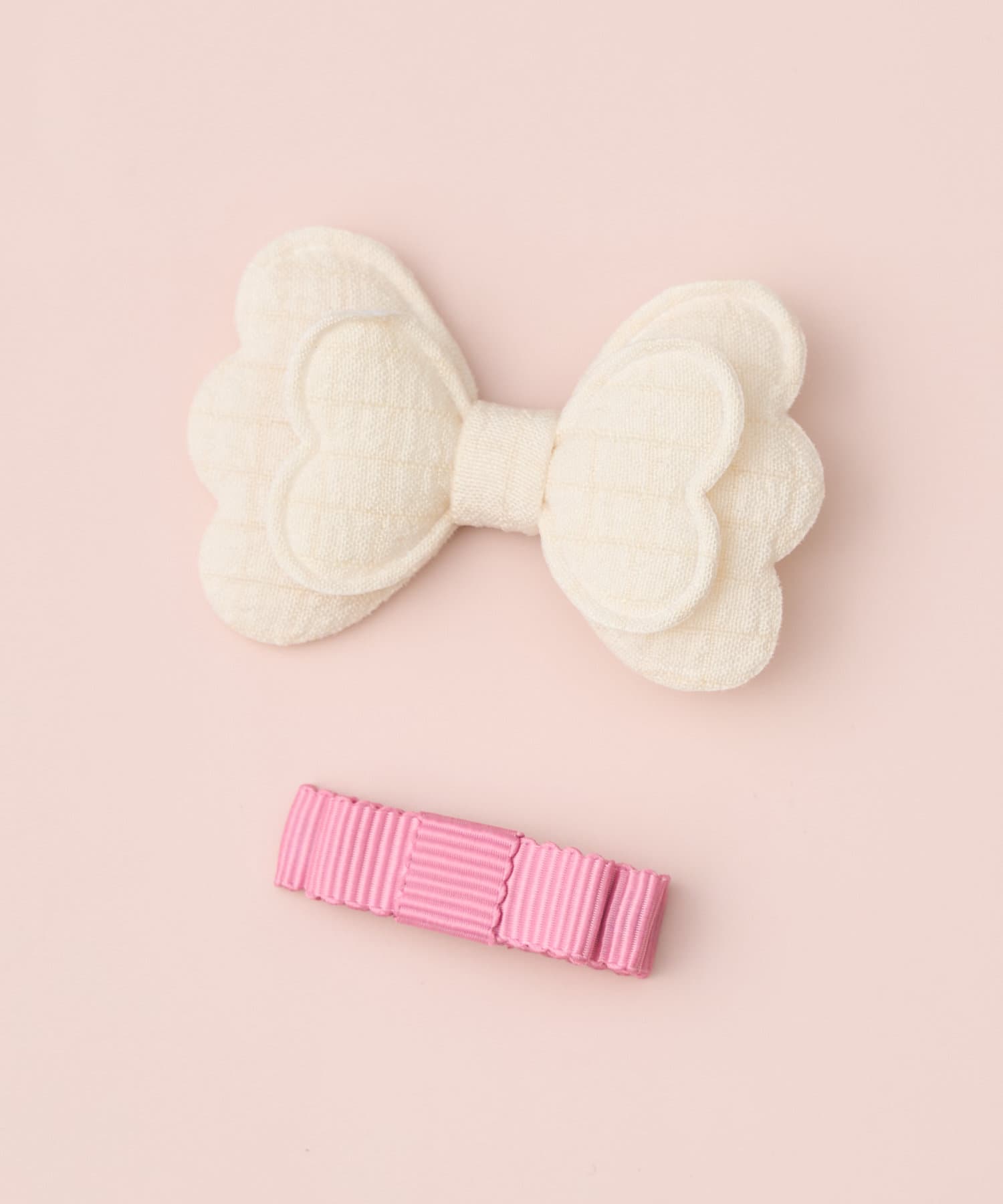 ふんわりとした素材のバタフライリボンが印象的なキッズヘアピン。