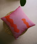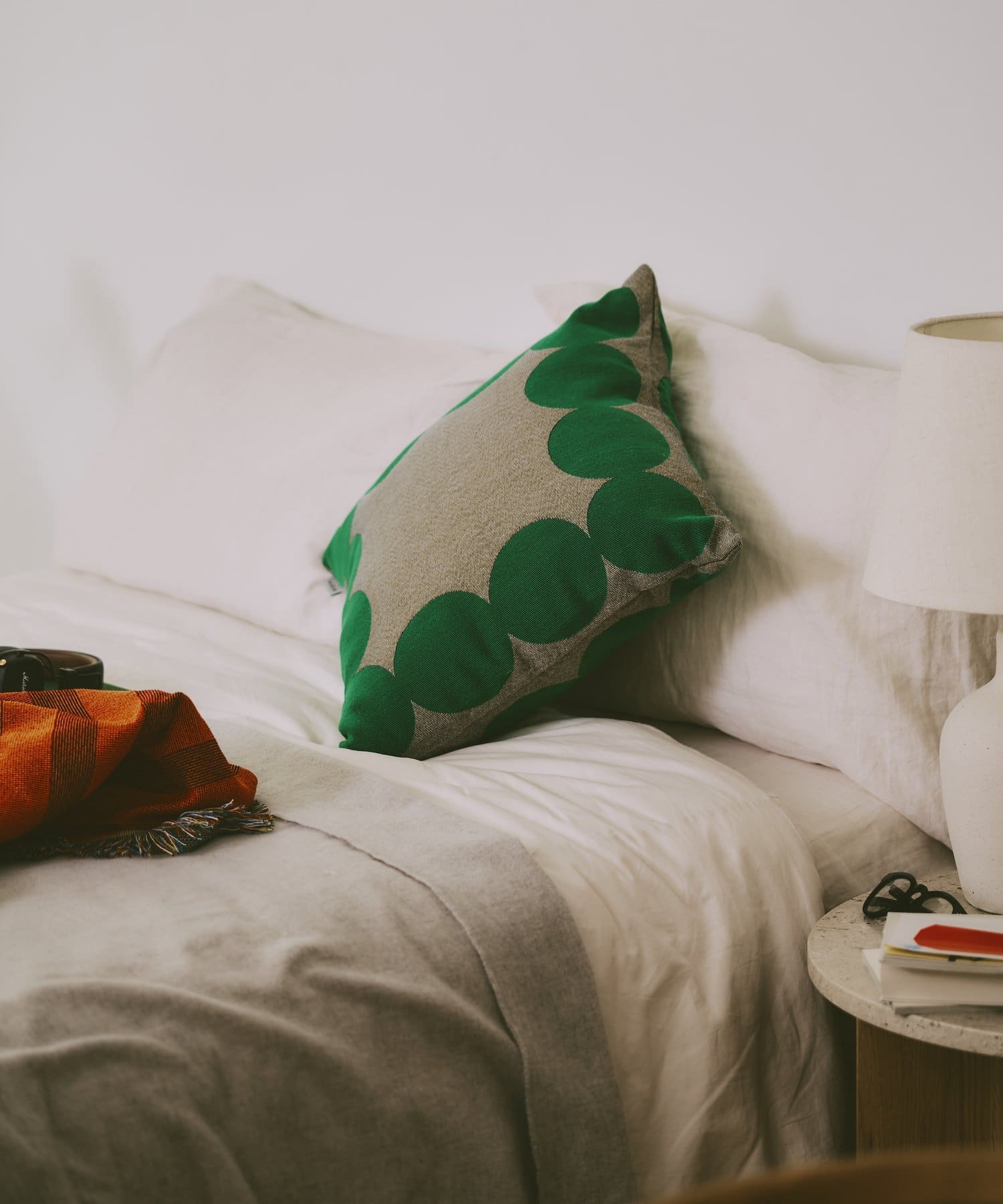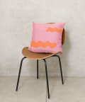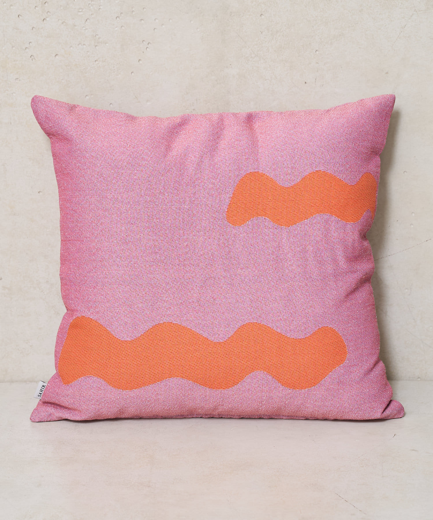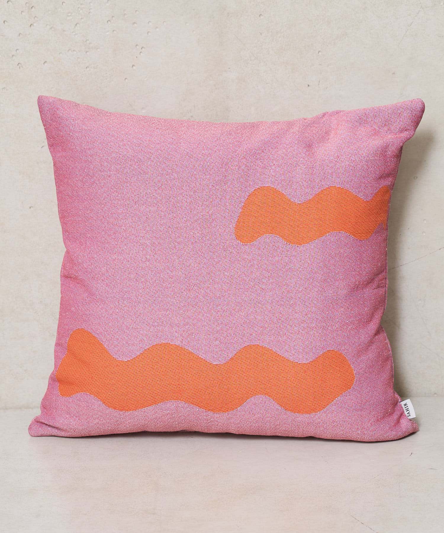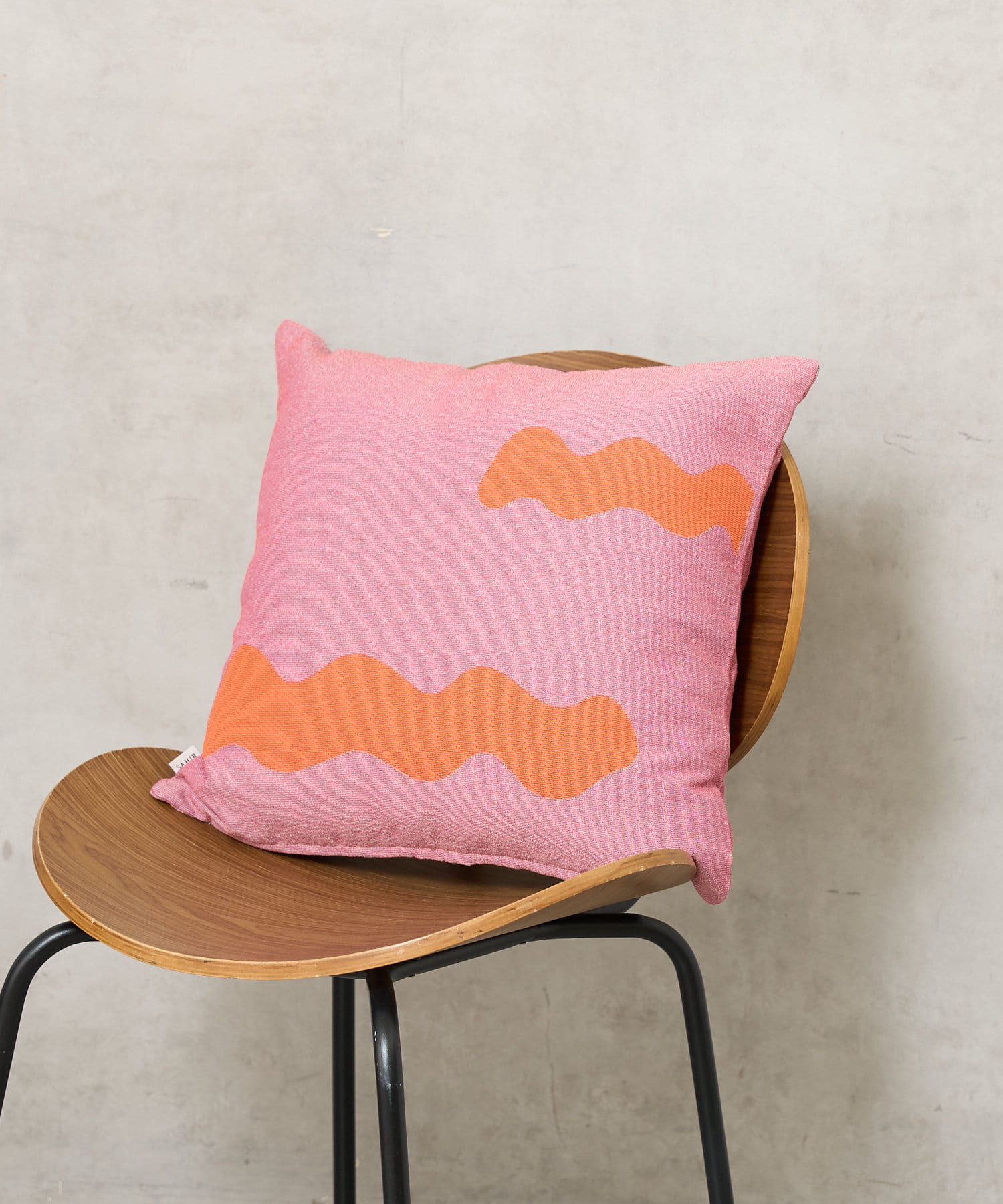 クッションカバーは本体が四角いので、○と△を使ったデザインを入れてみたいというSAHIRディレクターの遊びごころが込められています。