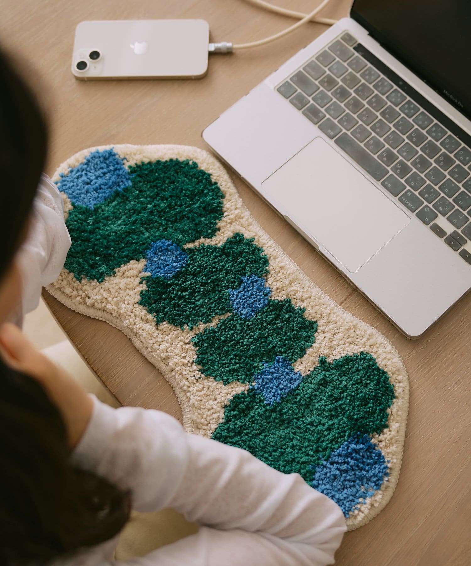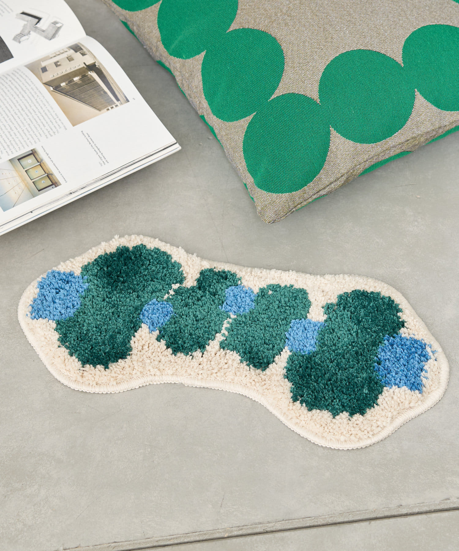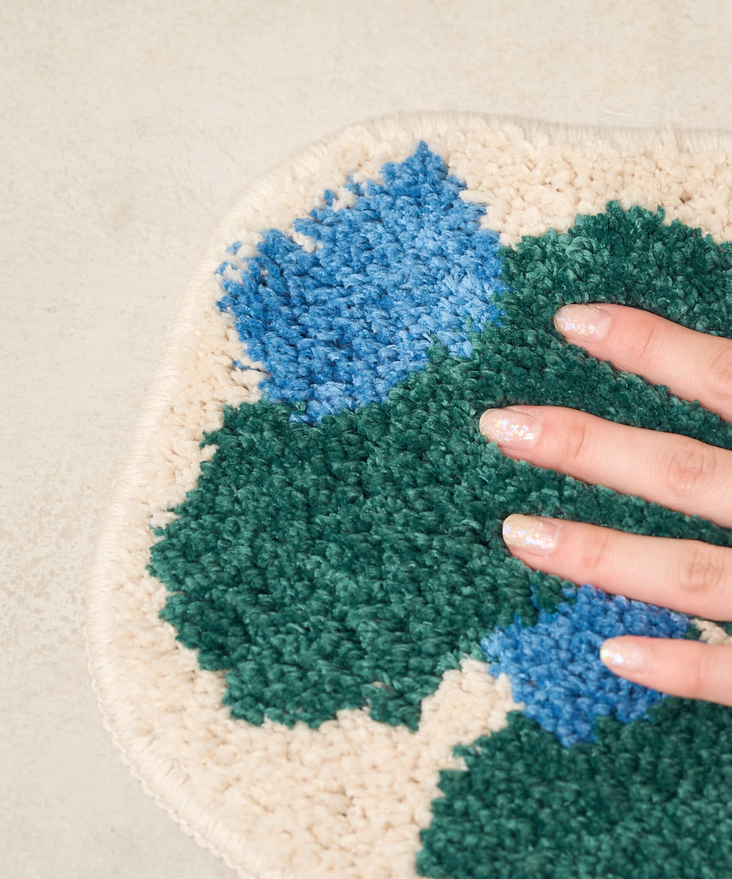 ユーカリのお花をイメージして作られたアクセントマット。