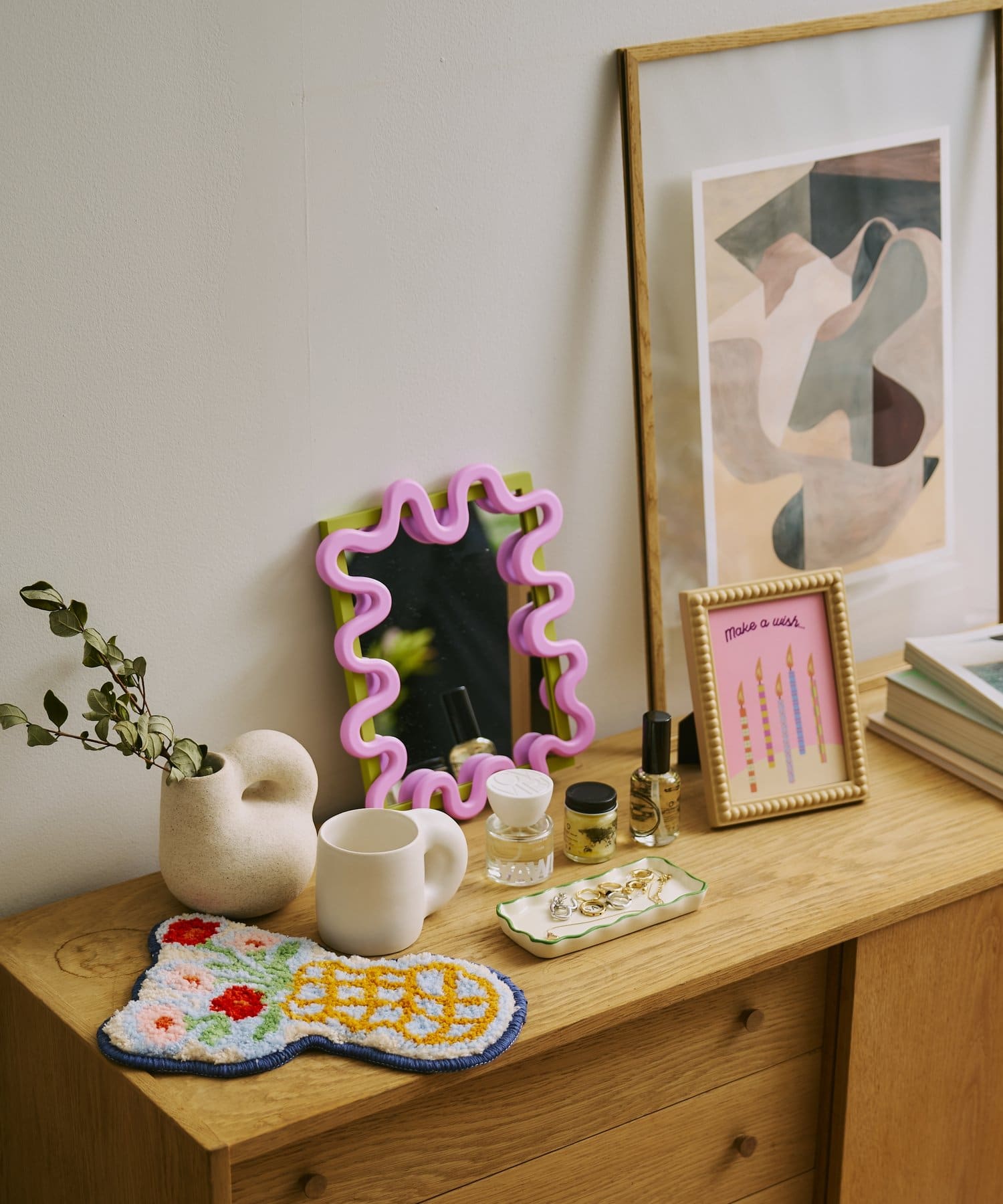 アクセサリーやメガネを置いたり、ハンドクリーム置きにしたりと様々な場面で活躍します。