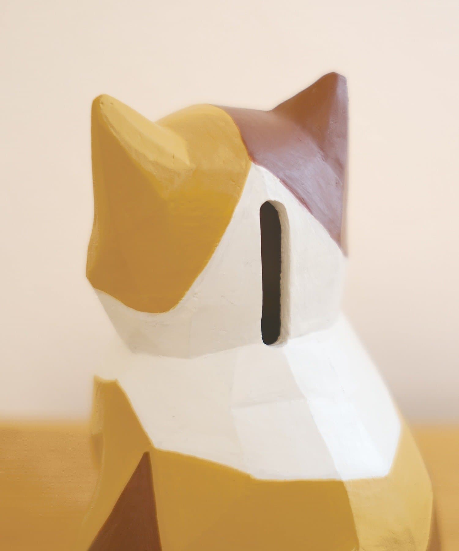 ポリゴン風のフォルムのネコとイエティの貯金箱。