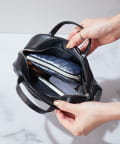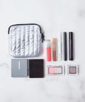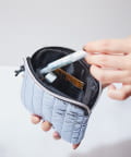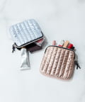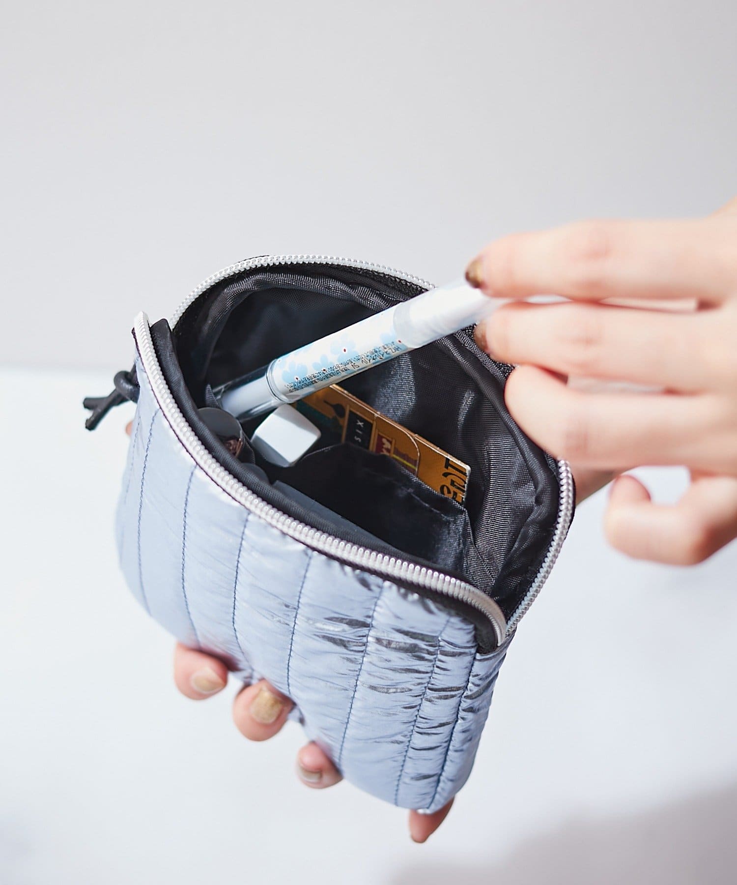 クッション性のある中綿入りキルティング素材で、大切なコスメやガジェットをやさしく保護します。