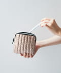 ふんわり軽やかな質感と、バッグの中でかさばりにくいすっきりしたスクエアフォルムが魅力のポーチ。