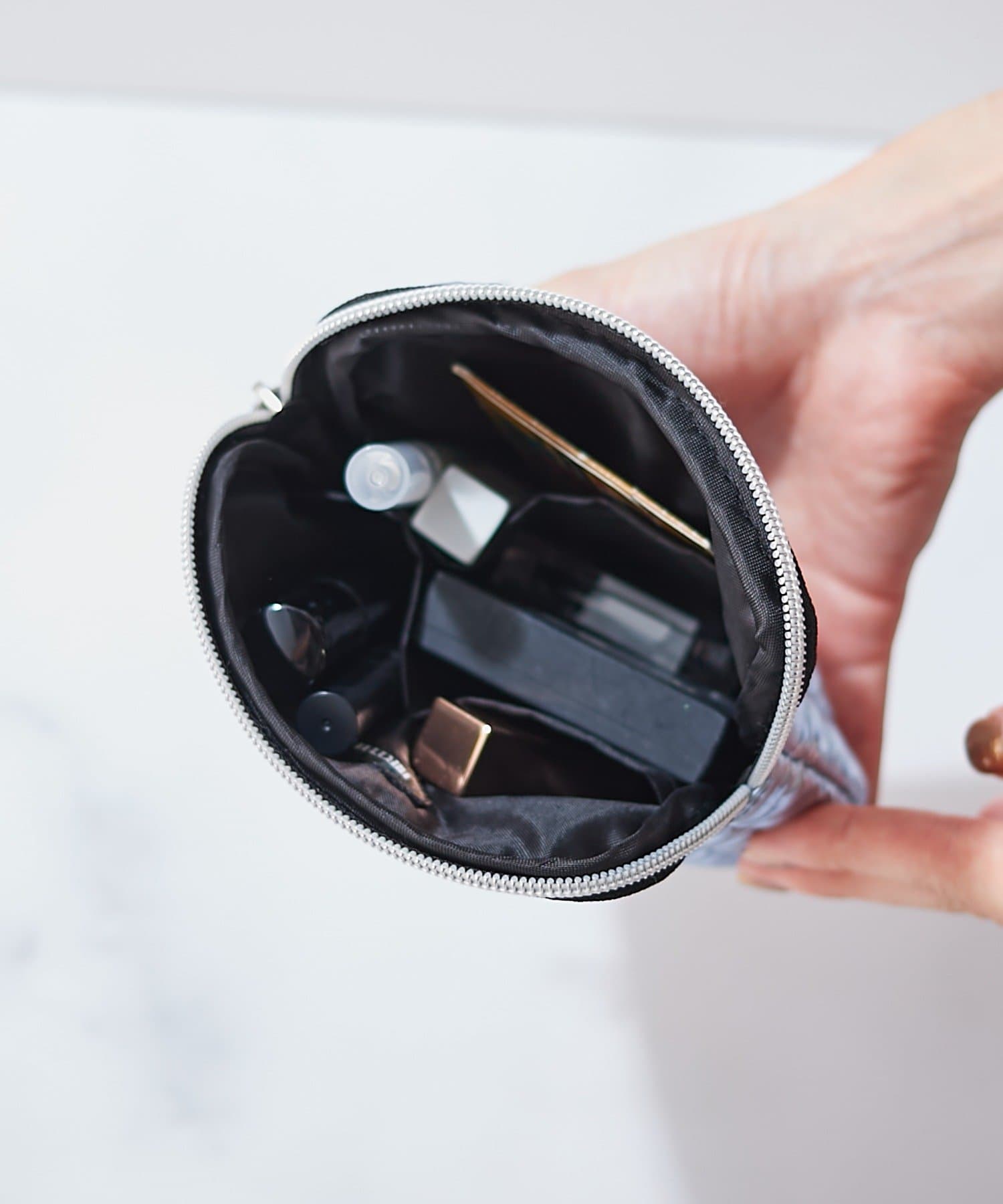 ミニマルなデザインながらリップ系の長いアイテムが収納しやすく、必要な時にサッと取り出せるのがうれしいポイント。前髪スティックやペンタイプのネイルオイルもまっすぐ収まります。