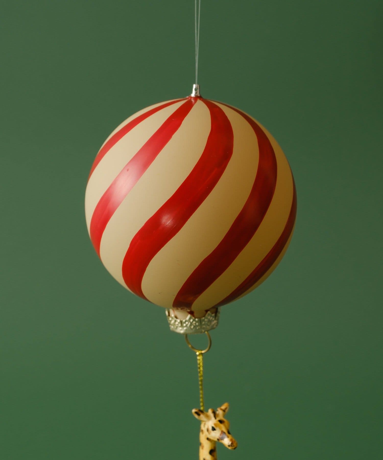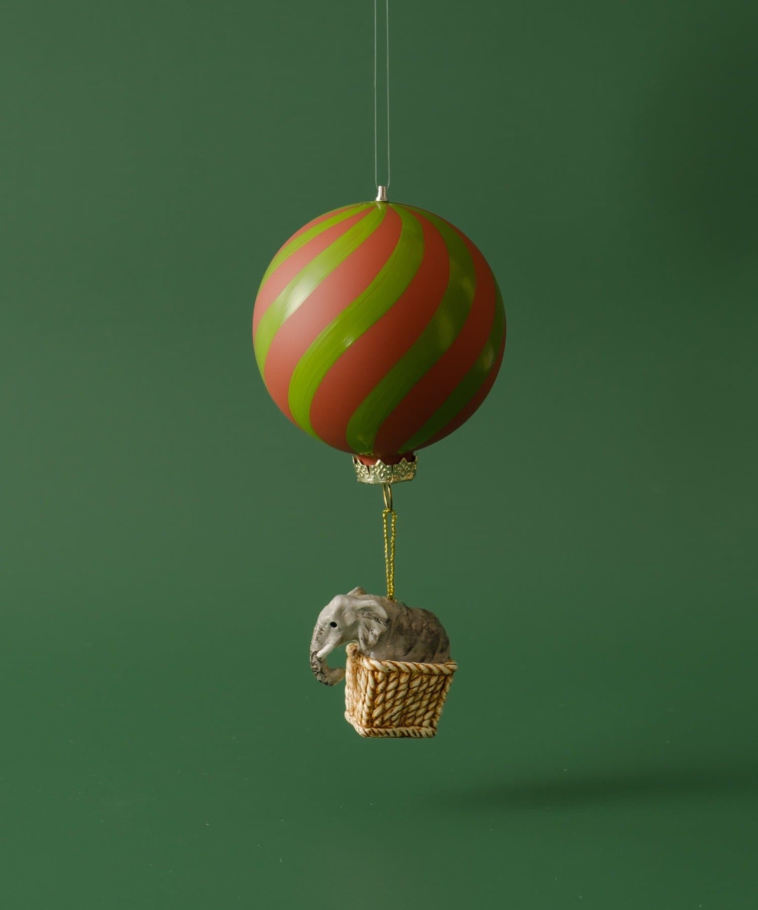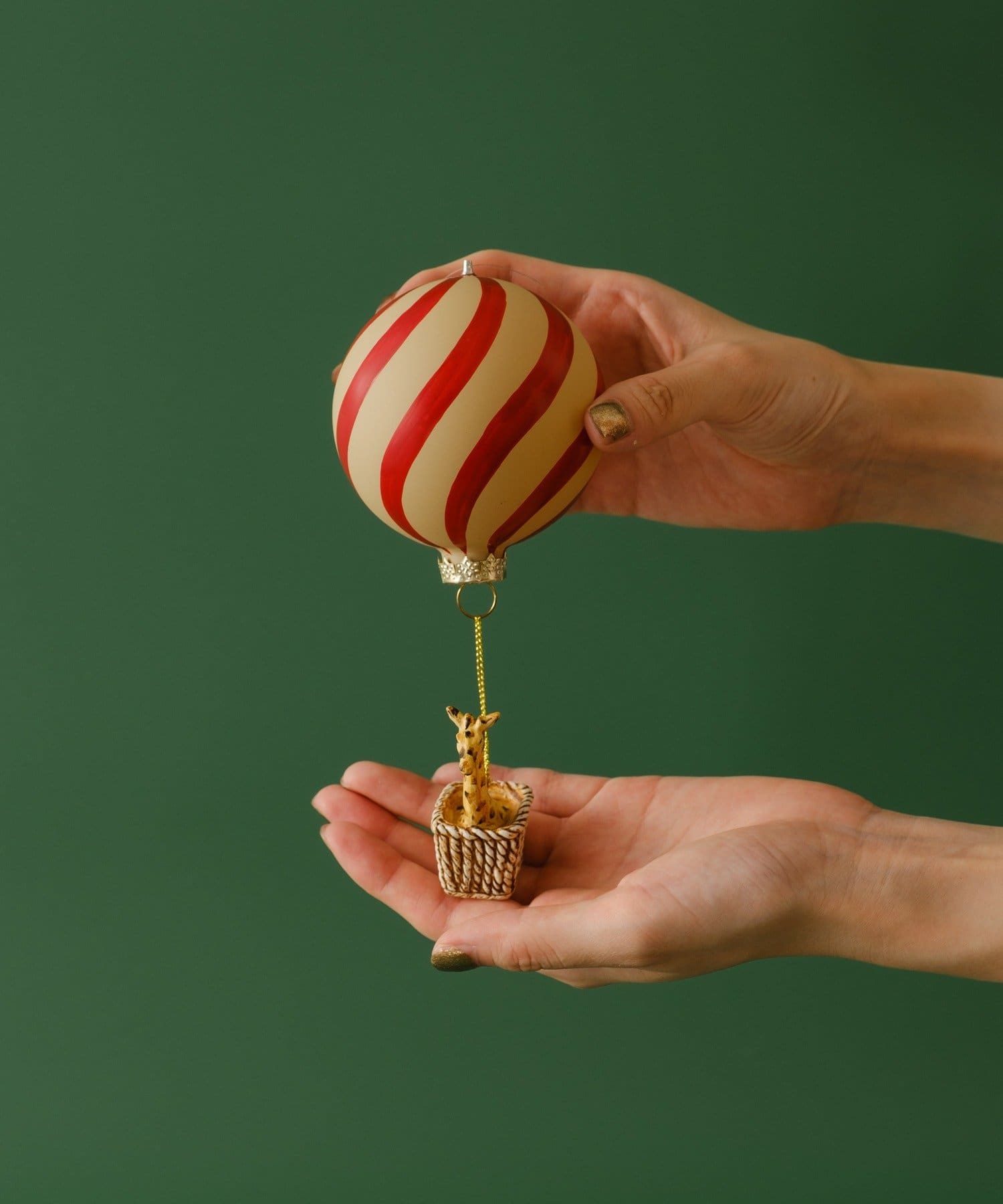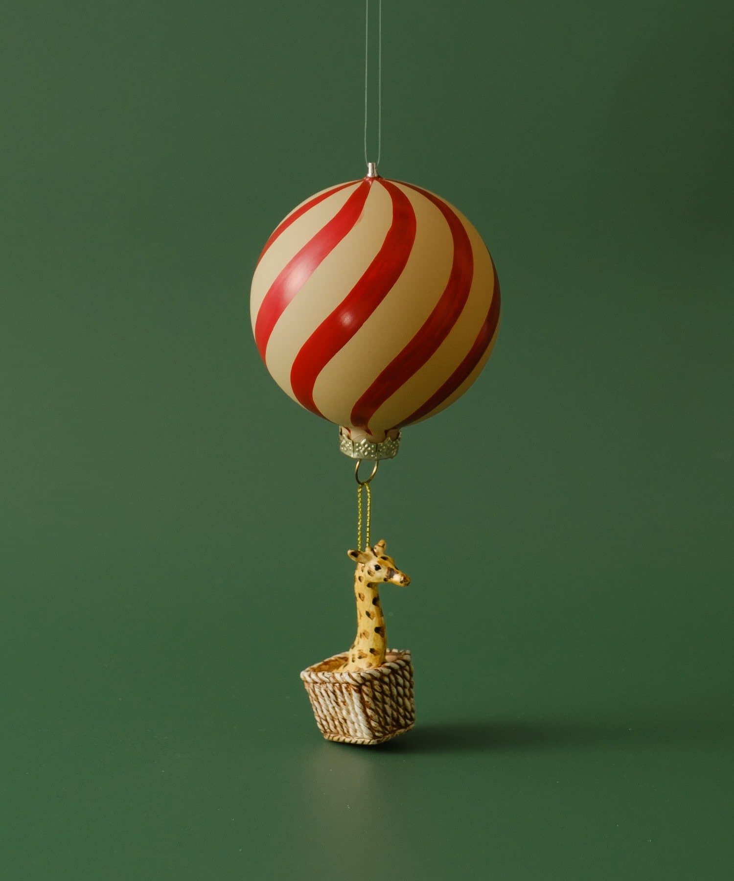 気球部分は繊細なガラス素材、動物たちはポリレジン素材で作られたユニークなオーナメント。
