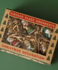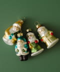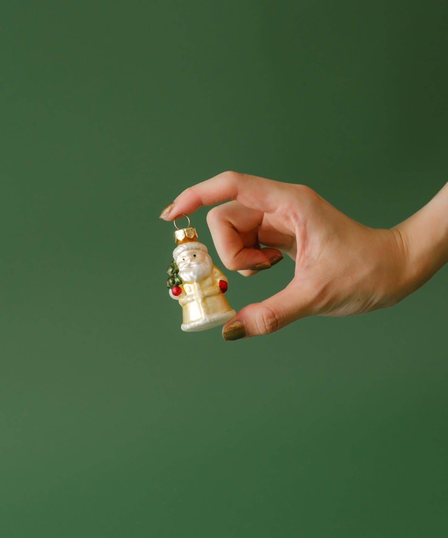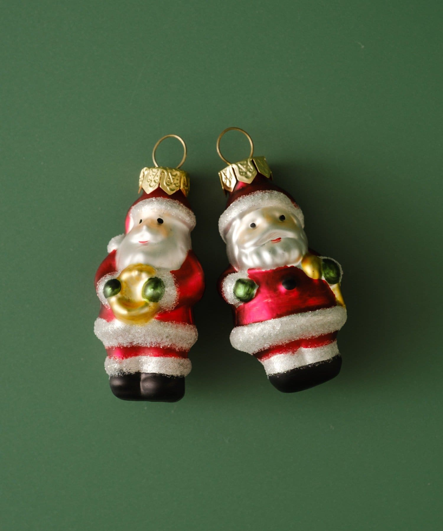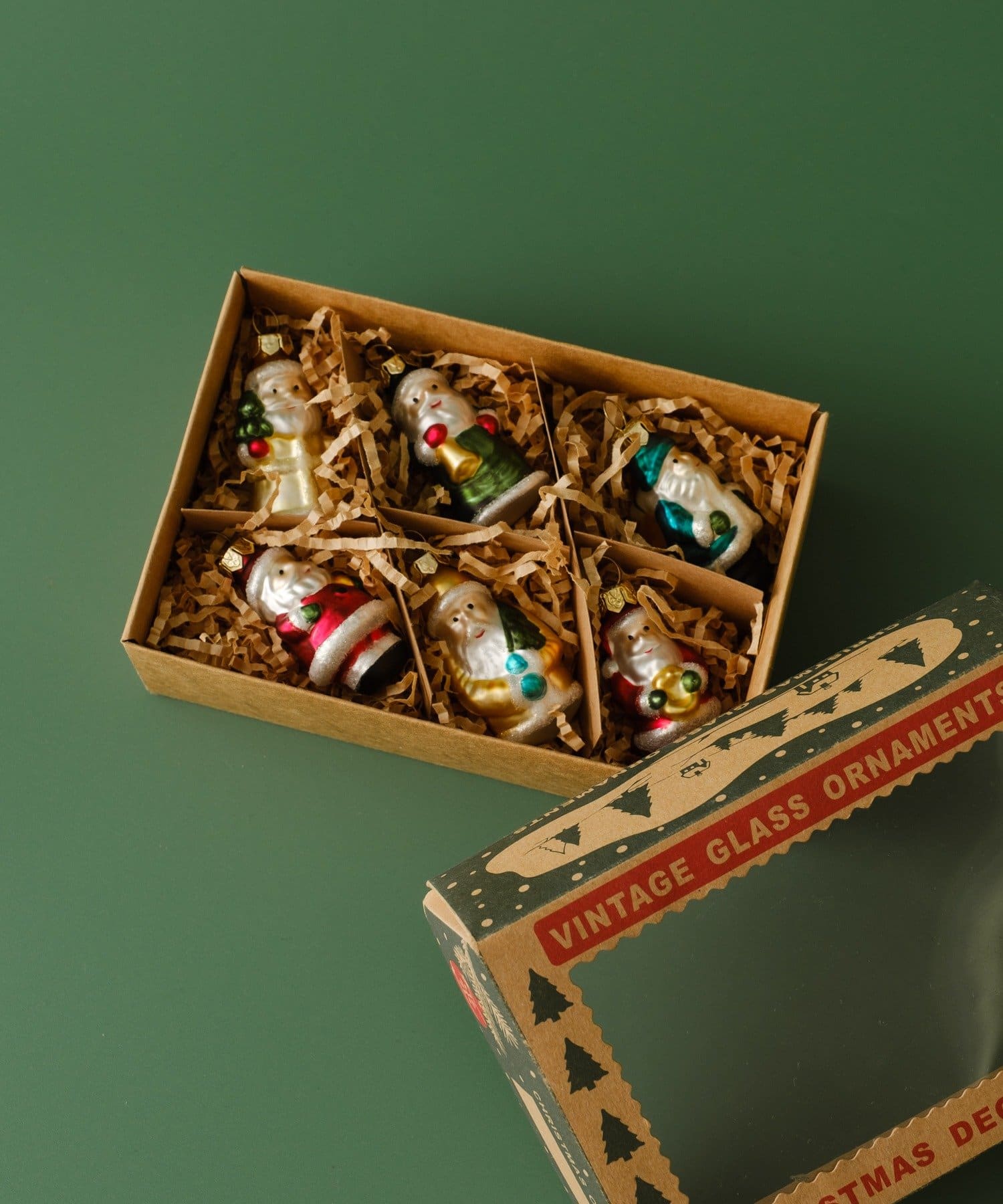 様々なクリスマスの装いをしたヴィンテージガラス調のサンタが6種類セットになったオーナメント。