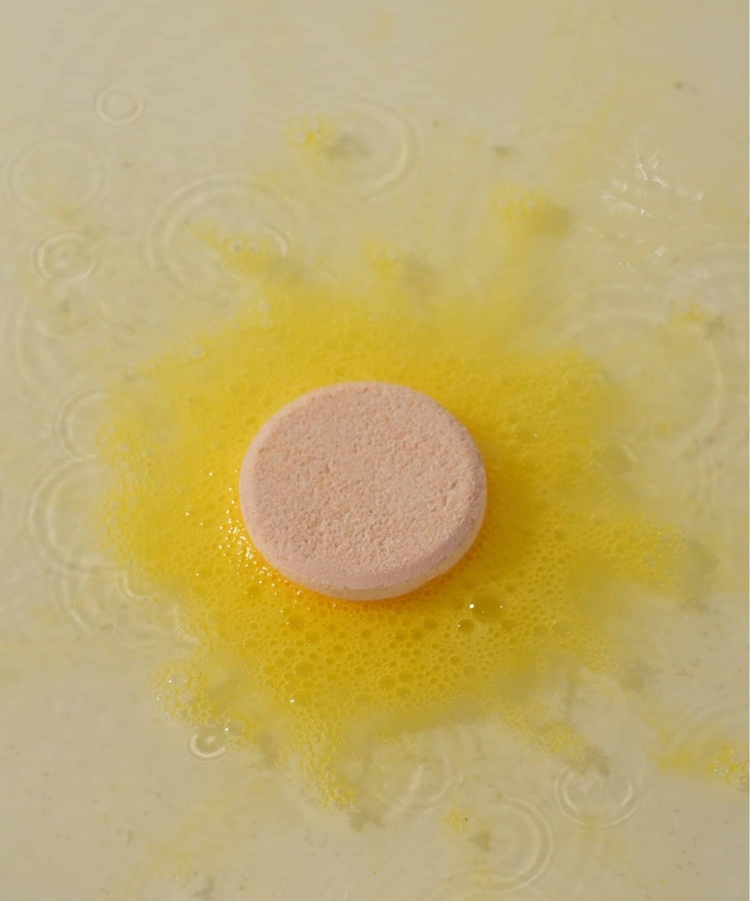 炭酸泡が肌を柔らかくし、血液循環に役立ち、リラックスした使用感を提供するバスボム。