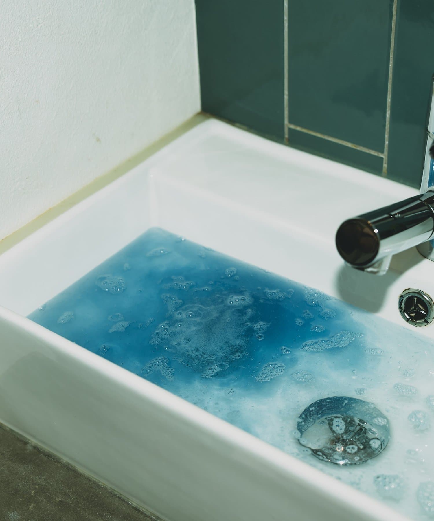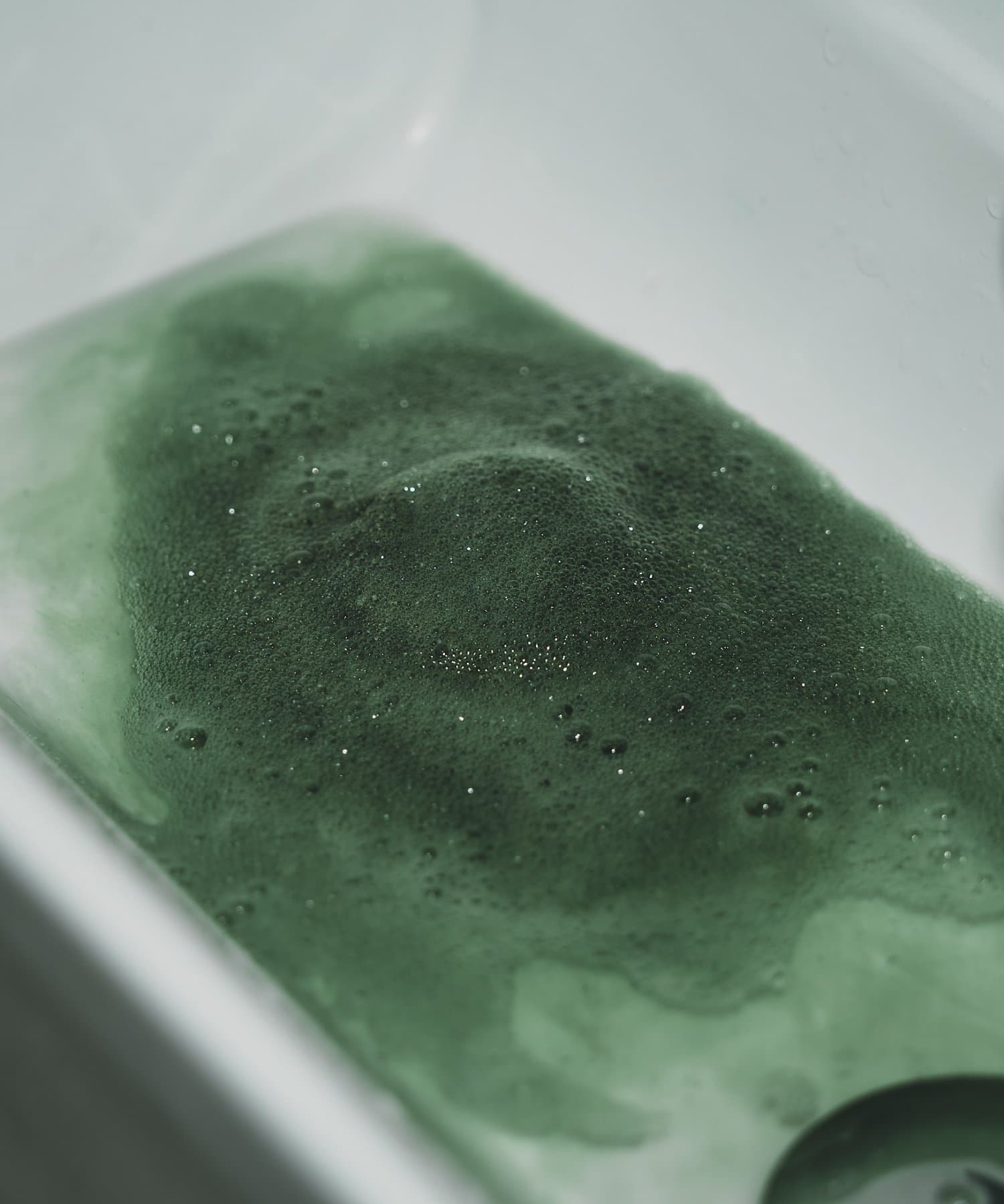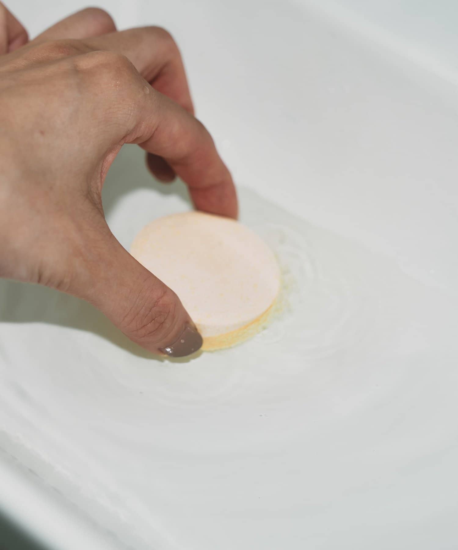 浴槽の半分程度にお湯をためた後、タブレットを1個入れて半身浴を楽しめます。