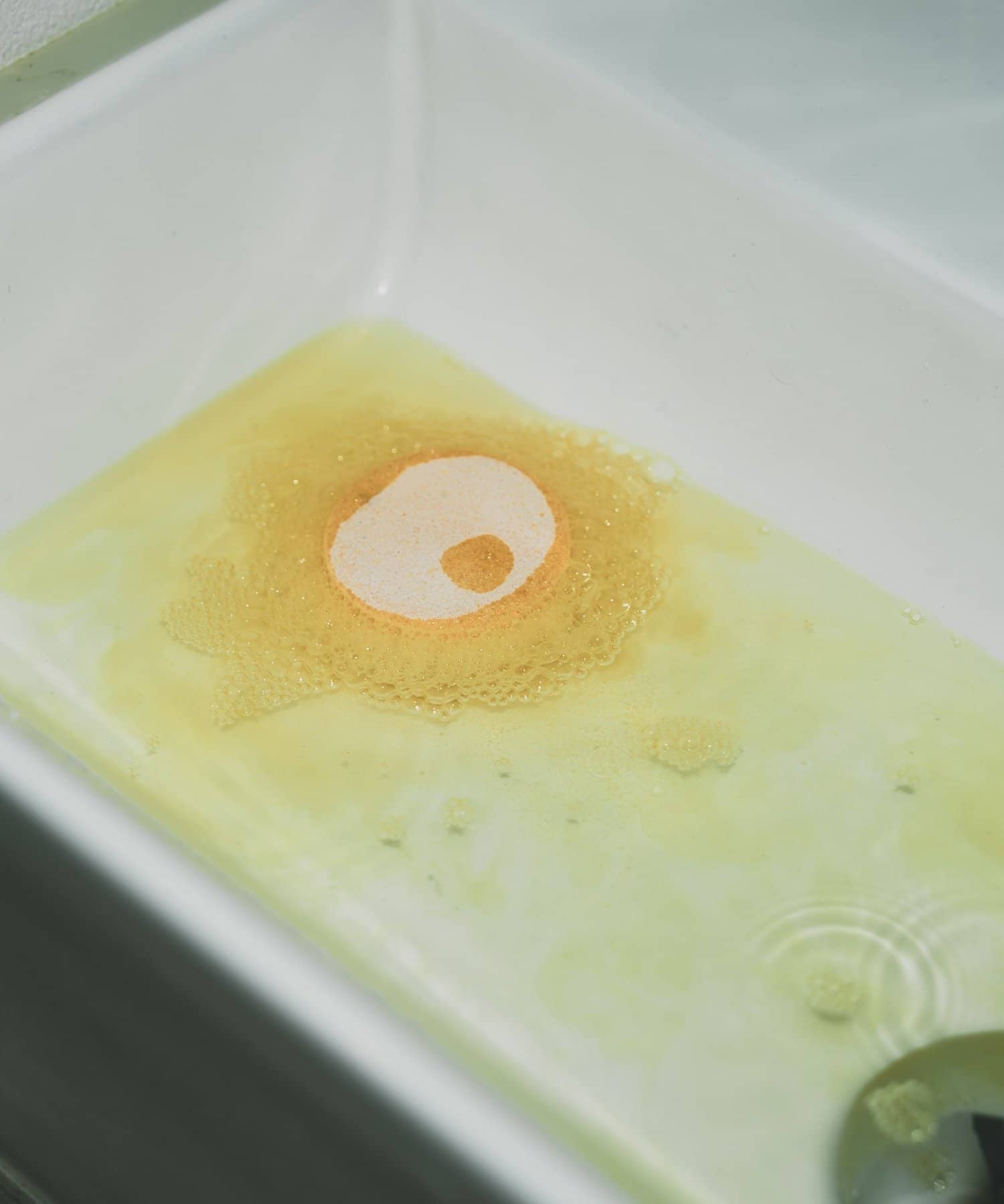 洗面台にぬるま湯をためた後、タブレットを0.5個入れて洗顔してみてください。