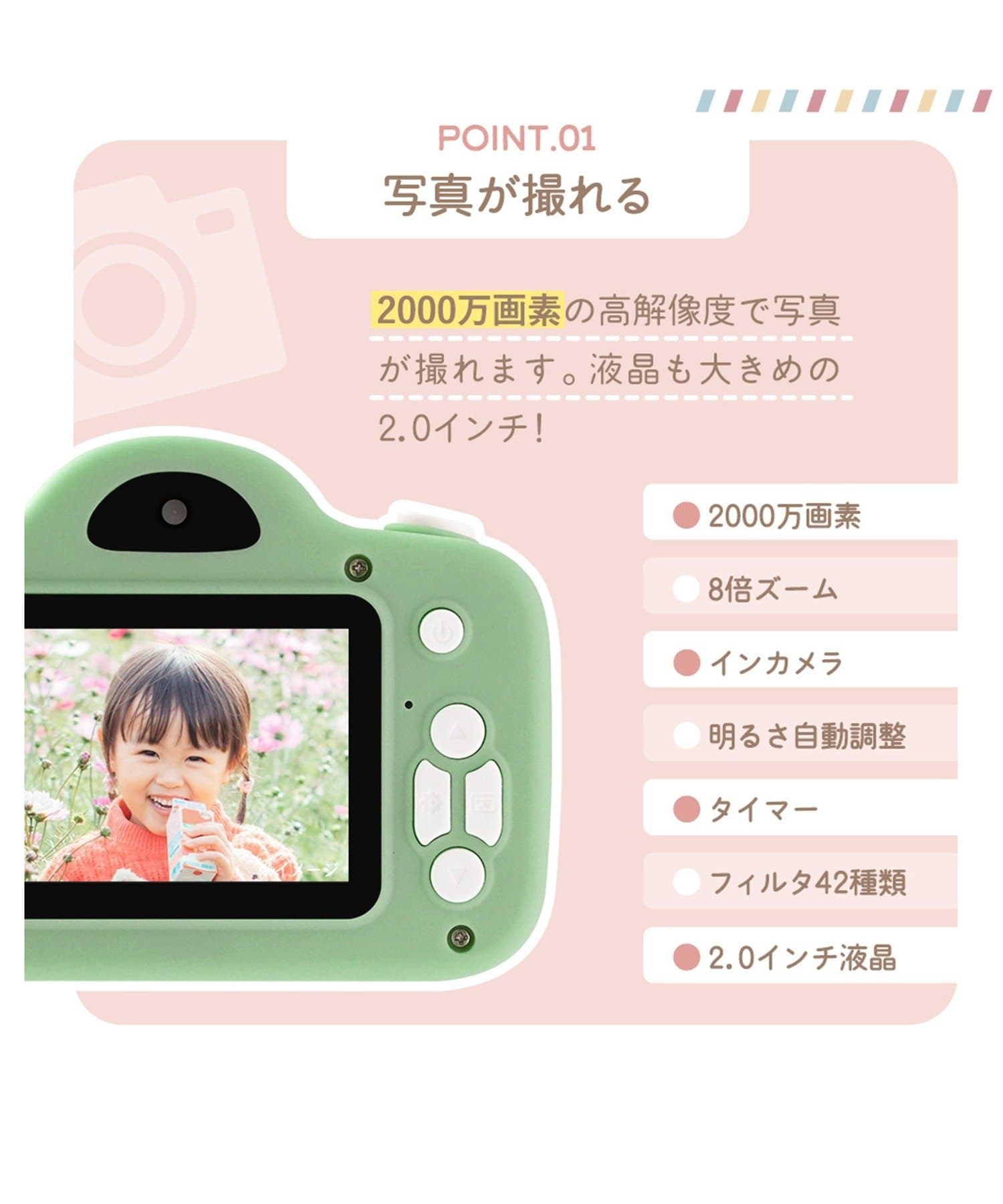 コンパクトながら様々な機能を持ったキッズカメラ。