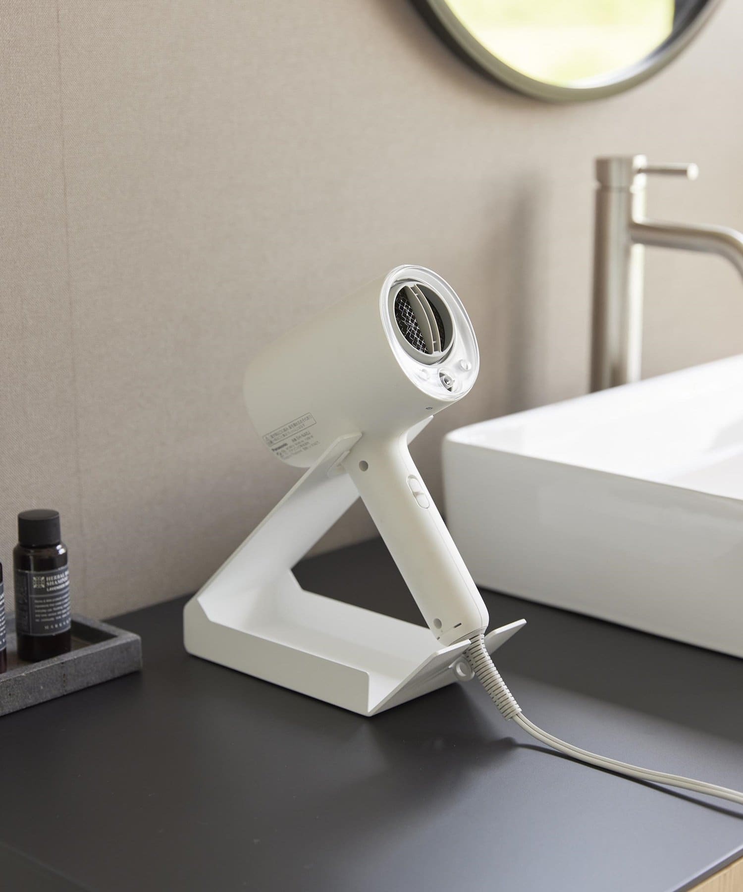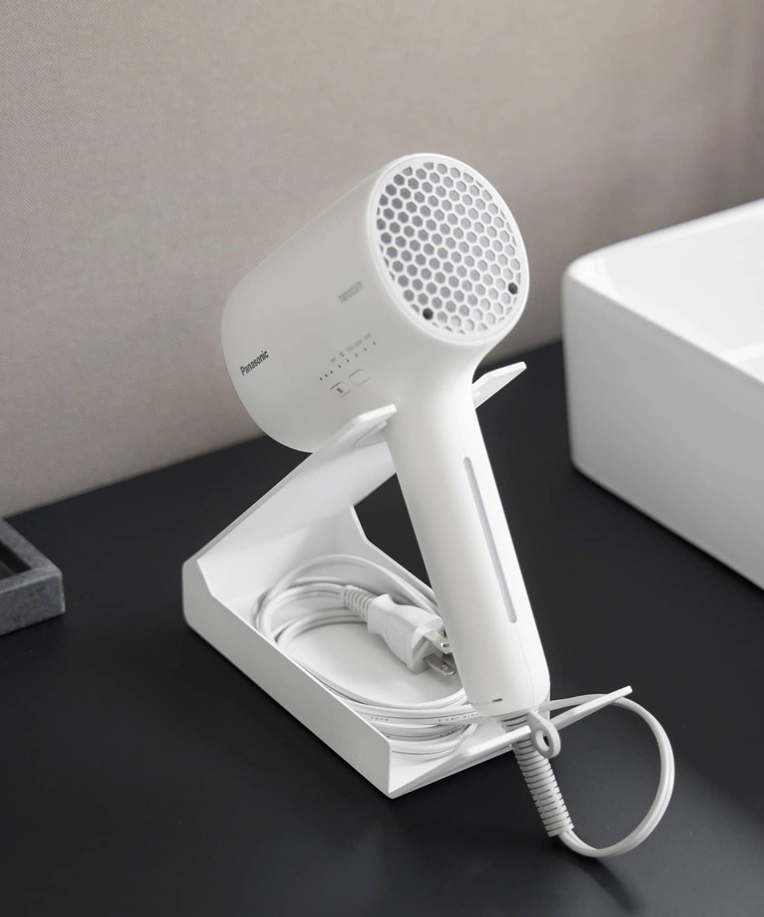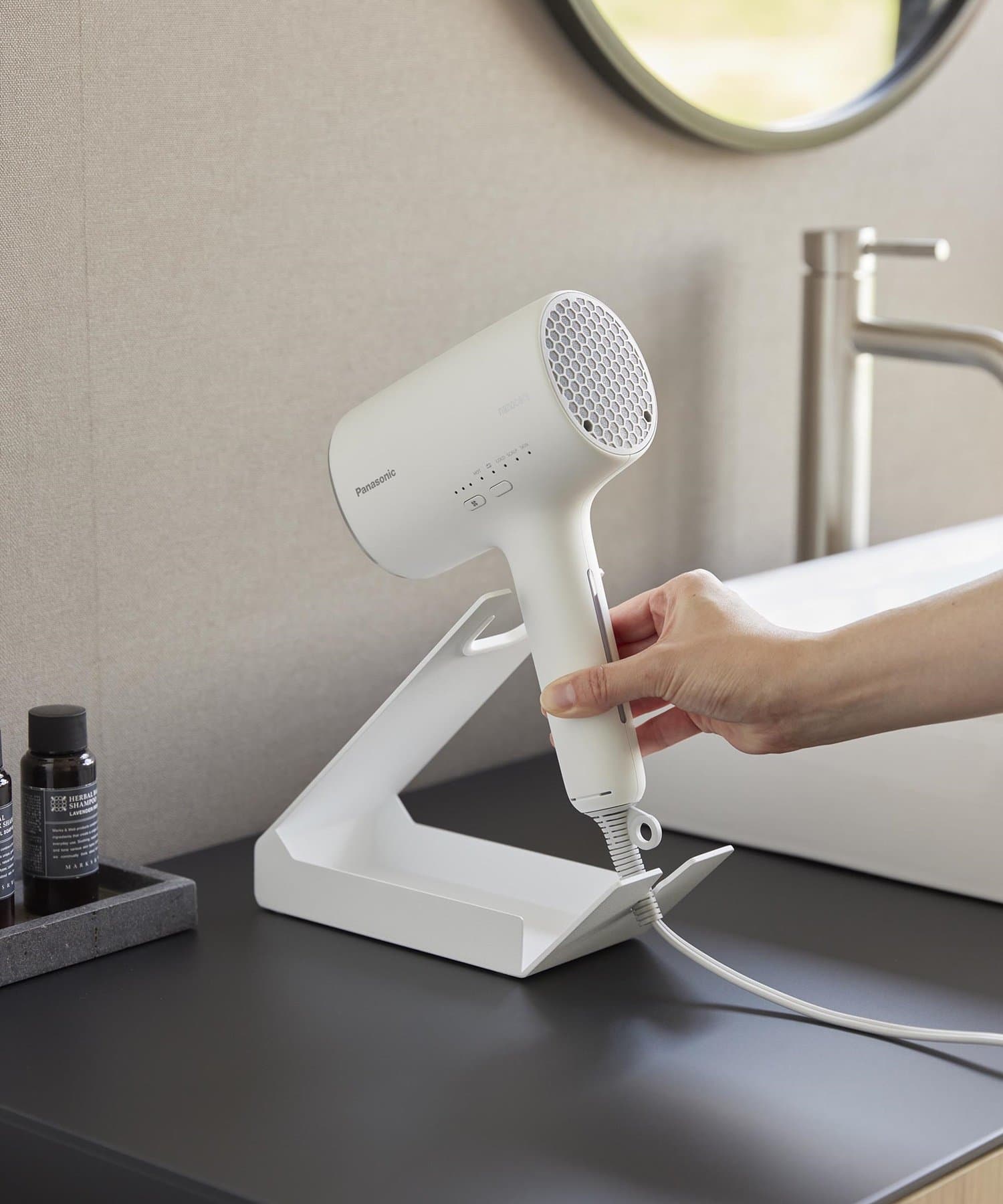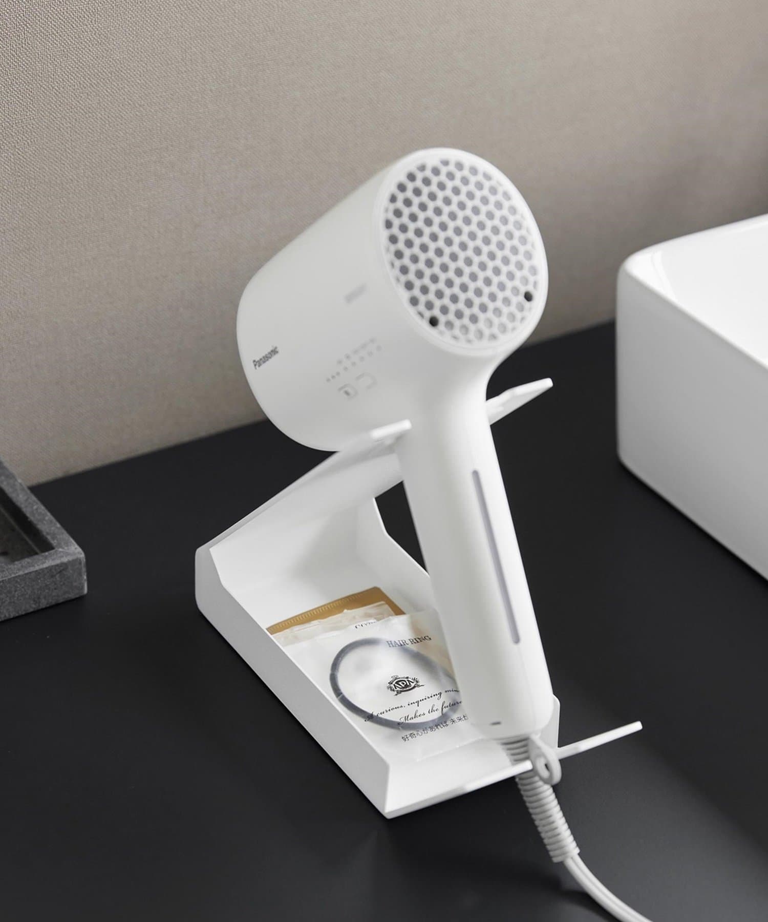 ドライヤーやヘアーアイロンをすっきり仕舞い、サッと使える、便利なスタンド。