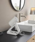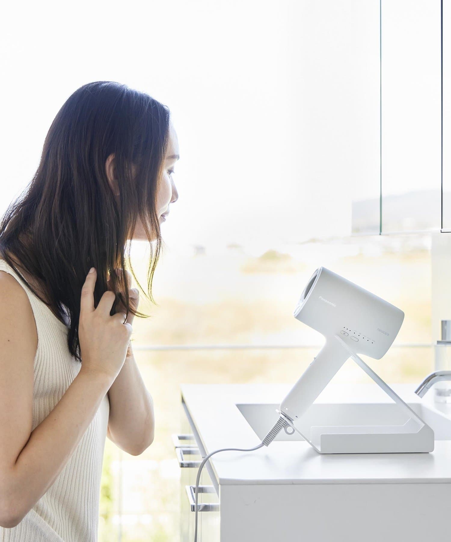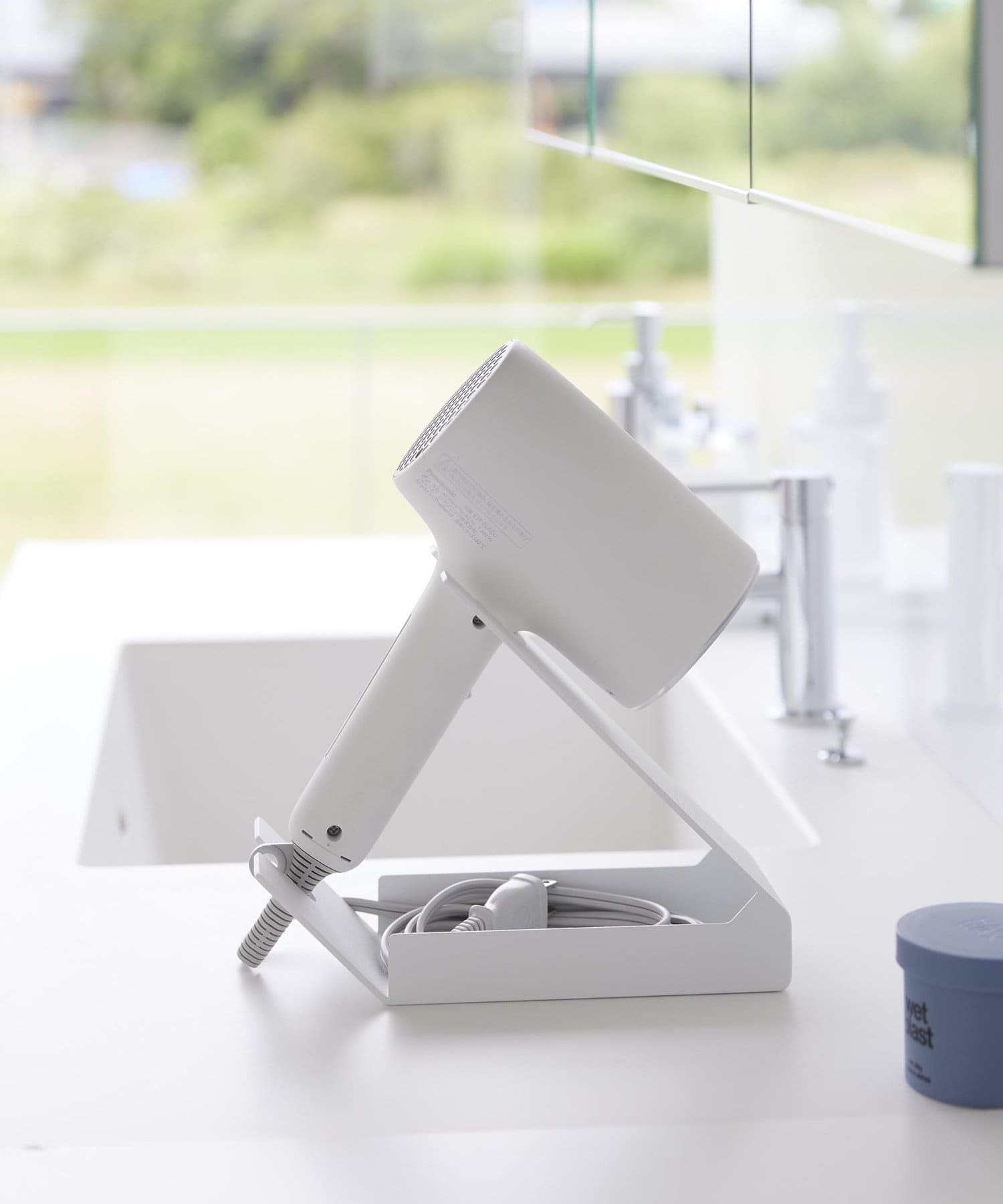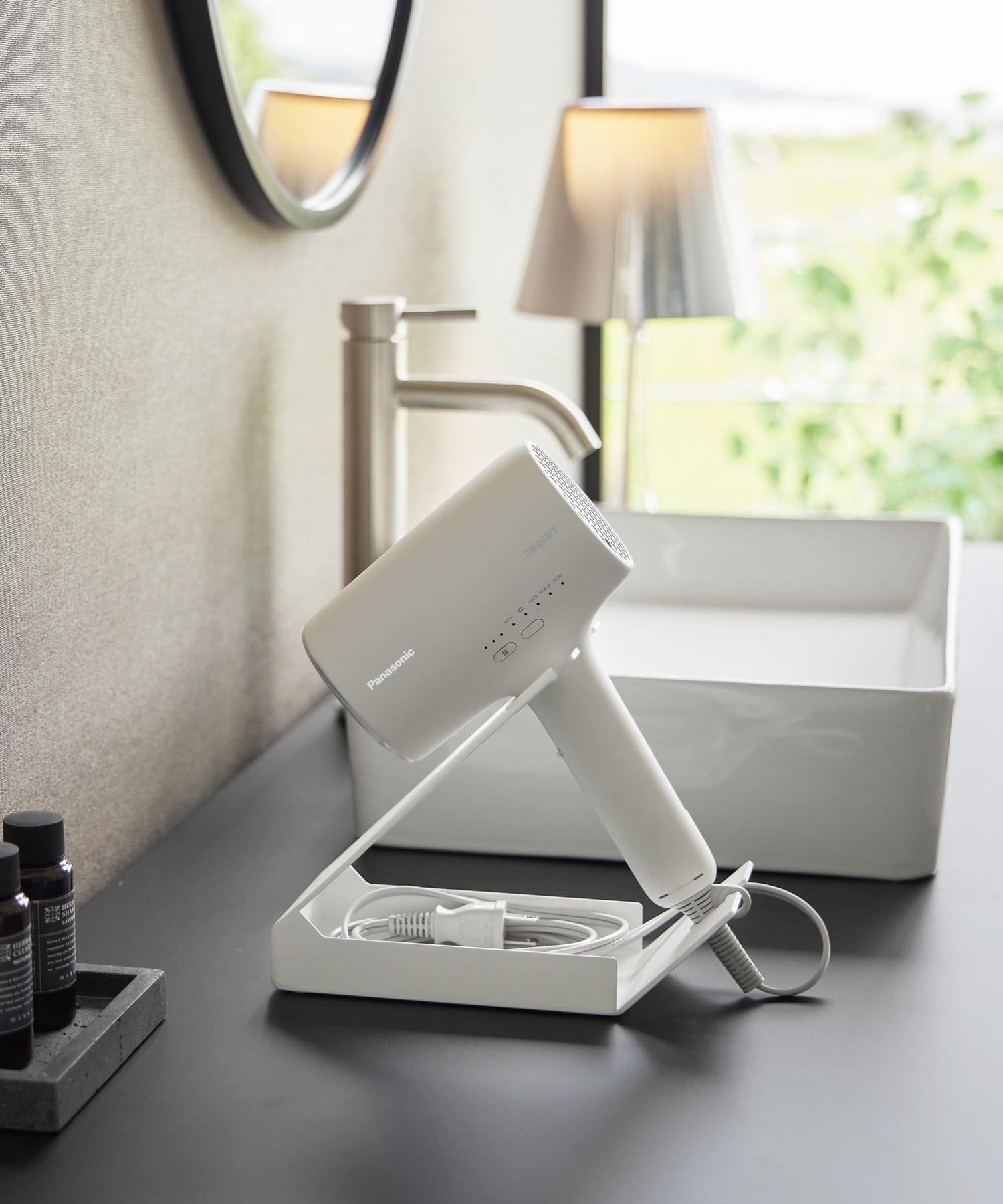 ドライヤーやヘアーアイロンをすっきり仕舞い、サッと使える、便利なスタンド。
