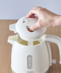 コロンとしたフォルムの見た目がかわいい電気ケトル。水を入れて電源を入れるだけの簡単操作!