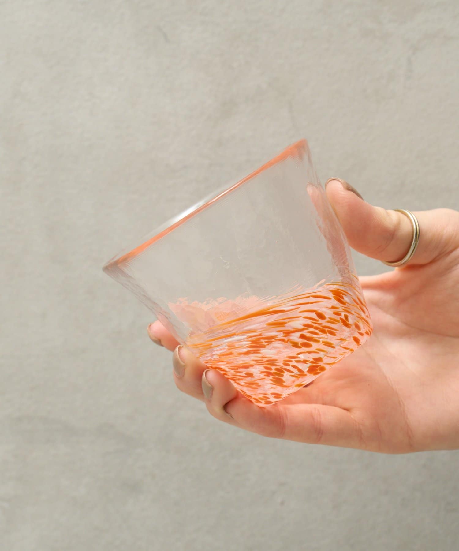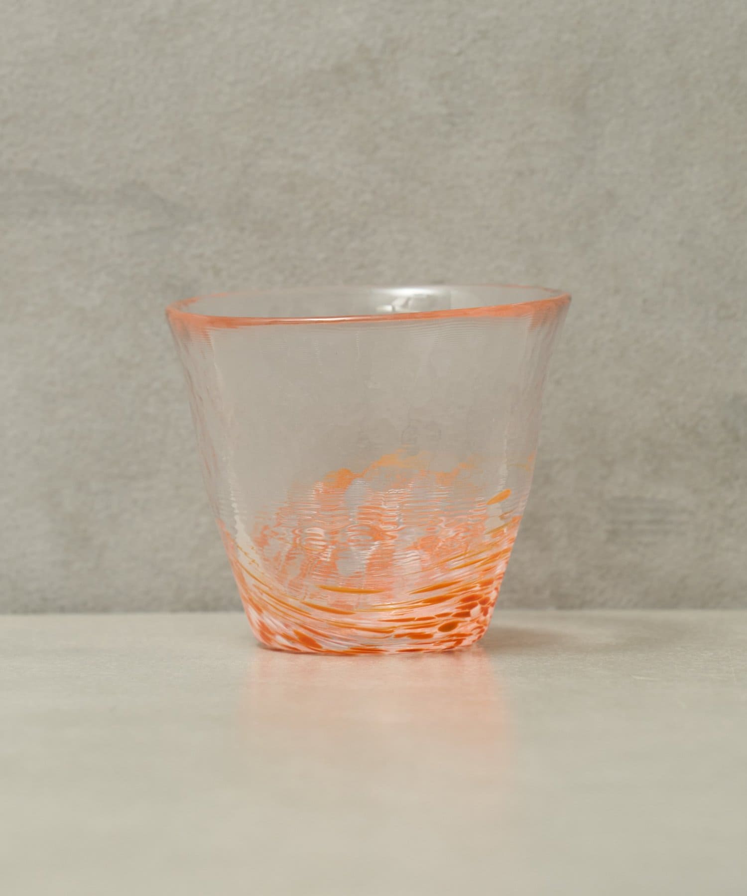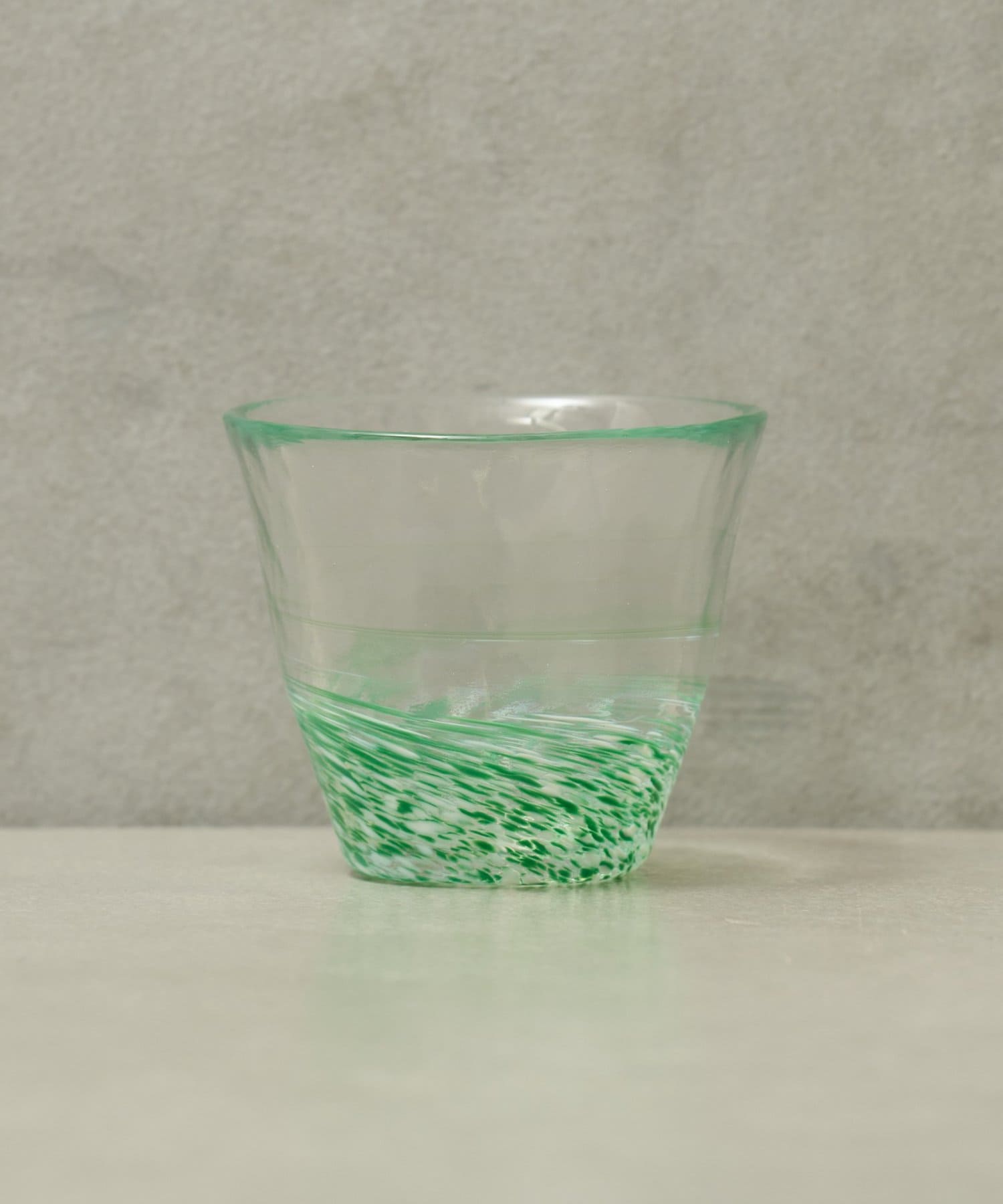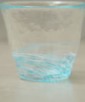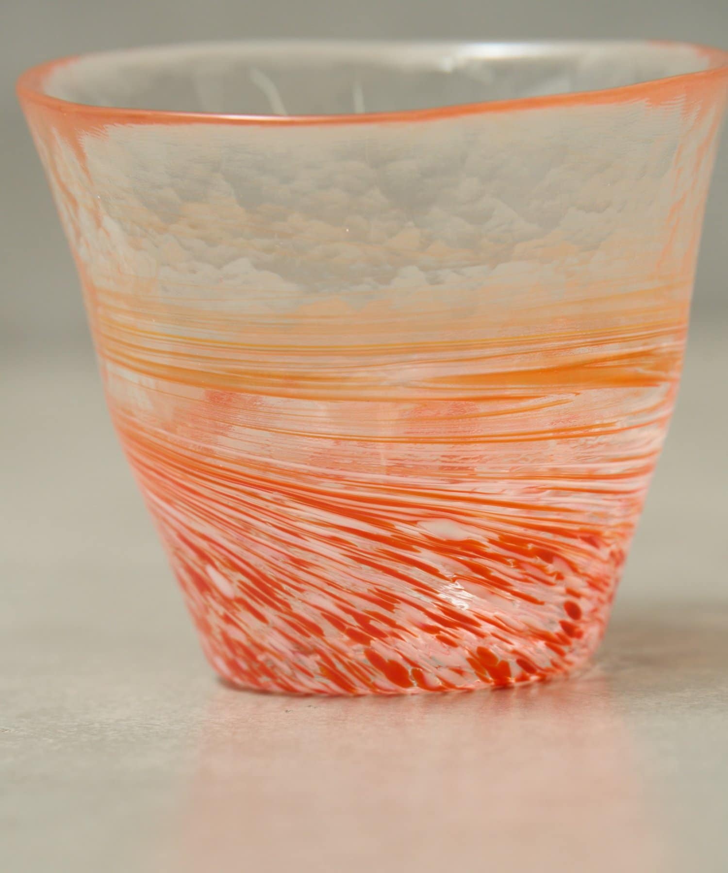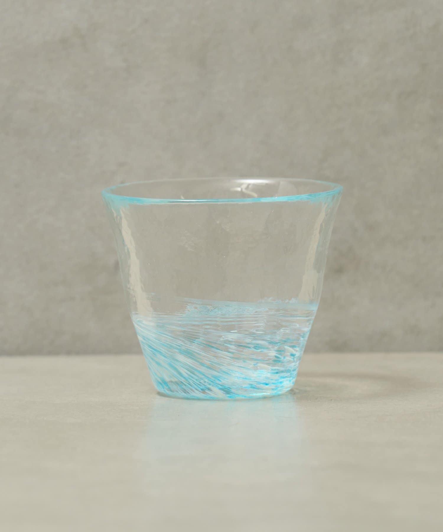底に向かって濃くなるグラデーションと、渦を巻くような色ガラスの模様が、見る角度によって異なる印象を与え、いつまでも眺めていたくなるような魅力にあふれています。