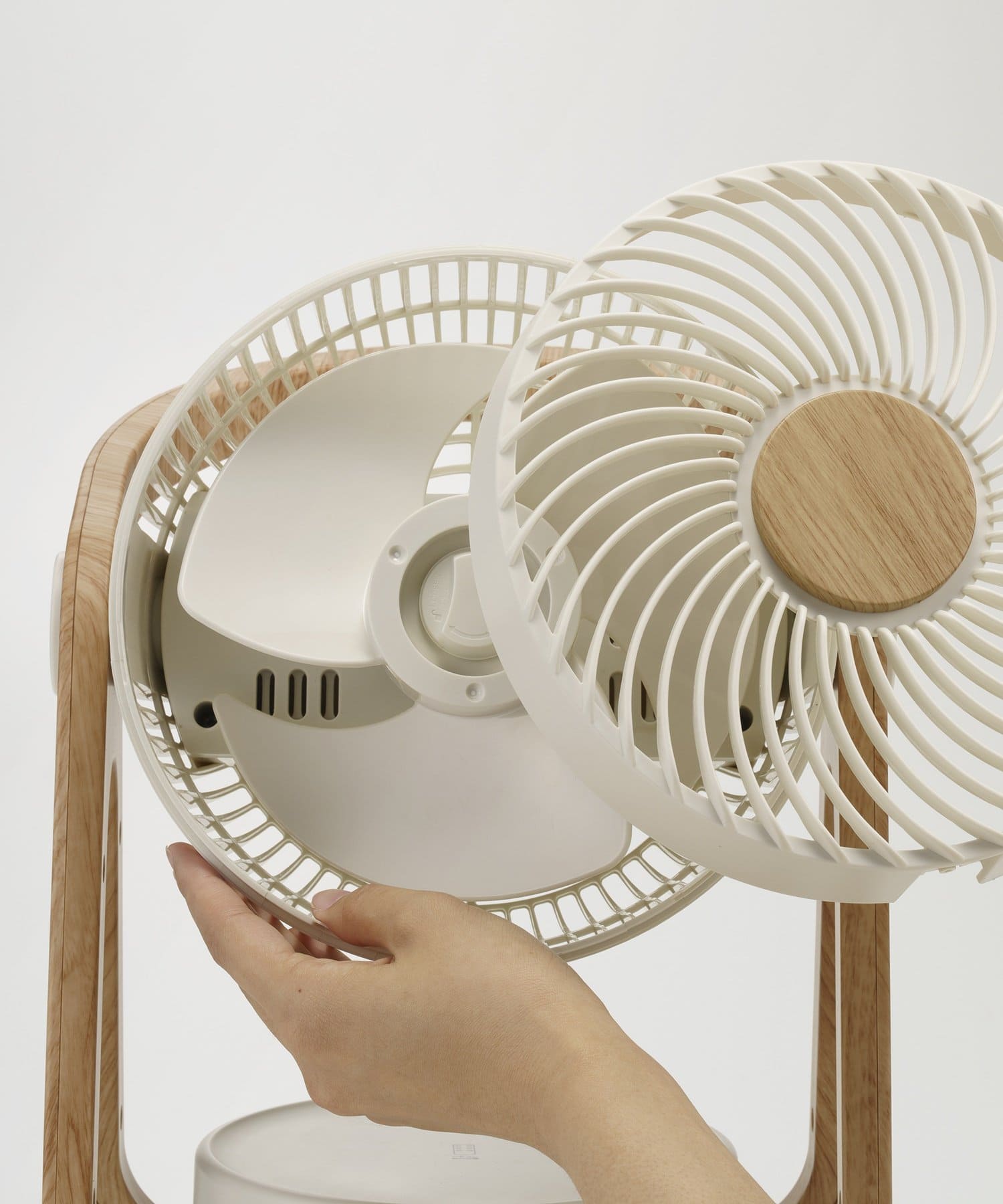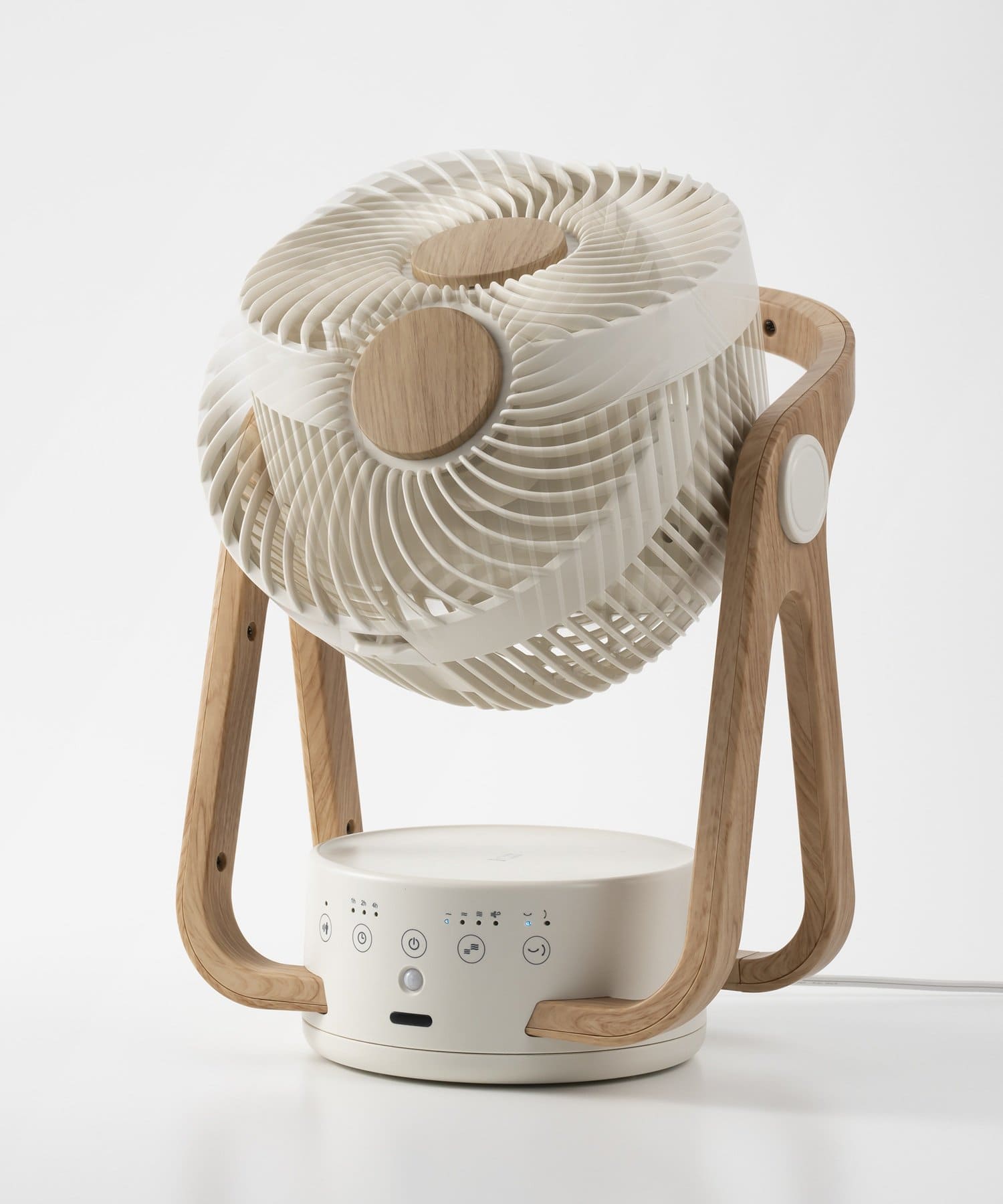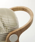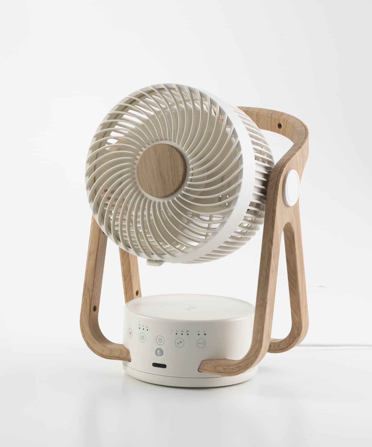 質感の高い木目調のフレームとモダンなボディカラーを組み合わせたインテリア性の高さと、持ち運びがしやすい使い勝手のよさがポイントのサーキュレーター。