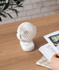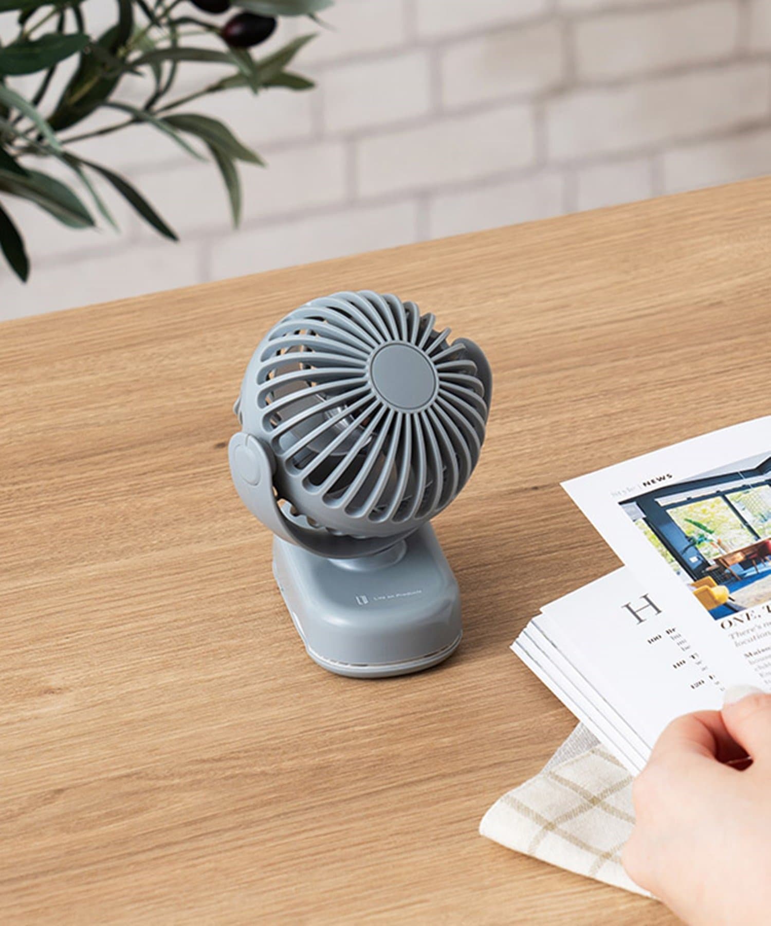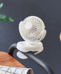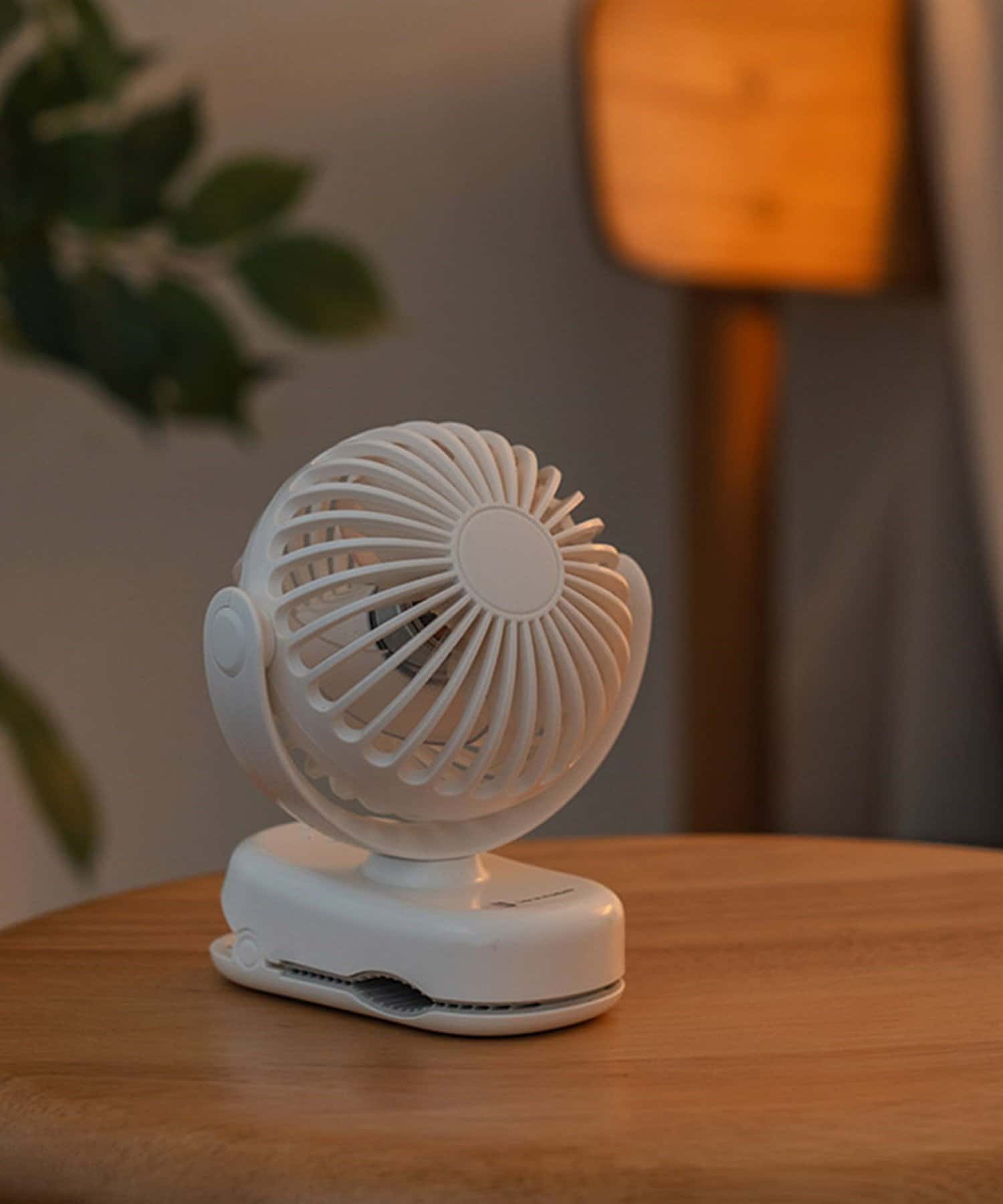 丸いフォルムと手のひらサイズがかわいい、持ち運びに便利なクリップファン。