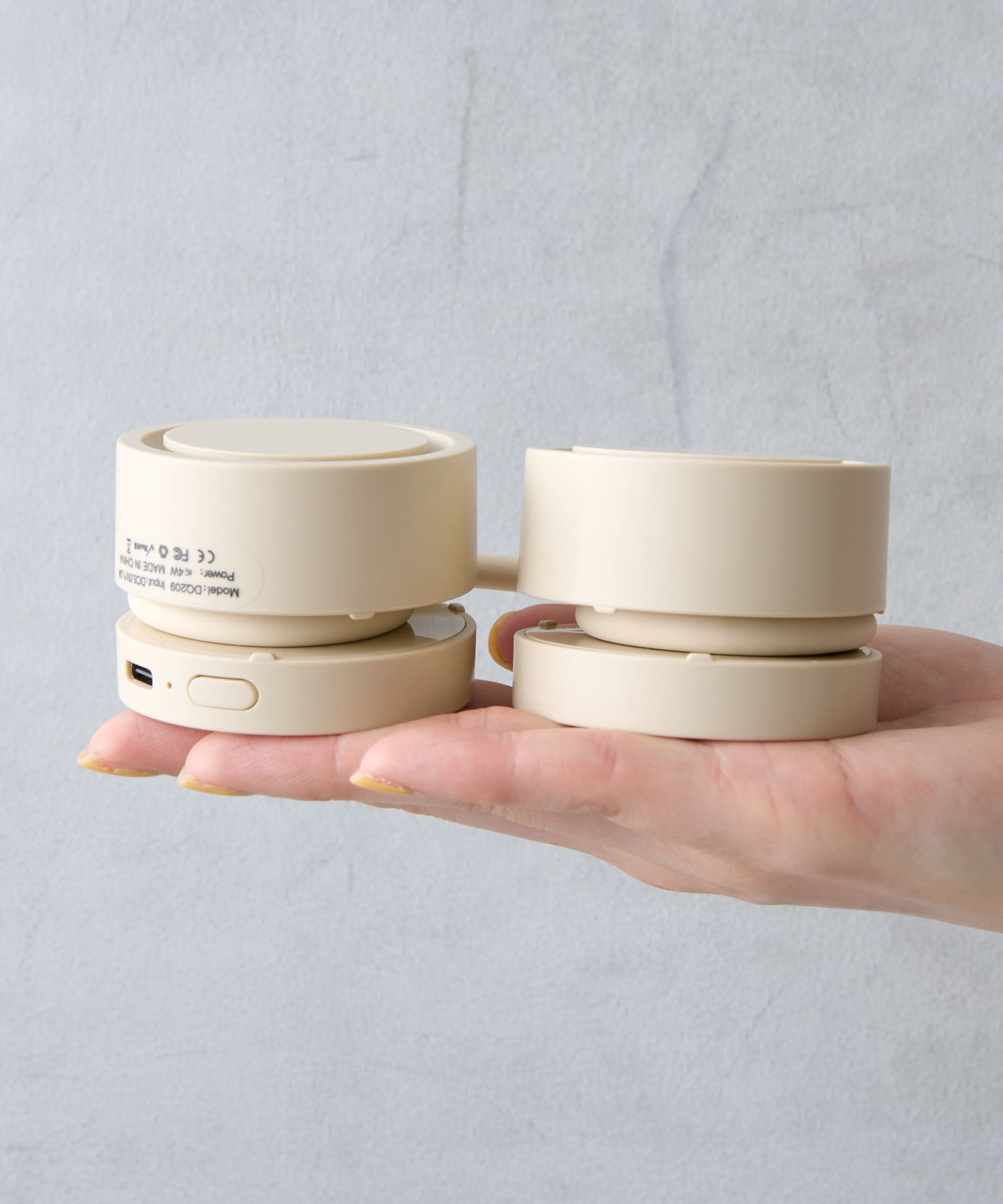 手持ち、首掛け、卓上の3WAYで使えるネックファン。