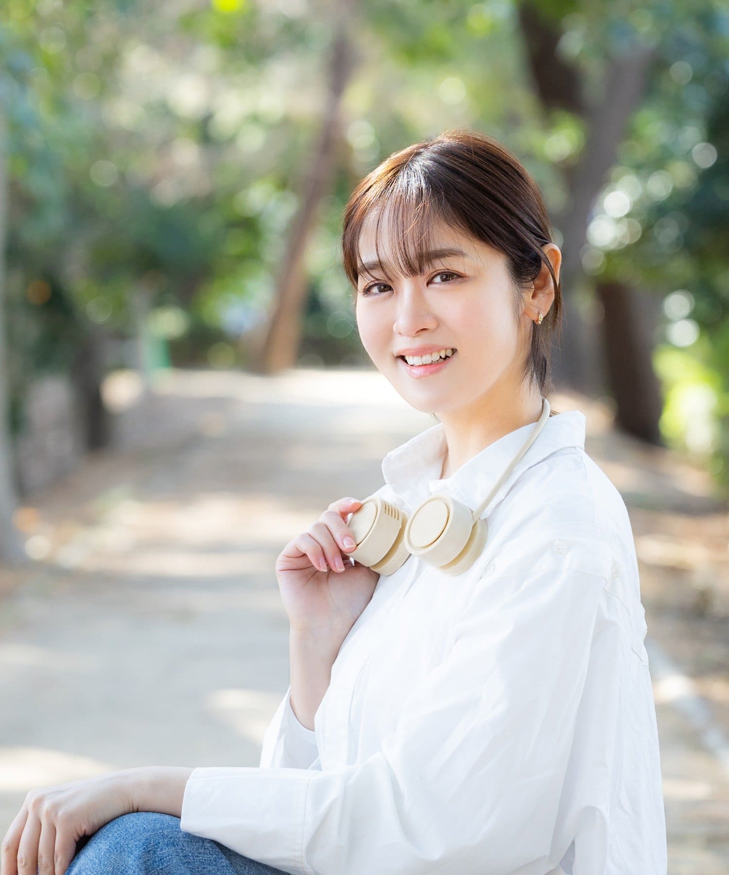 また羽根無しの安全な首掛けタイプの扇風機なので両手が空きとても便利!