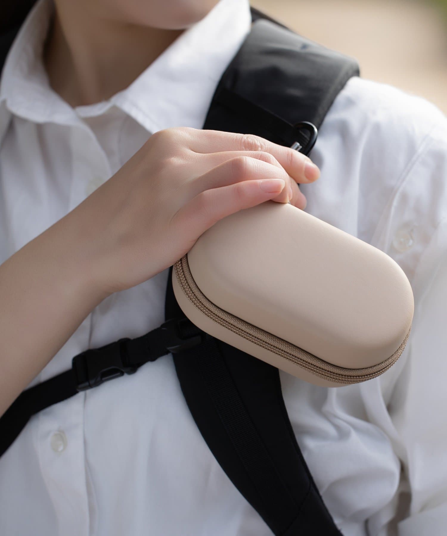 持ち運びもくるくる巻いて充電ケーブルと一緒に付属のポーチにコンパクトに収納可能。