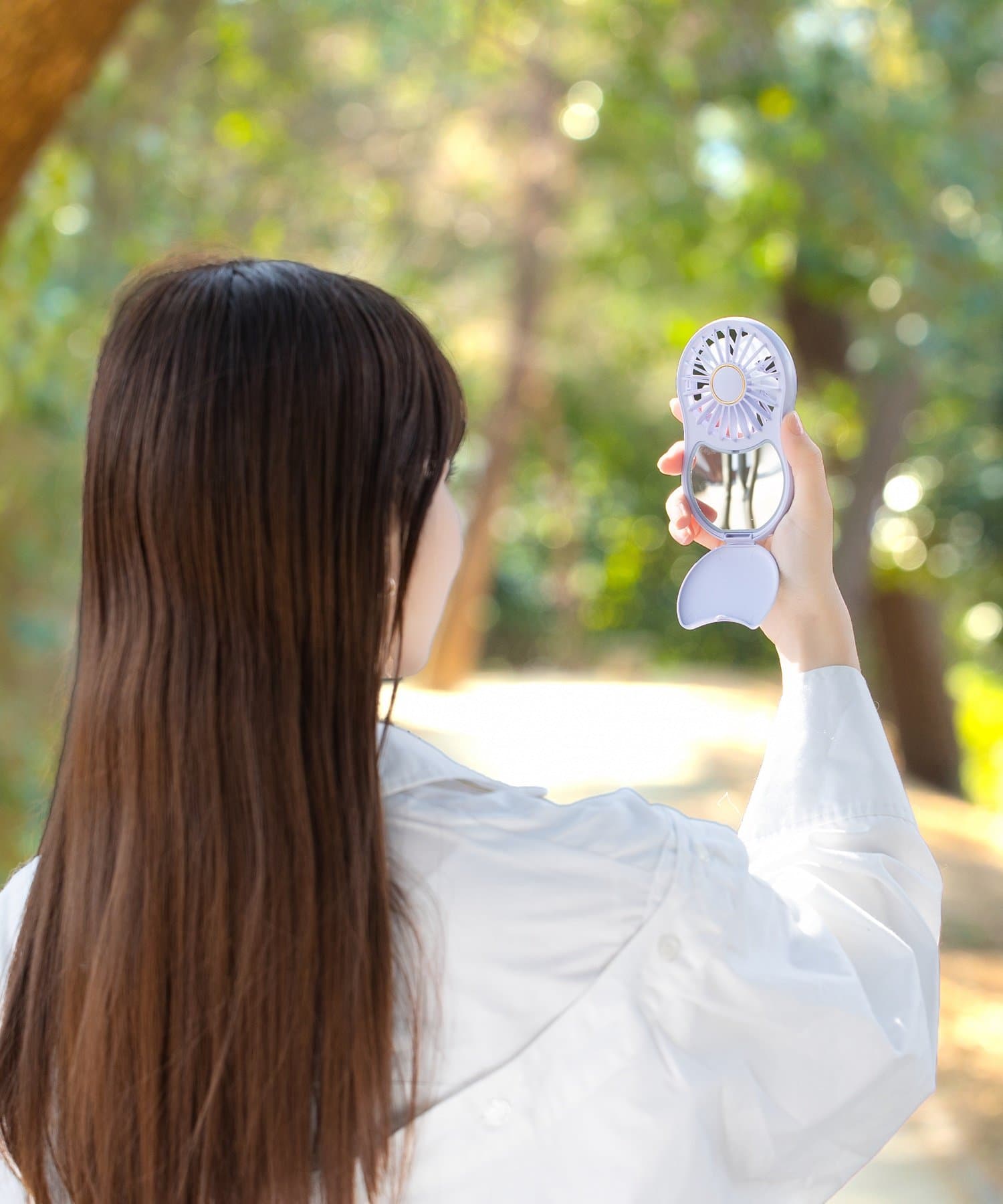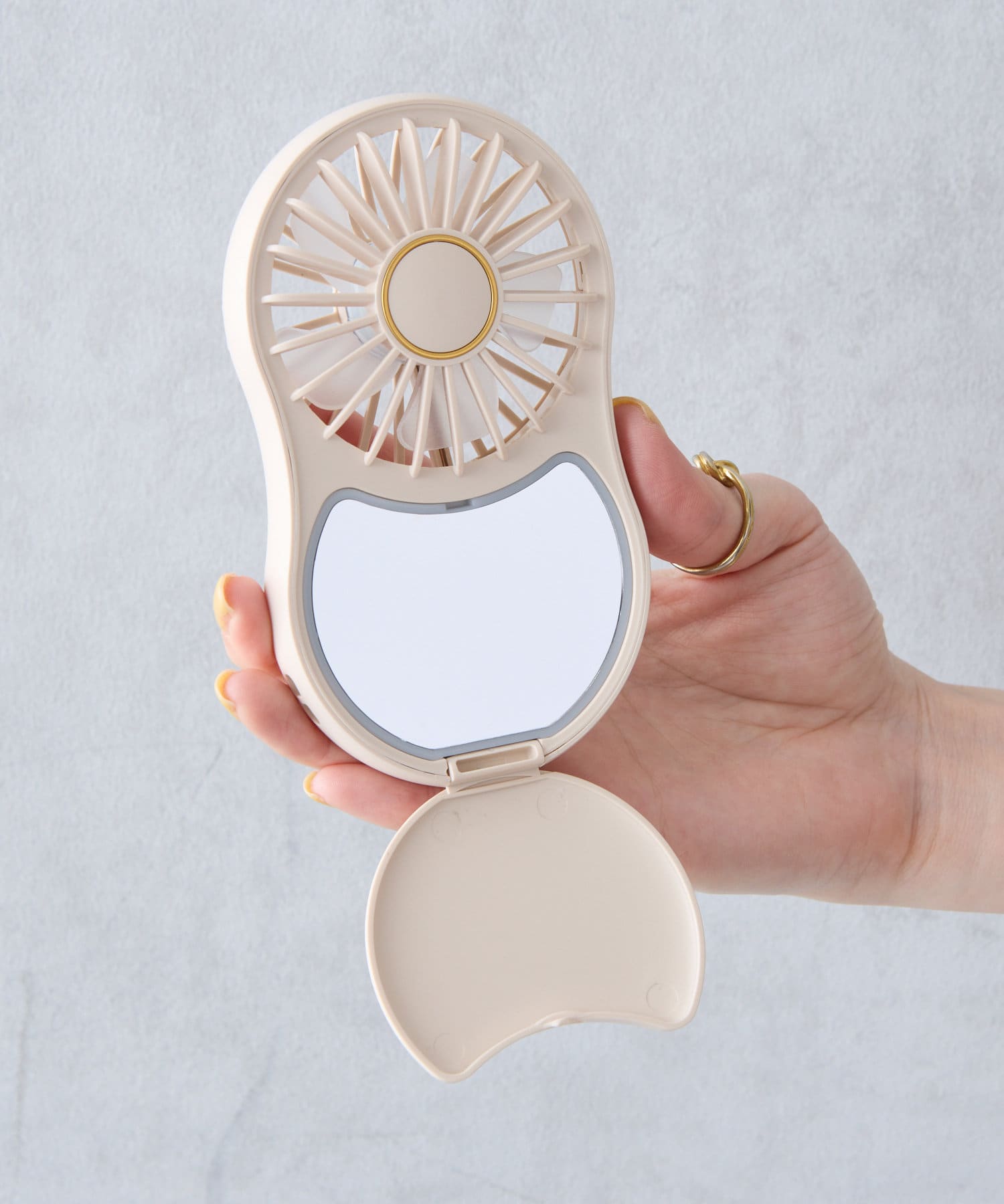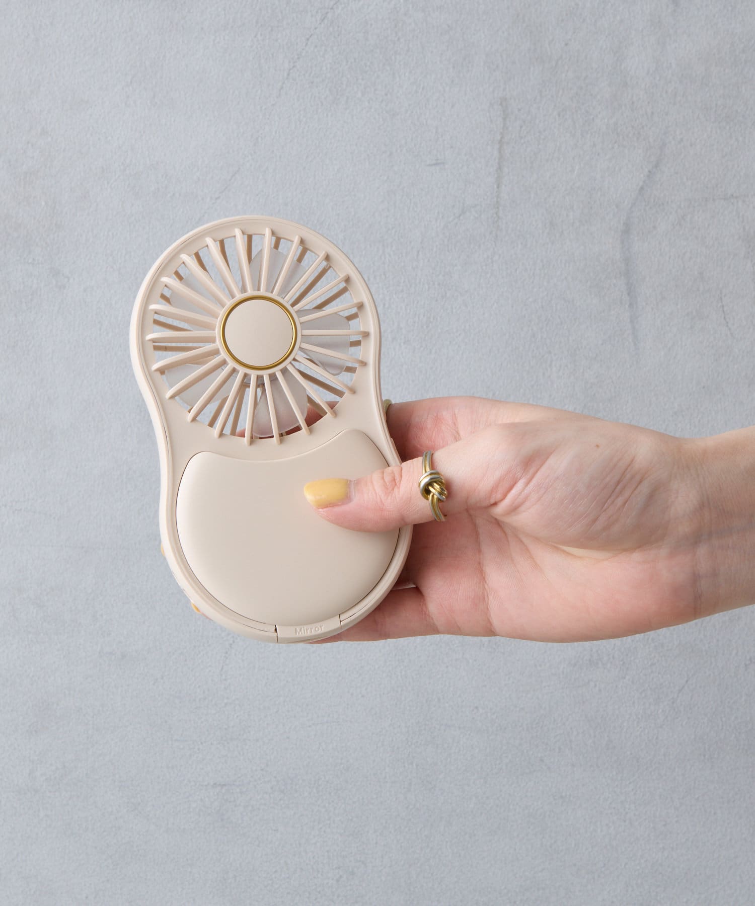 お化粧直しや身だしなみチェックに便利なミラー付きのハンディファン。