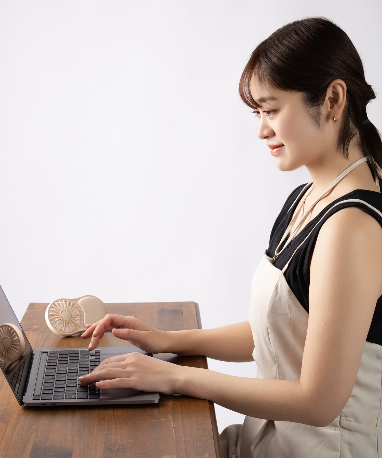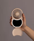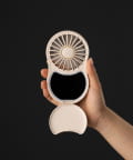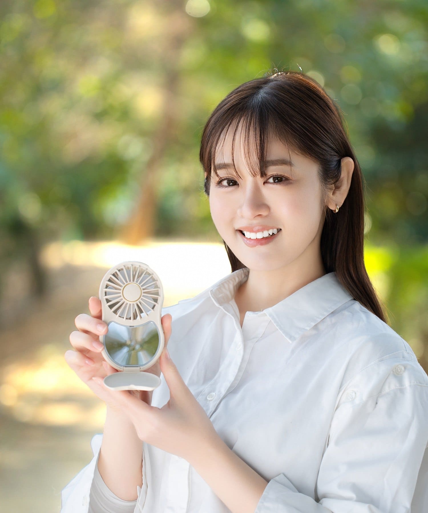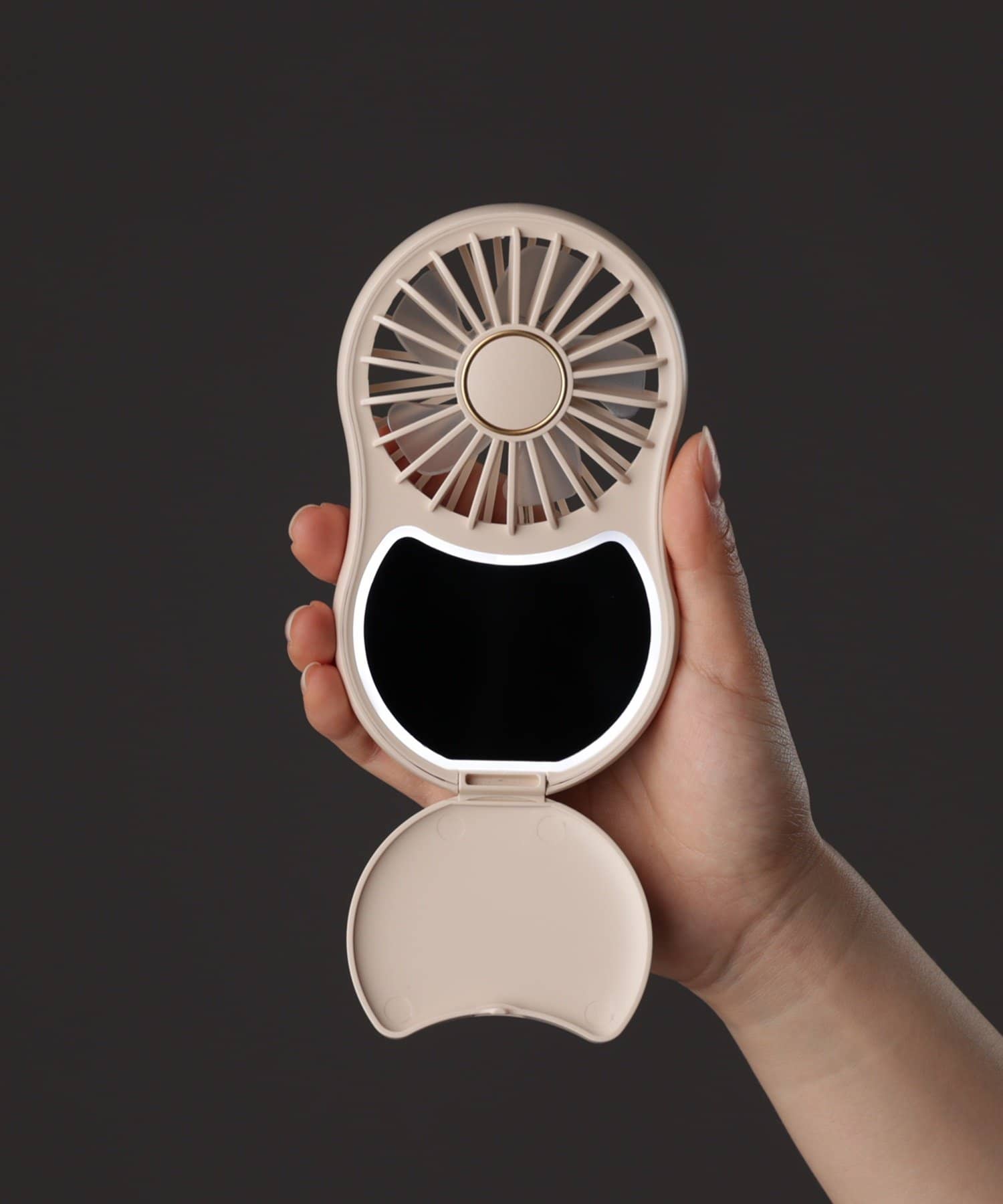 お化粧直しや身だしなみチェックに便利なミラー付きのハンディファン。