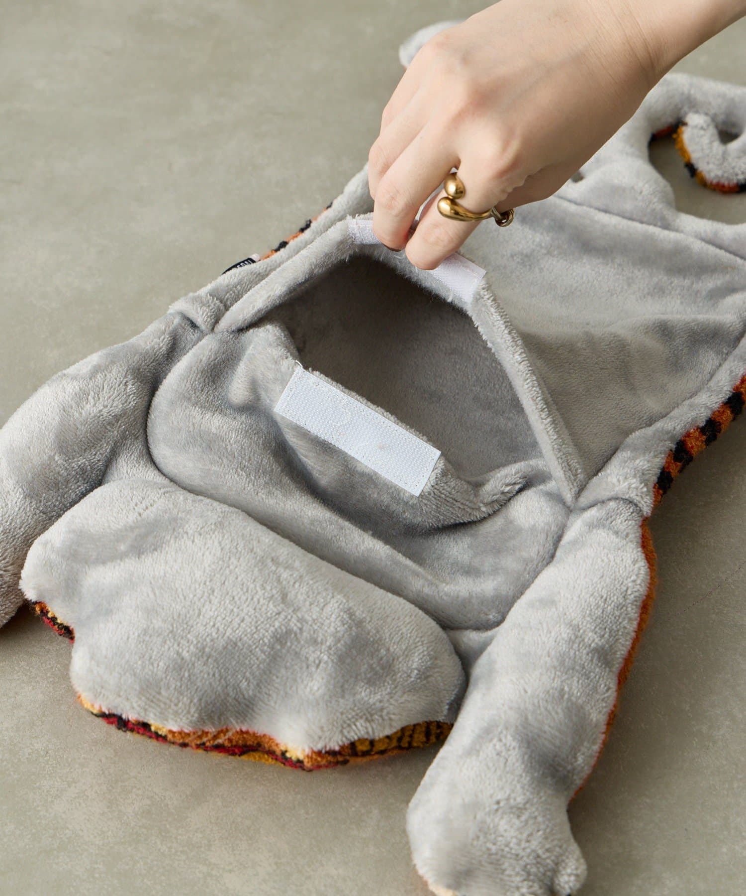 タフティング刺繍と呼ばれる技法で作った生地を使い、立体的な湯たんぽカバーに仕上げました。