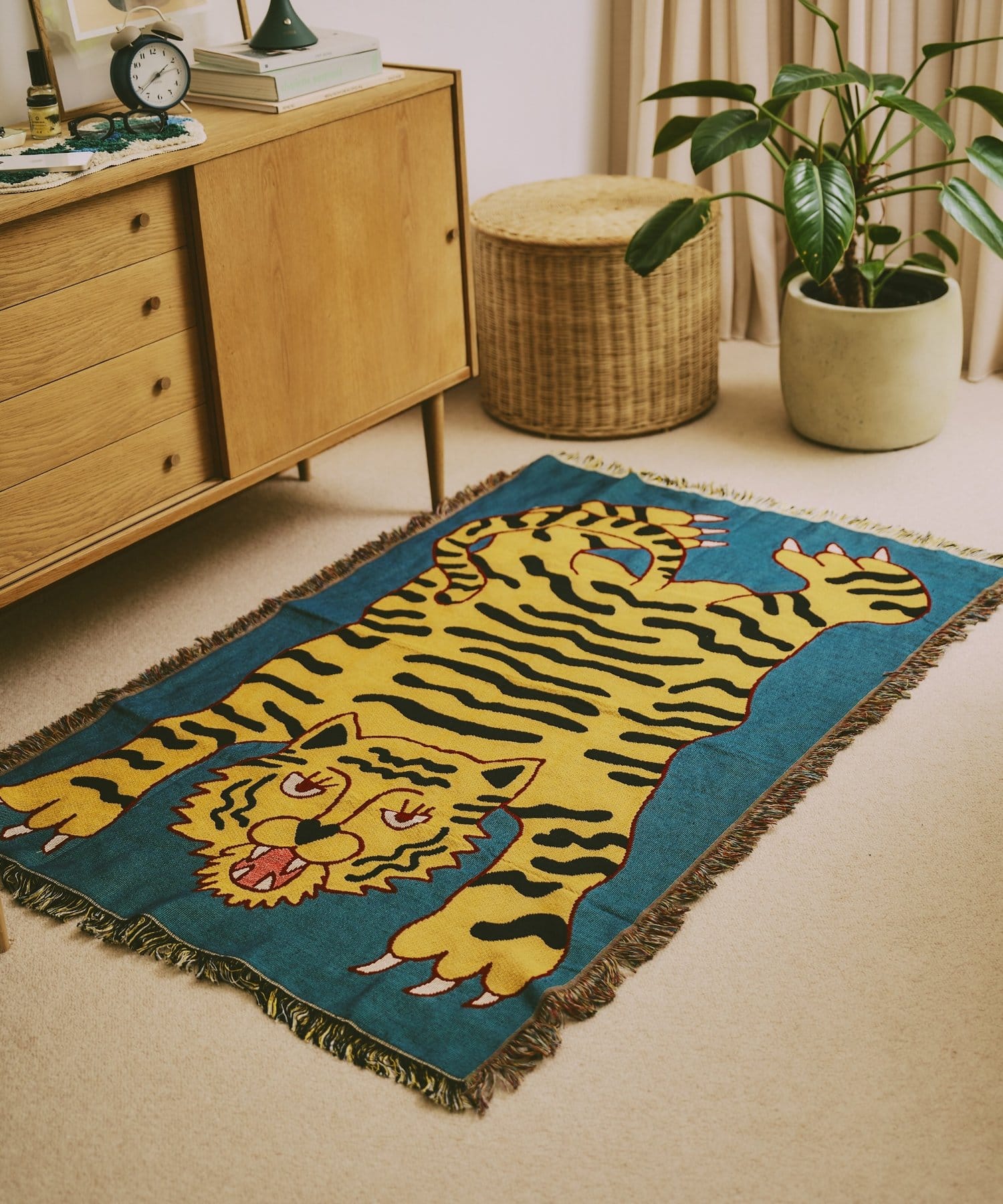 ソファにかけて使うとインパクト抜群!他にもベッドにかけたり、ラグにしたりという使い方も◎