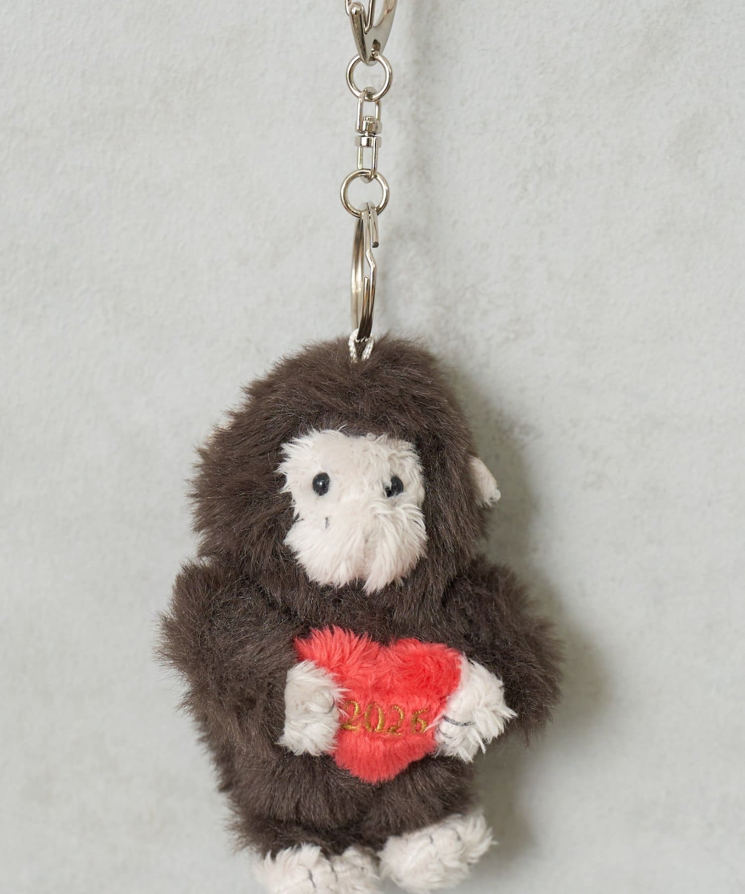 「2026」の刺繍が入ったハートを持つ、キュートなゴリラのチャーム。