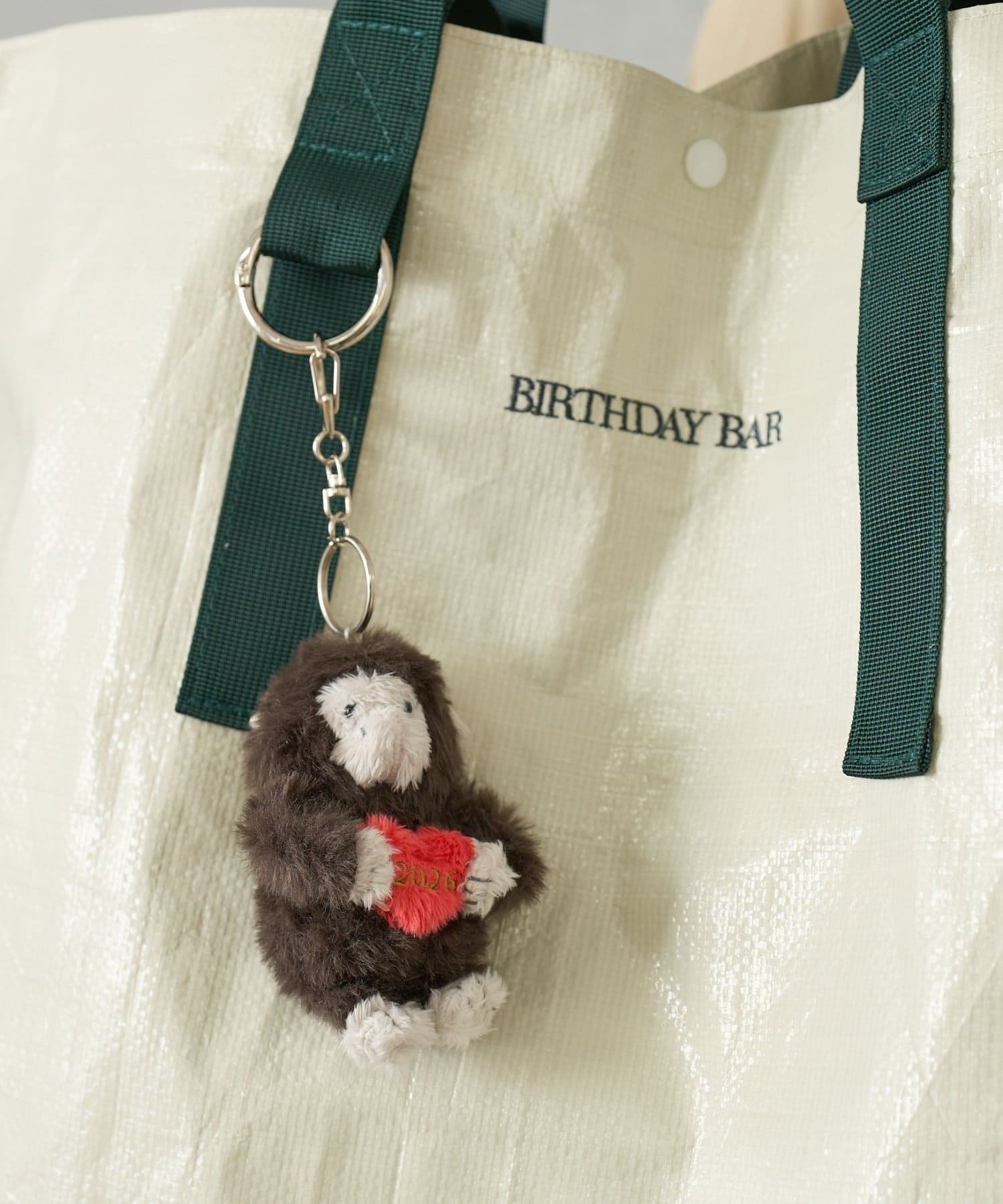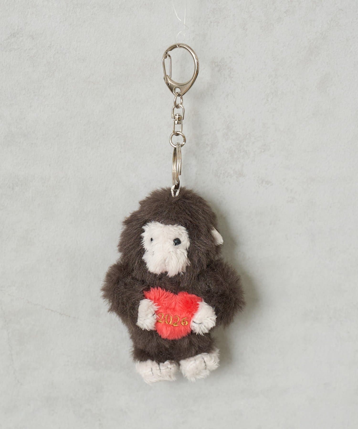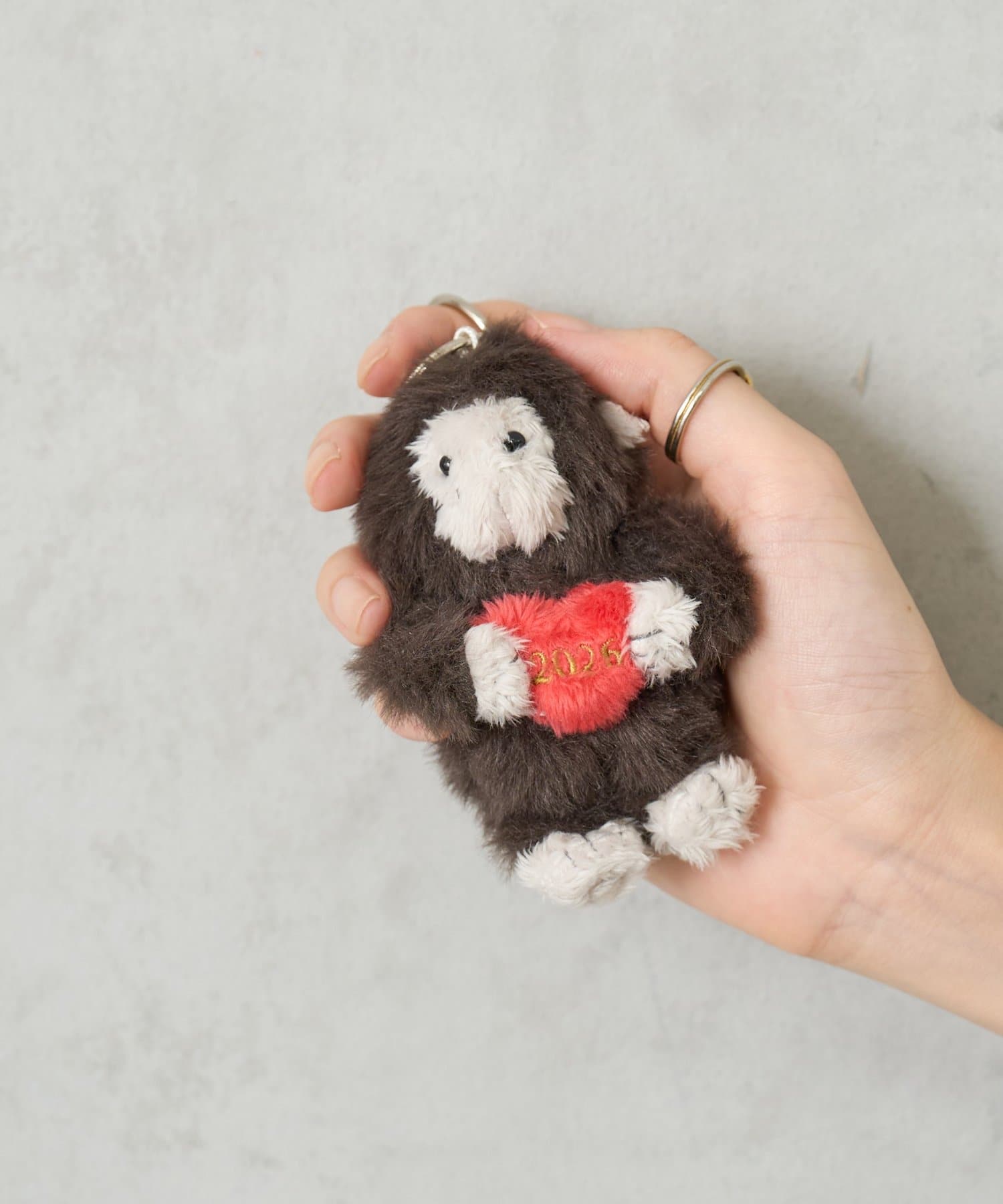 「2026」の刺繍が入ったハートを持つ、キュートなゴリラのチャーム。