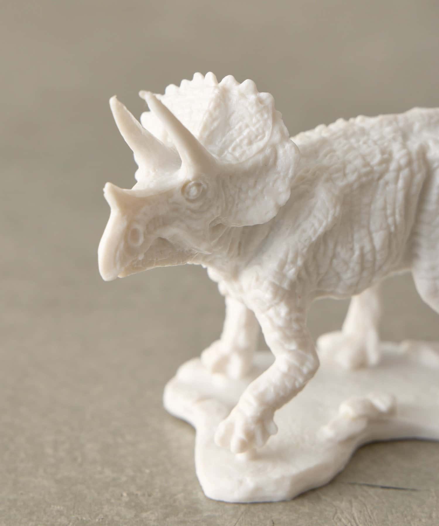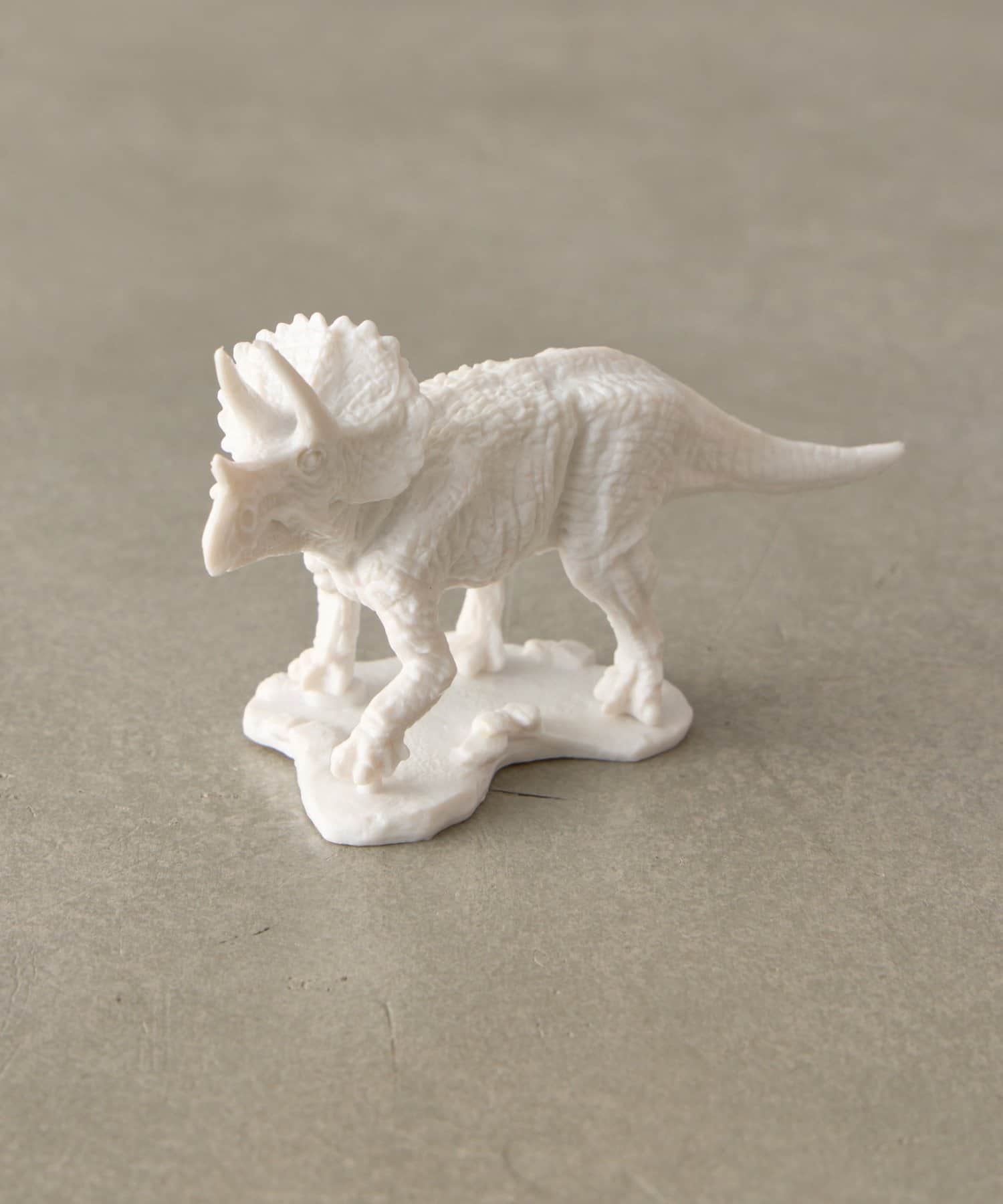 キャンバスのようなホワイトカラーのフィギュアに、思いのままに着色してお気に入りのカラーの恐竜を作ることができるキット。