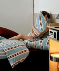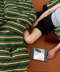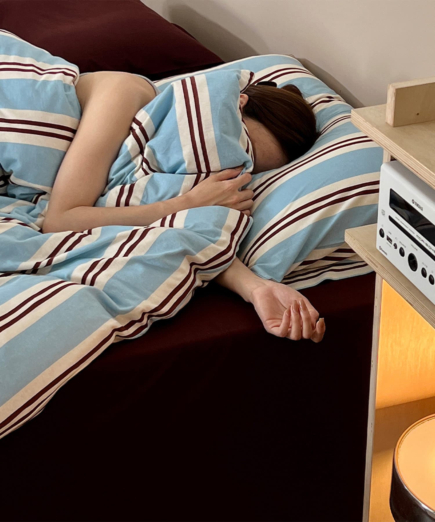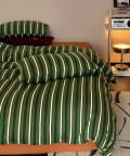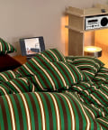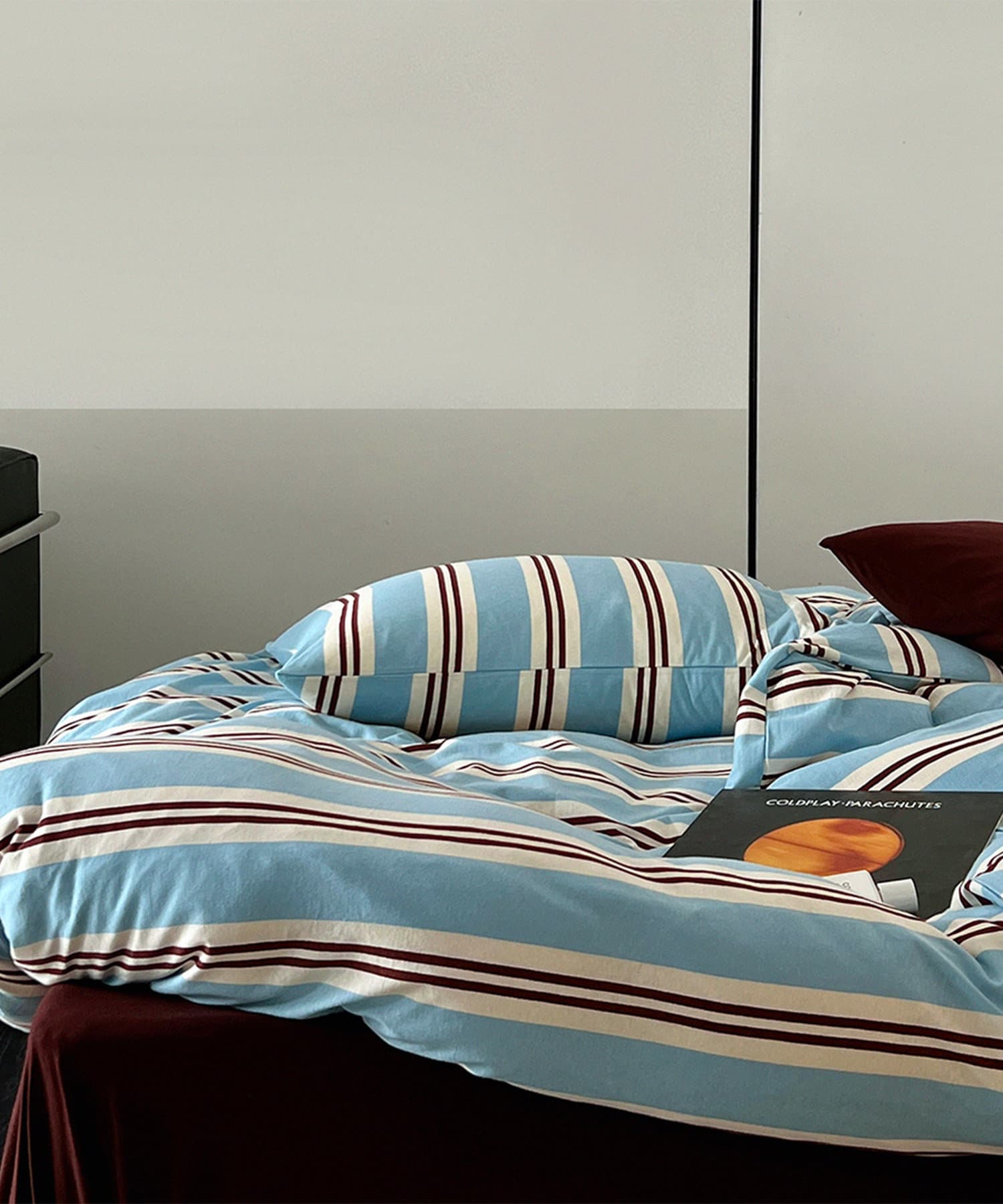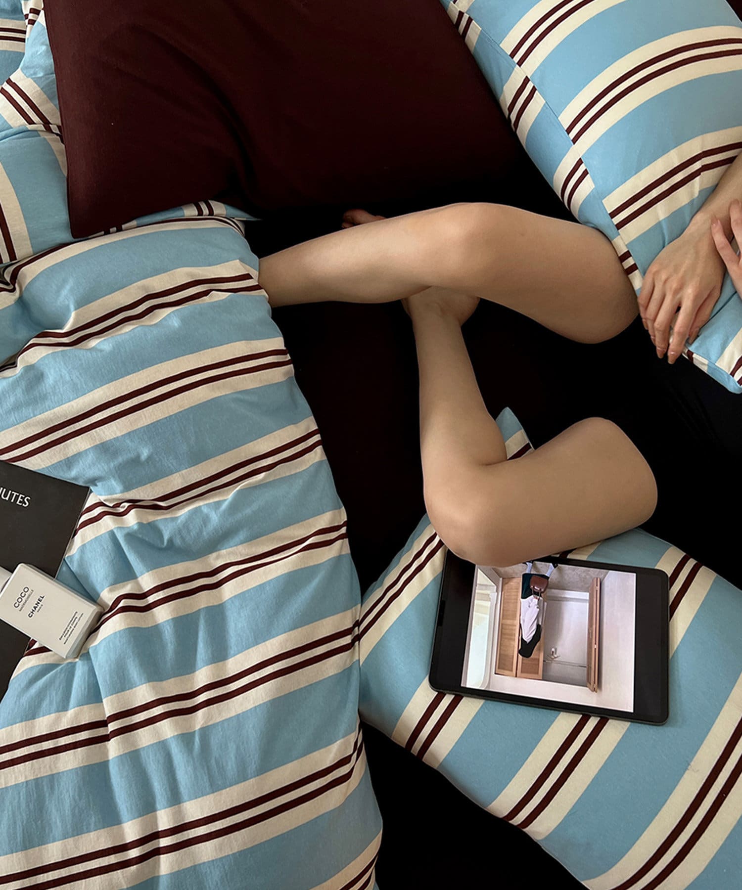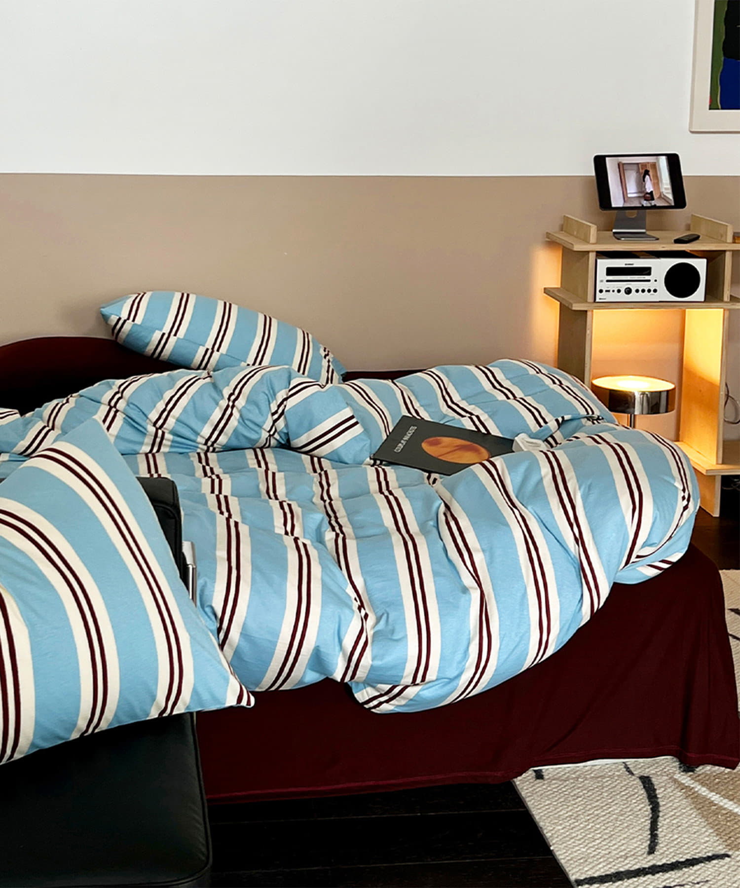 ビビットなカラーにストライプを加えた韓国インテリアブランドの寝具セット。