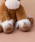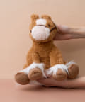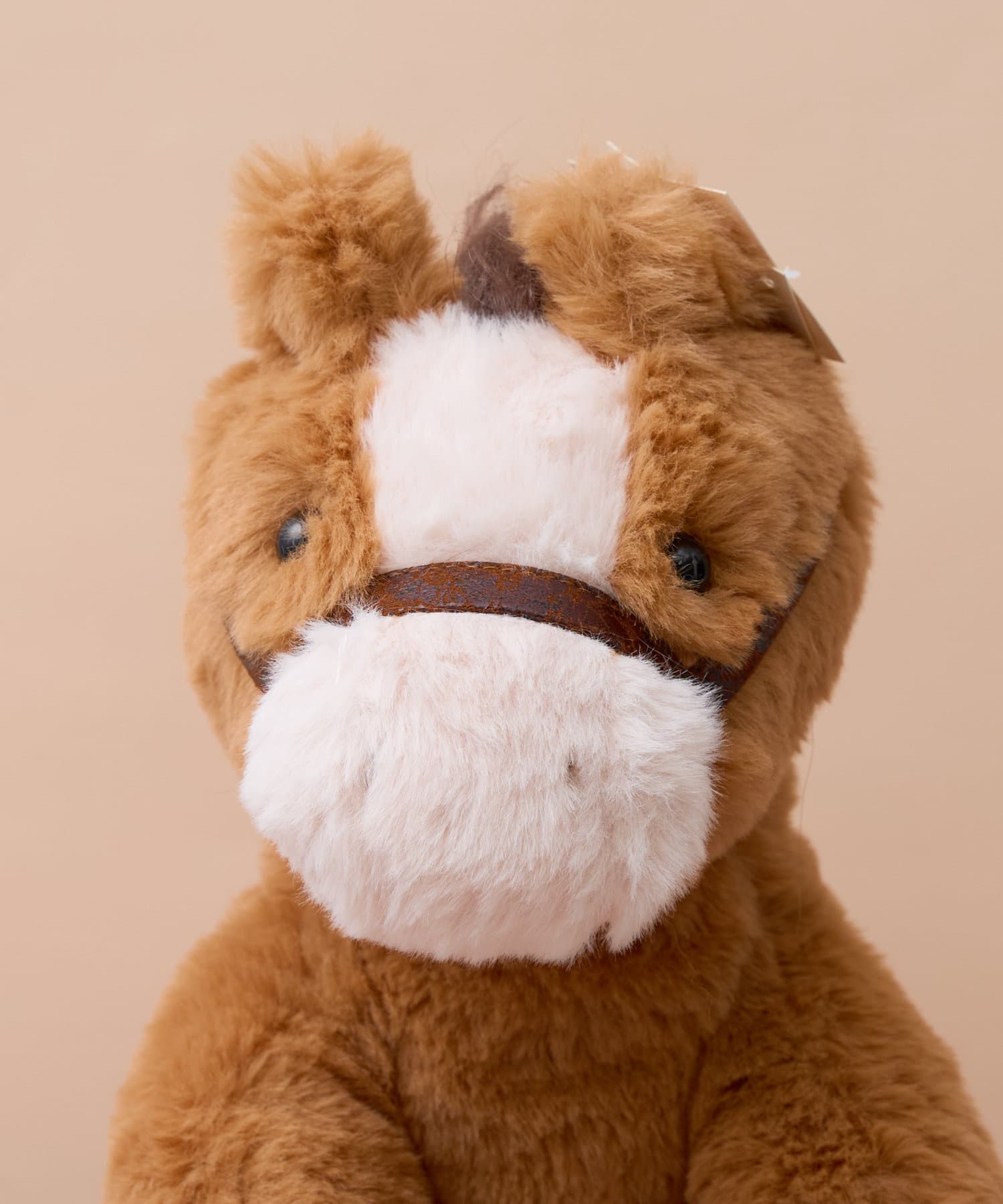 美しく輝くブラウンとホワイトの2色のコントラストがチャームポイントの馬のぬいぐるみ。
