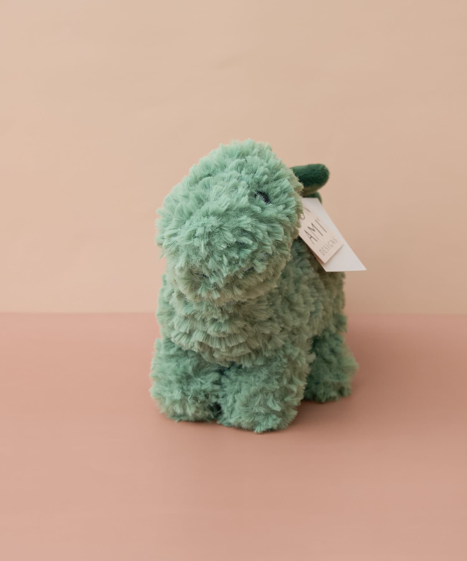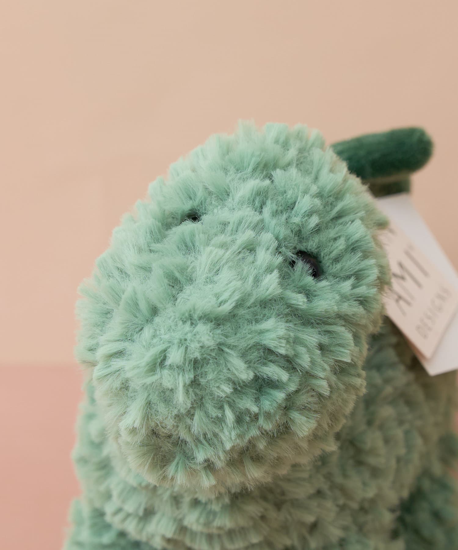 明るく鮮やかなグリーンカラーのカドルは、食べる・遊ぶ・叫ぶ・寝ることが仕事の赤ちゃん恐竜。