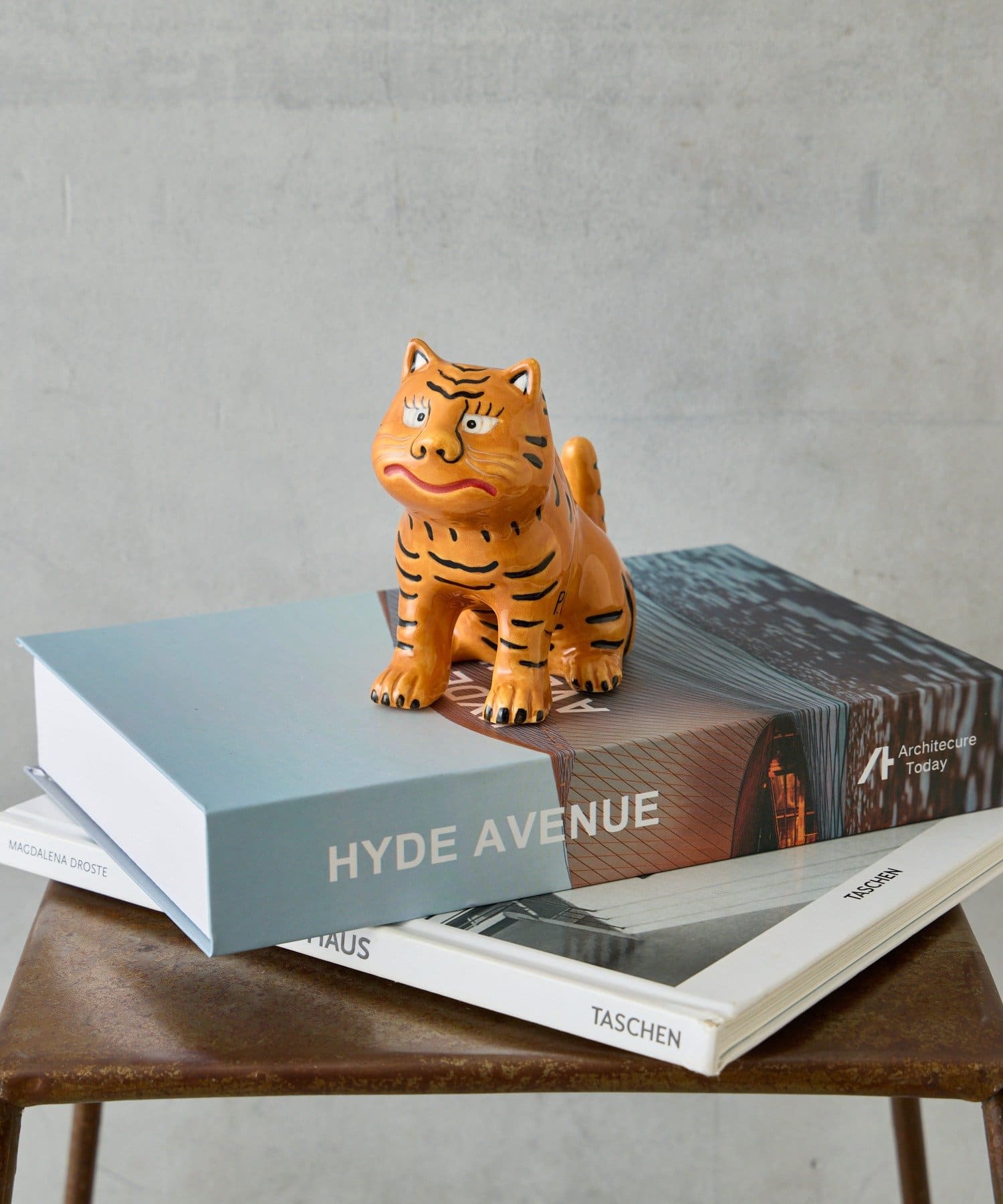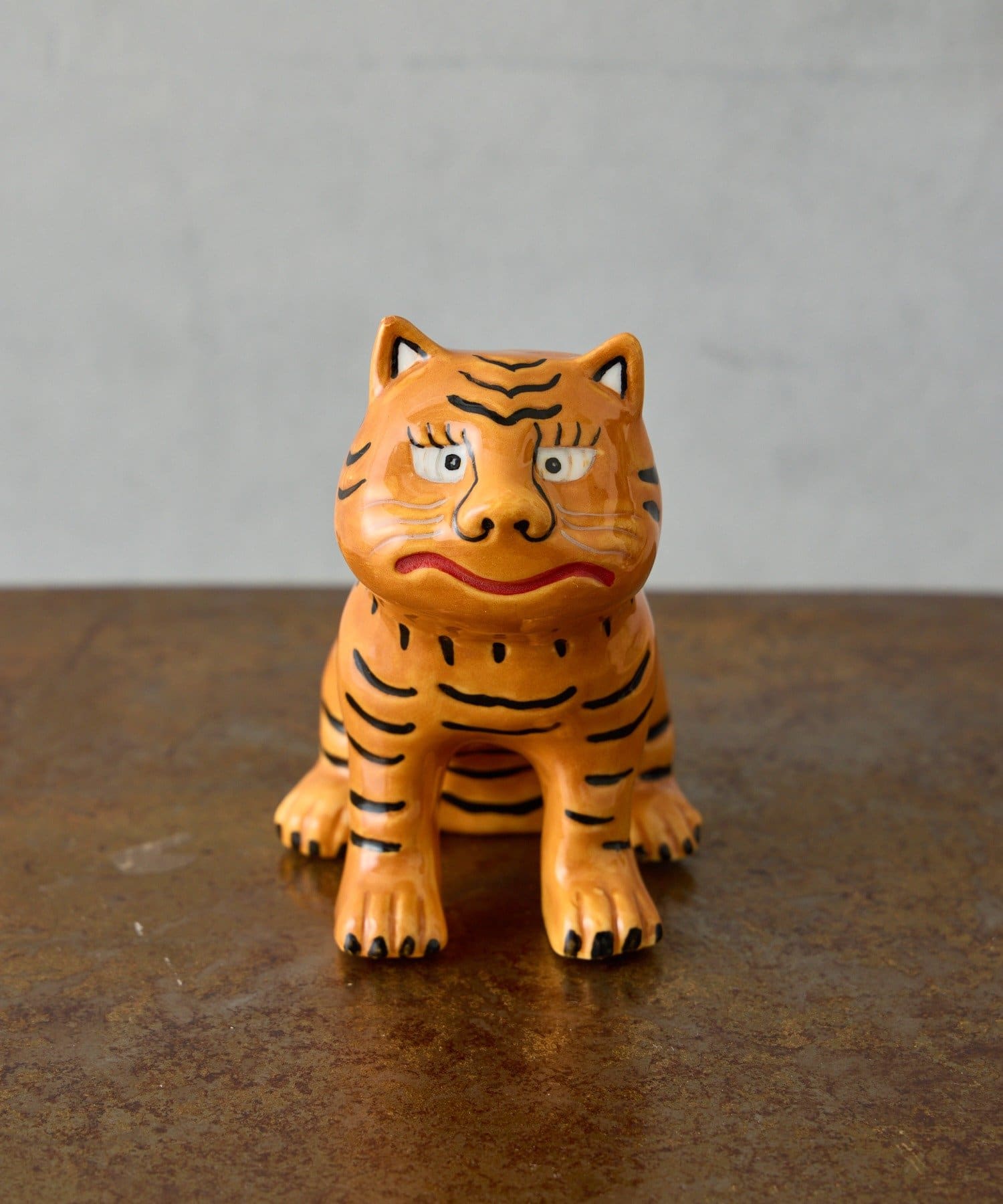 力強さとユーモアを併せもつ佇まいが、空間に個性を添える虎のオブジェ。